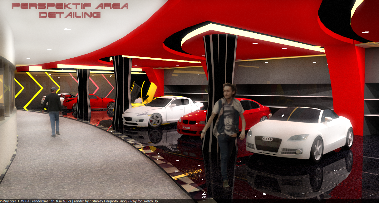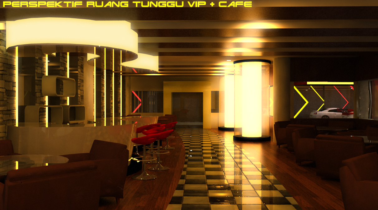area variasi, area detailing, ruang lobby, ruang display, cafe, dan ruang kantor
