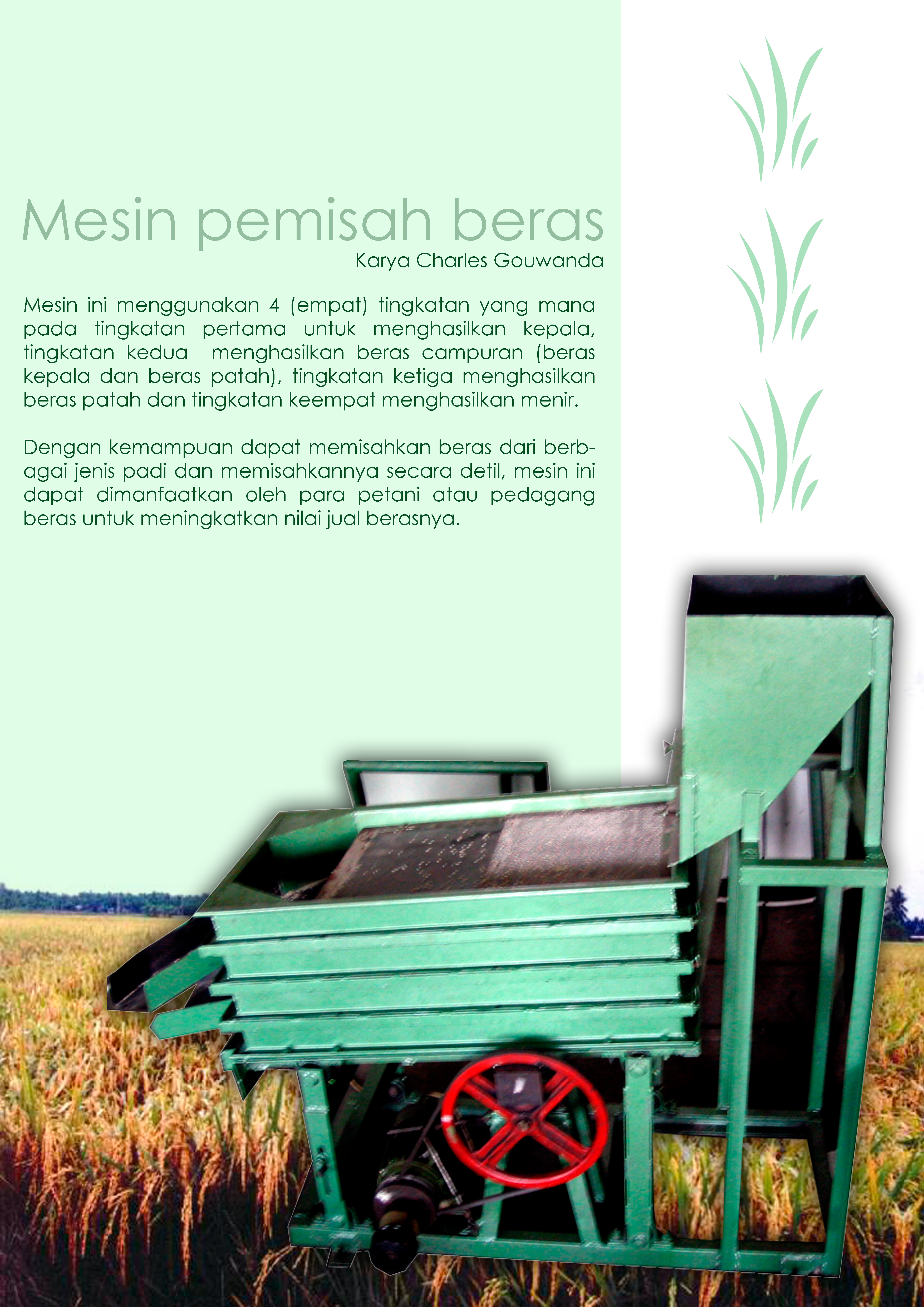 Poster ini dibuat melengkapi dan menginformasikan ' Alat Pemisah Beras' yang dibuat oleh mahasiswa jurusan teknik mesin UK Petra. Poster ini dipamerkan dengan Alat Pemisah Beras pada saat Pameran Desa Informasi yang diselenggarakan oleh Perpustakaan UK Petra pada tanggal 24 Januari 2005 bertempat di Gedung W Lantai 10 UK Petra.