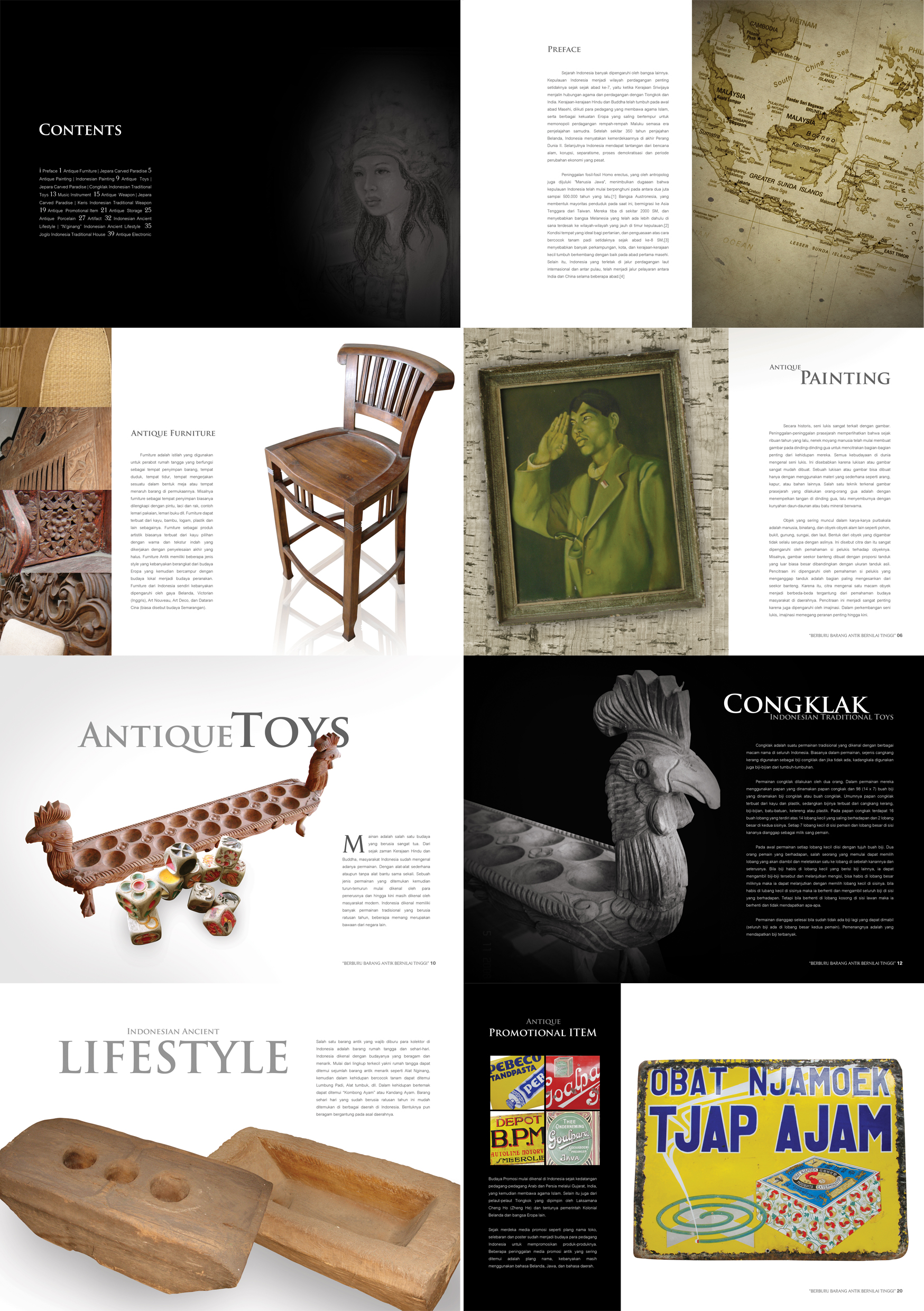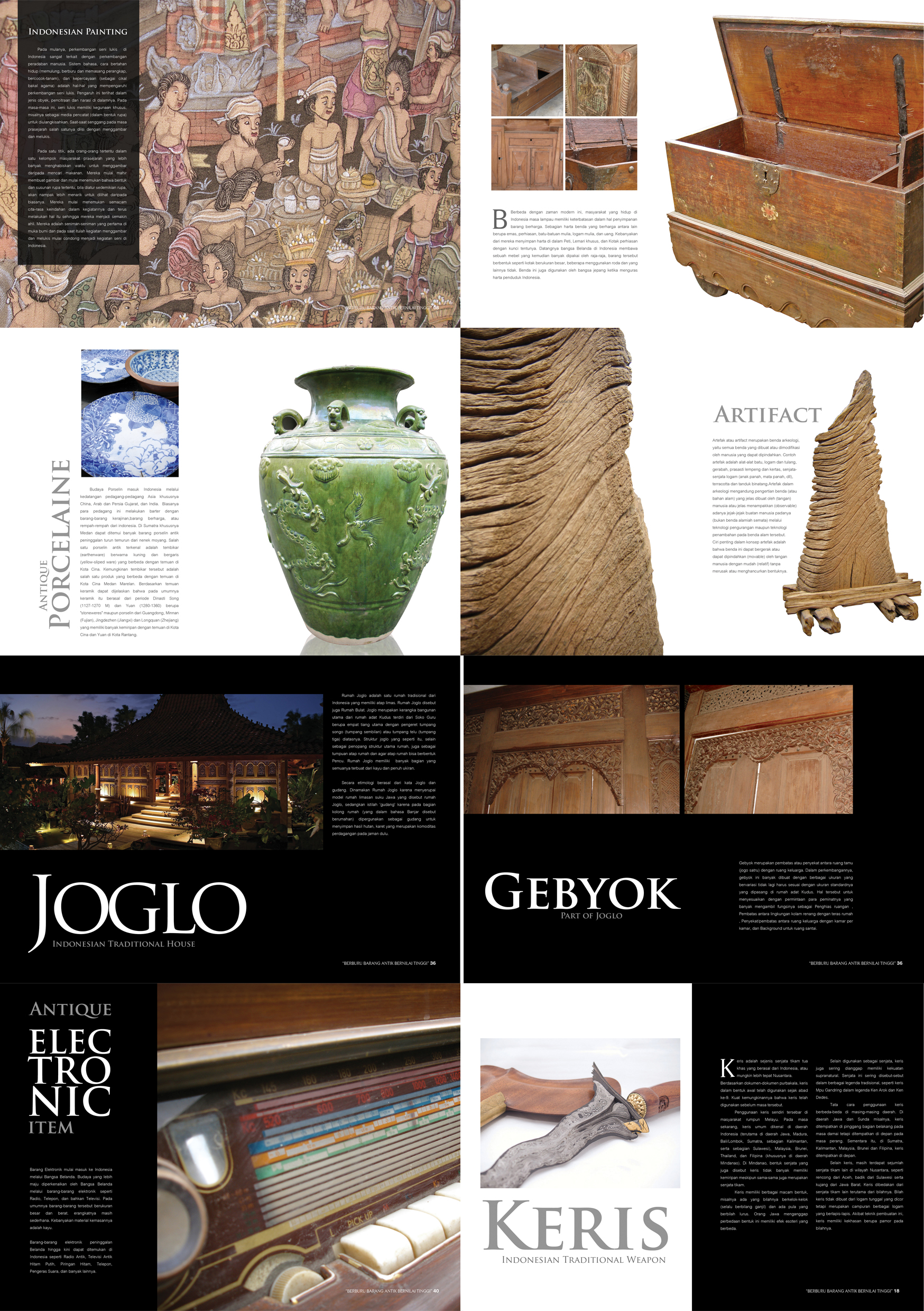 Artifak, Instrumen Musik, Ukir-ukiran, Patung, Alat Elektronik, Topeng, Senjata, dll.
