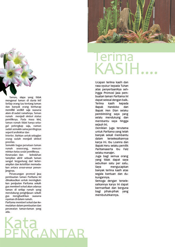 Perancangan desain komunikasi visual promosi jasa pembuatan Taman Paritama Semarang