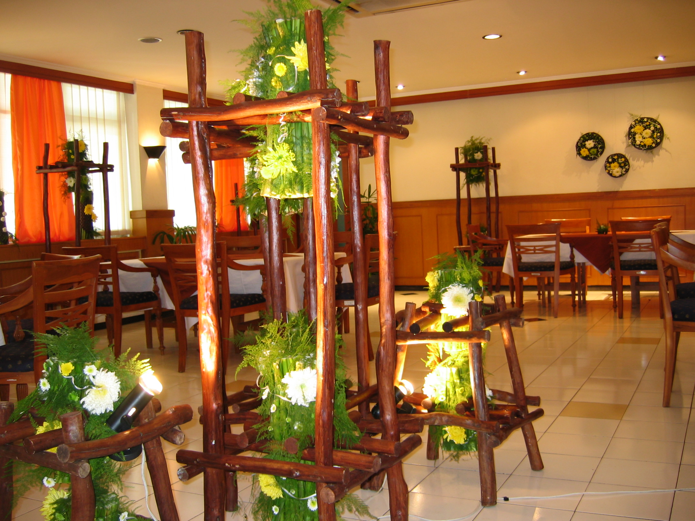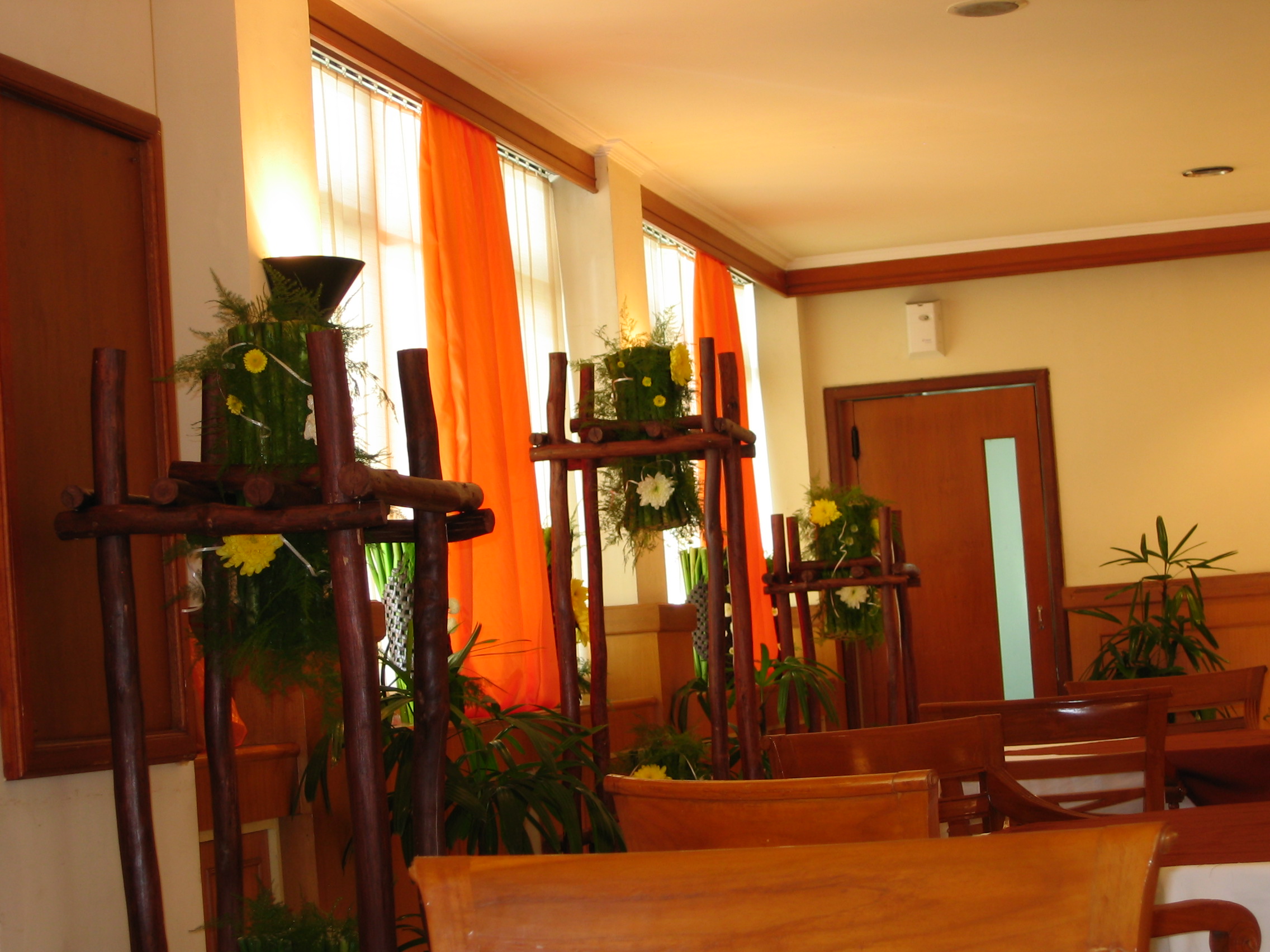 Dekorasi cafe dengan tema "Bunga Maskulin" ini mempunyai makna yang sangat indah. Bunga identik dengan feminin, tetapi bunga bisa dirangkai maskulin dengan cara hanya menempatkan sedikit bunga pada rangkaian bunga artinya rangkaian lebih banyak didominasi daun atau tangkai. Dekorasi cave ini adalah bagian dari mata kuliah Operasional Manajemen Hotel. Jadi mahasiswa dibekali cara mendekorasi restoran atau cave sebelum mengikuti mata kuliah Operasi Hotel dan Cave.