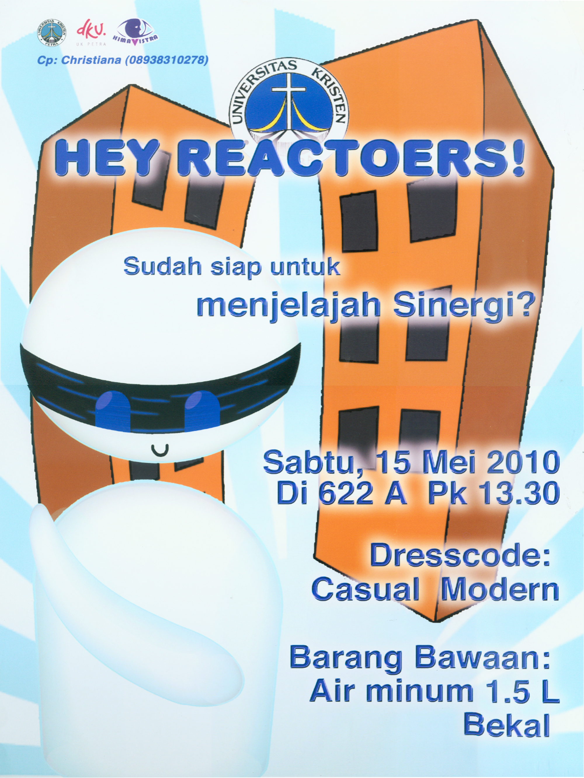 "Hey Reactoers!" merupakan acara yang diselenggarakan oleh Himpunan Mahasiswa Desain Komunikasi Visual pada hari Sabtu, 15 Mei 2010.