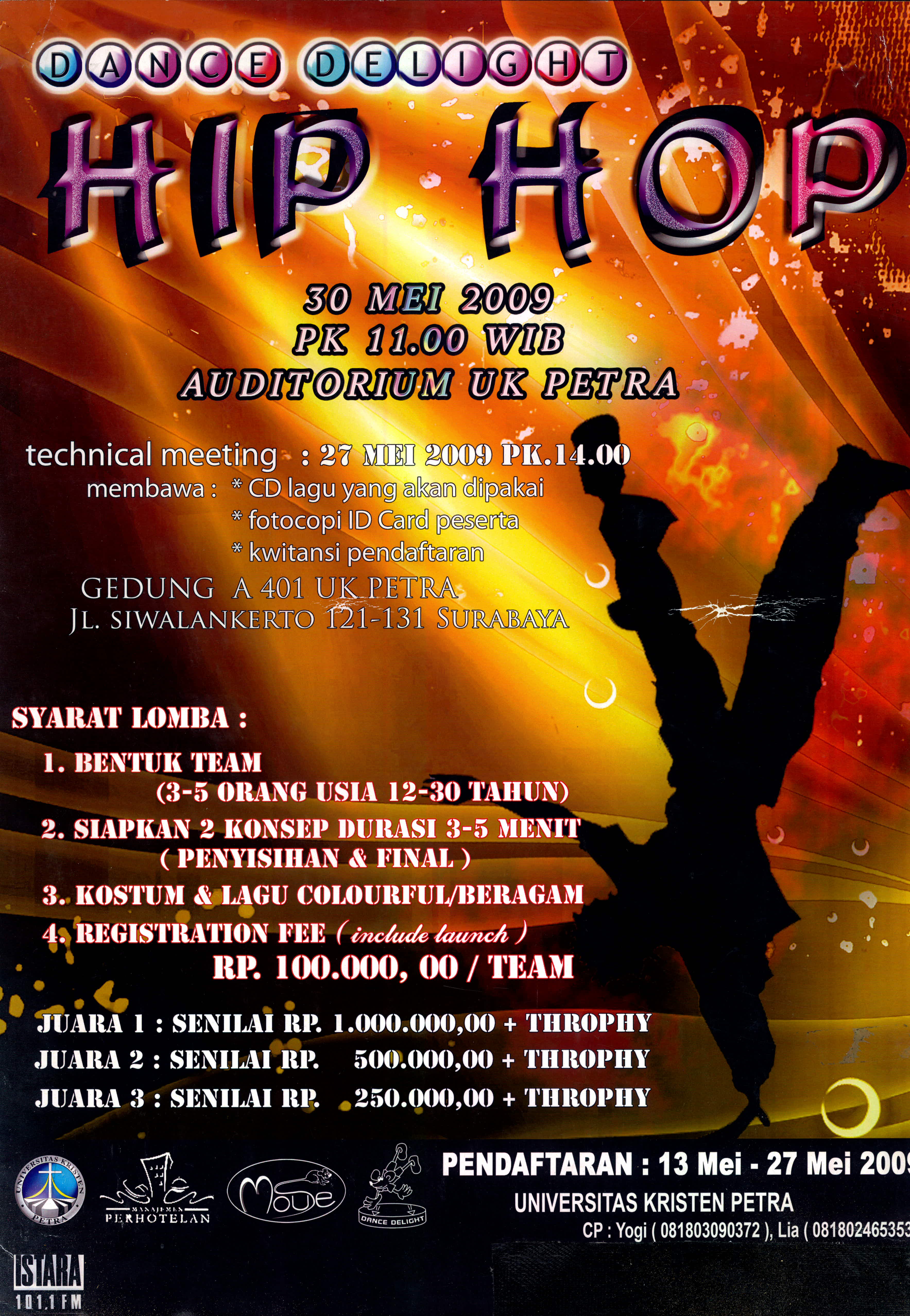 Dance Delight Hip Hop diselenggarakan tanggal 30 Mei 2009 bertempat di Auditorium UK Petra. Pendaftaran dibuka 13 Mei-27 Mei 2009. Acara ini diselenggarakan oleh jurusan Manajeman Perhotelan UK Petra.