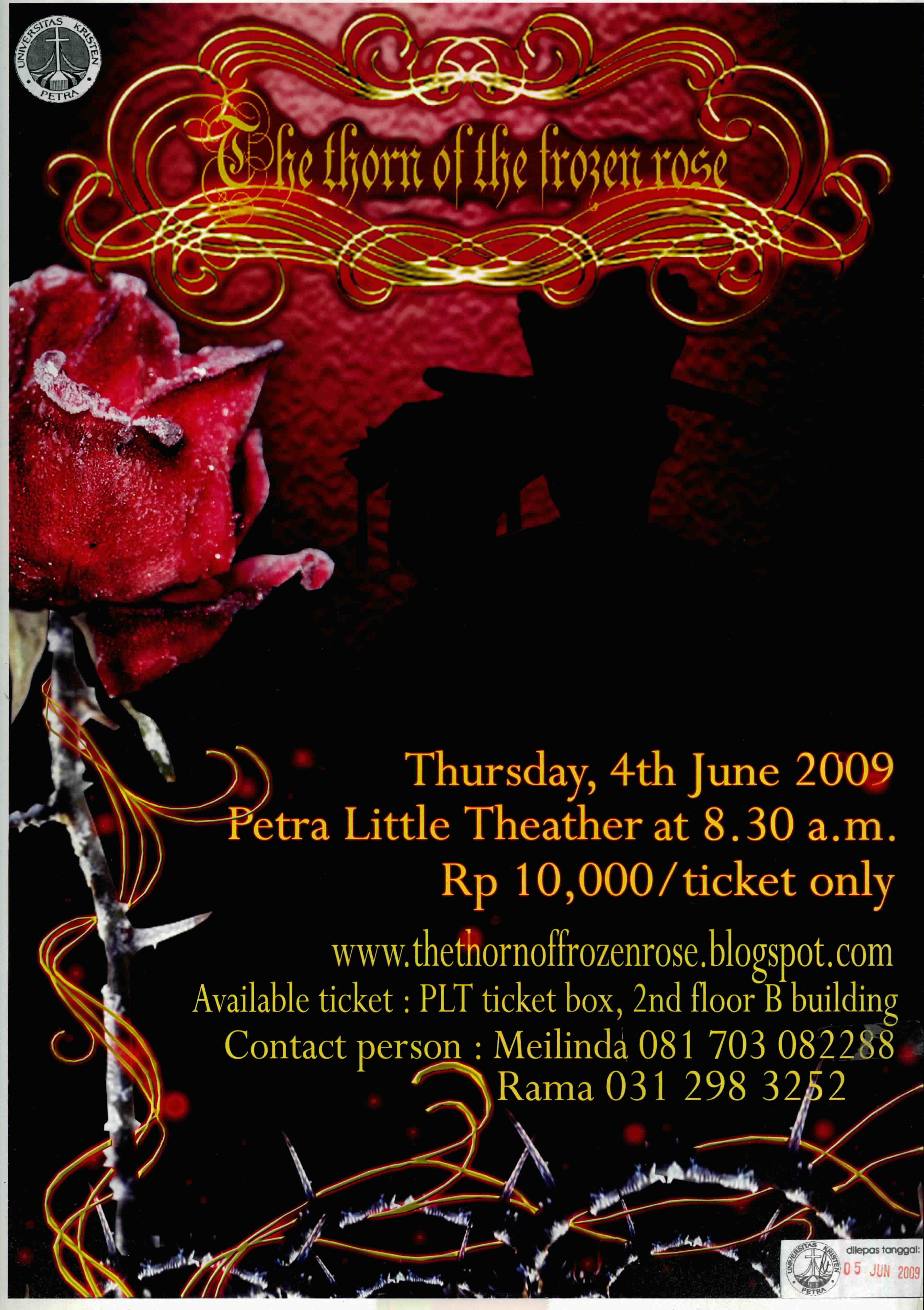 Petra Little Theatre mengadakan theatre dengan judul "The Thorn of The Frozen Rose". Pentas ini diselenggarakan pada 4 Juni 2009, pukul 8.30. Bertempat di gedung B. lantai 2.