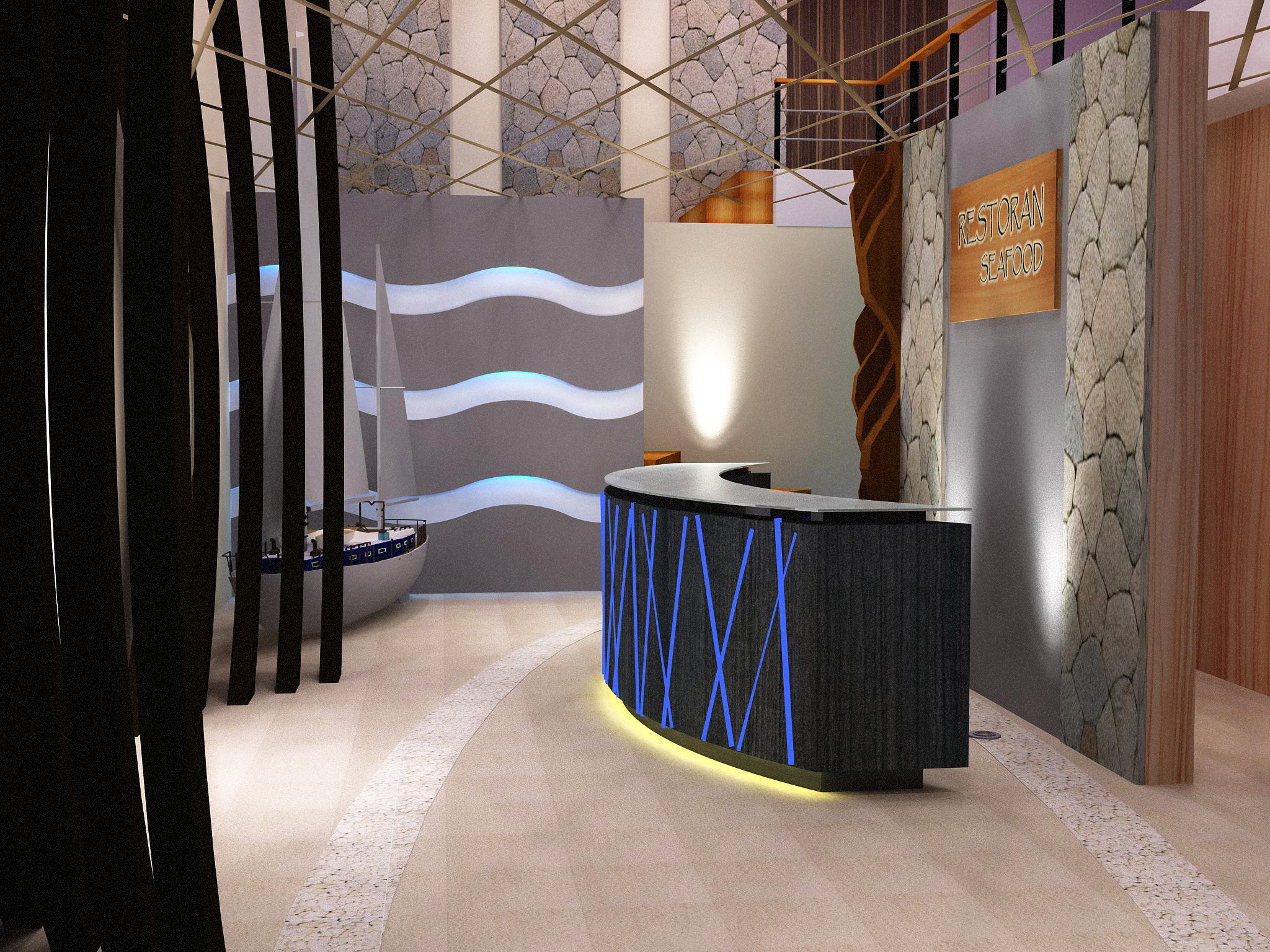 Melihat banyaknya bermunculan jenis restoran yang beragam di kota besar, dan di Kediri hanya ada restoran Chinese food, maka dibuatlah perancangan restoran seafood di Kediri dengan menyediakan restoran yang dapat memilih ikan sendiri dan gabungan bar wine yang didukung dengan adanya live music serta dirancang dengan konsep yang sesuai dengan suasana dalam kapal. Konsep perancangan yang digunakan adalah family yaitu (hangat, akrab dan santai) dan bentuk yang asimetris, sesuai dengan pergerakan kapal. Didukung dengan penggunaan bahan yang alam yang ramah lingkungan serta penggunaan teknologi baru.