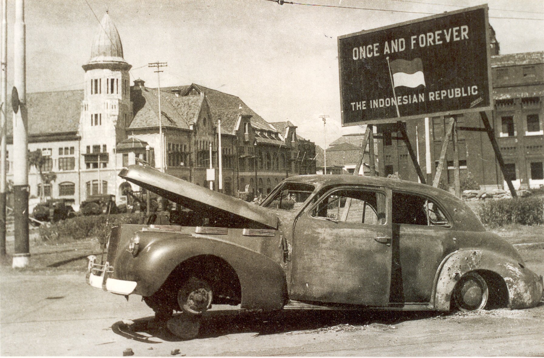 Documentation of Wrecked Car of British Infantry Brigade, Brigadier Mallaby, Surabaya