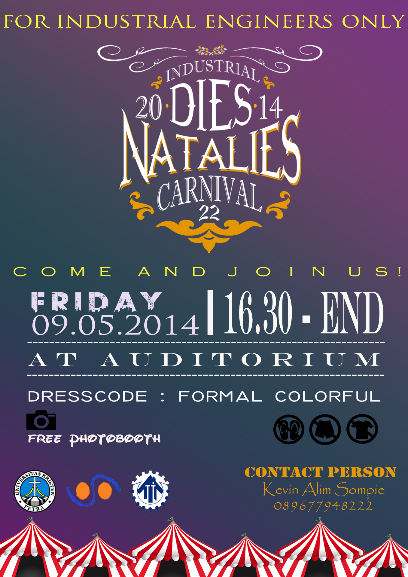Industrial Dies Natalies Carnival 22 adalah kegiatan yang memperingati hari jadi Program Studi Teknik Industri UK Petra. Kegiatan ini dilaksanakan pada hari Jumat, 9 Mei 2014, pukul 16.30 WIB yang bertempat di Auditorium UK Petra. Mahasiswa yang hadir diharuskan menggunakan pakaian formal warna-warni