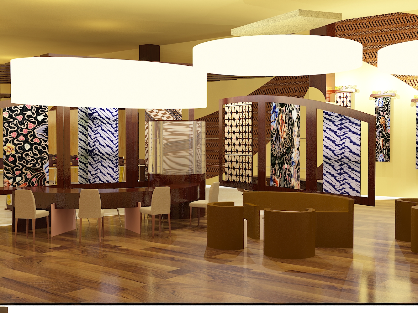 Batik merupakan hasil kebudayaan Indonesia yang terkenal baik oleh masyarakat dalam negeri maupun luar negeri. Sayangnya di masa sekarang seni batik ini mulai ditinggalkan dan diremehkan oleh warga Indonesia sendiri terutama kaum muda karena batik dipandang kuno dan ketinggalan jaman. Salah satu cara untuk menarik kembali minat masyarakat akan budaya batik adalah menciptakan sebuah tempat, dalam hal ini adalah sebuah took atau galeri batik dengan desain interior yang modern namun masih menampilkan unsure budaya Indonesia agar pengunjung tertarik masuk untuk mengapresiasi batik bahkan membeli produk batik tersebut.