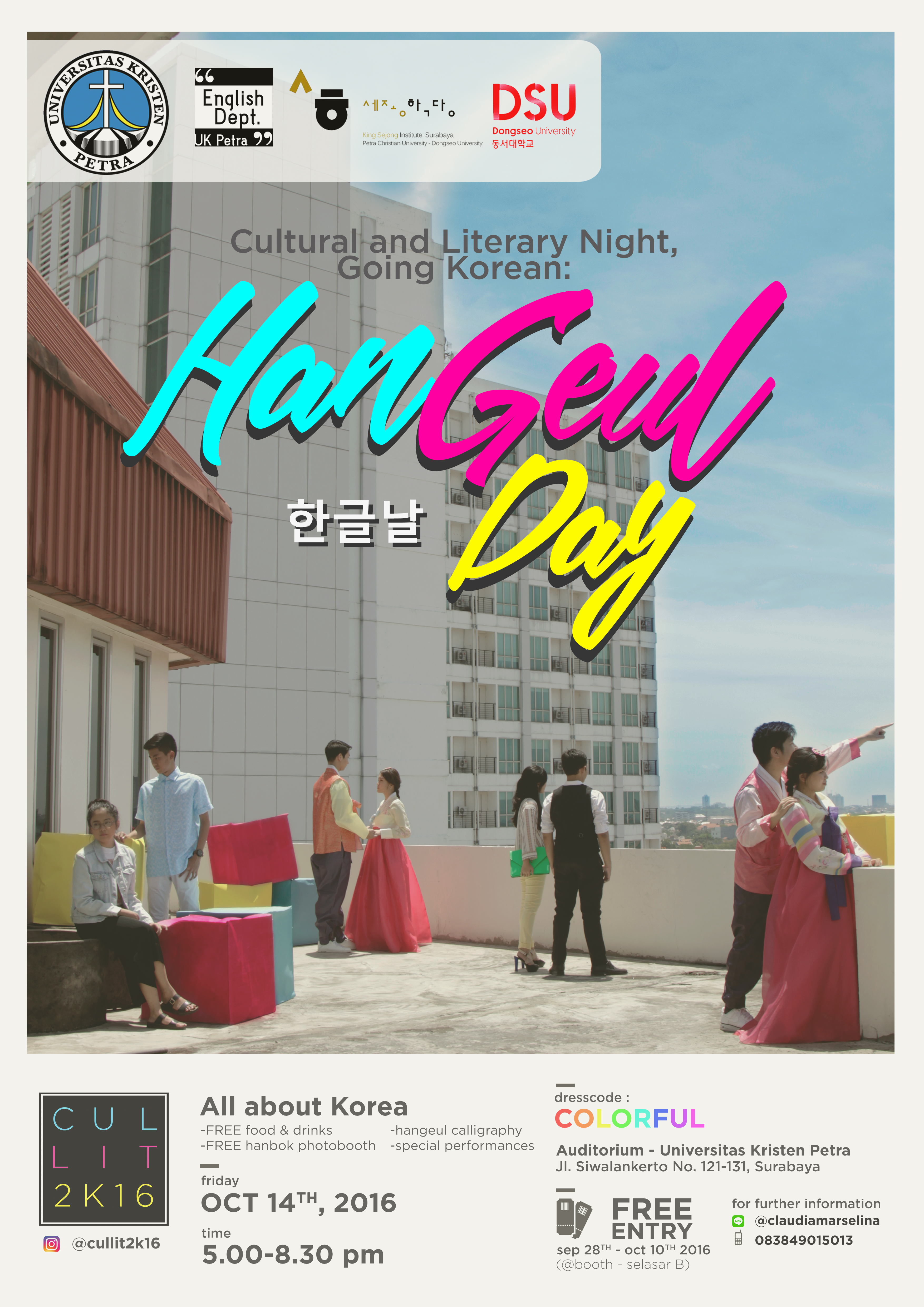 King Sejong bekerjasama dengan fakultas sastra Universitas Kristen Petra mengadakan malam budaya Korea dengan mengambil tema "Han Geul Day". Acara dilaksanakan pada 14 Oktober 2016 di Auditorium UK Petra Surabaya.