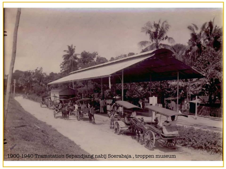 1900-1940 Tramstation Sepandjang nabij Soerabaja , troppen museum