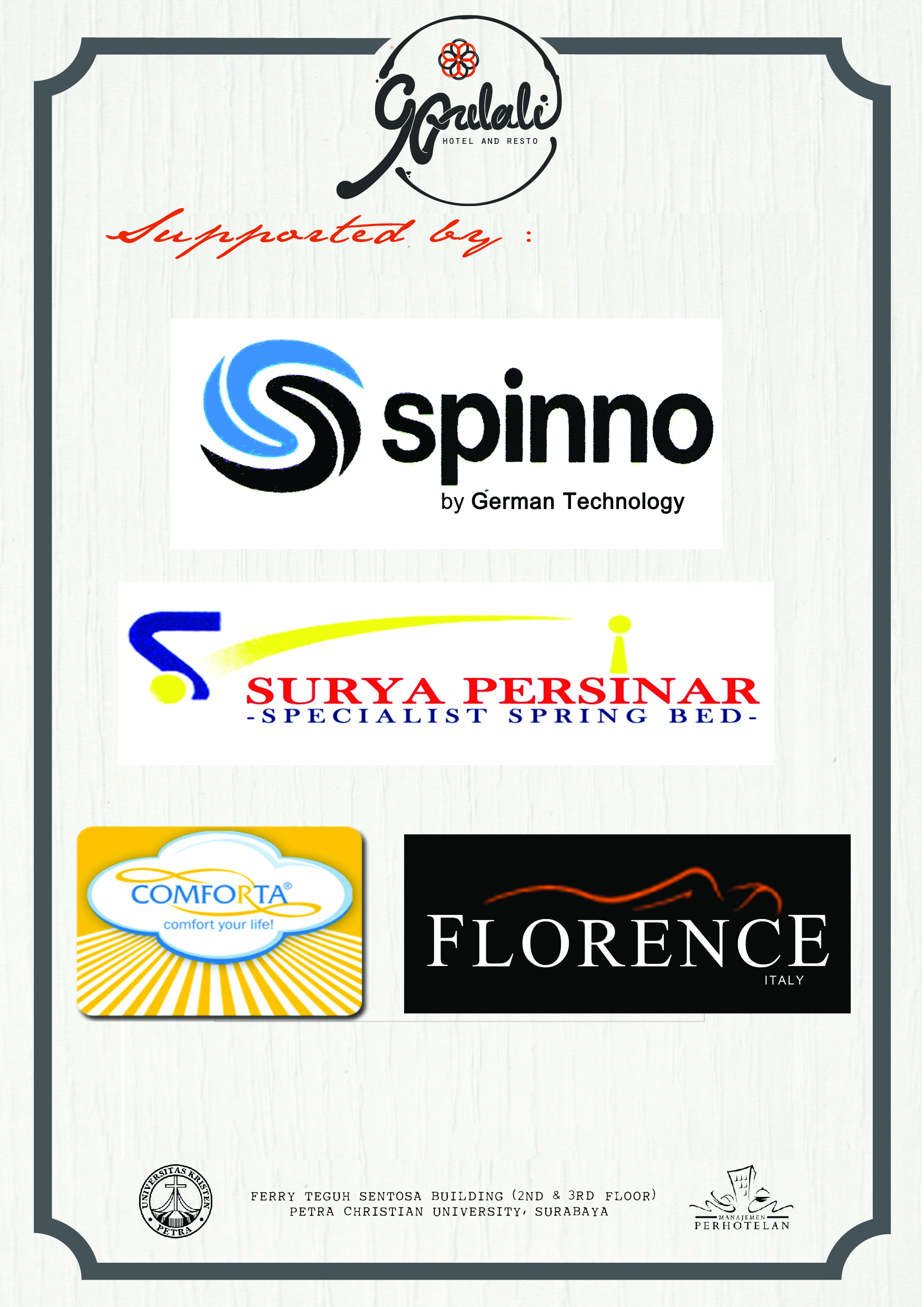 Gulali hotel and resto disponsori oleh Spinno, Surya Persinar, Comforta, dan Florence.