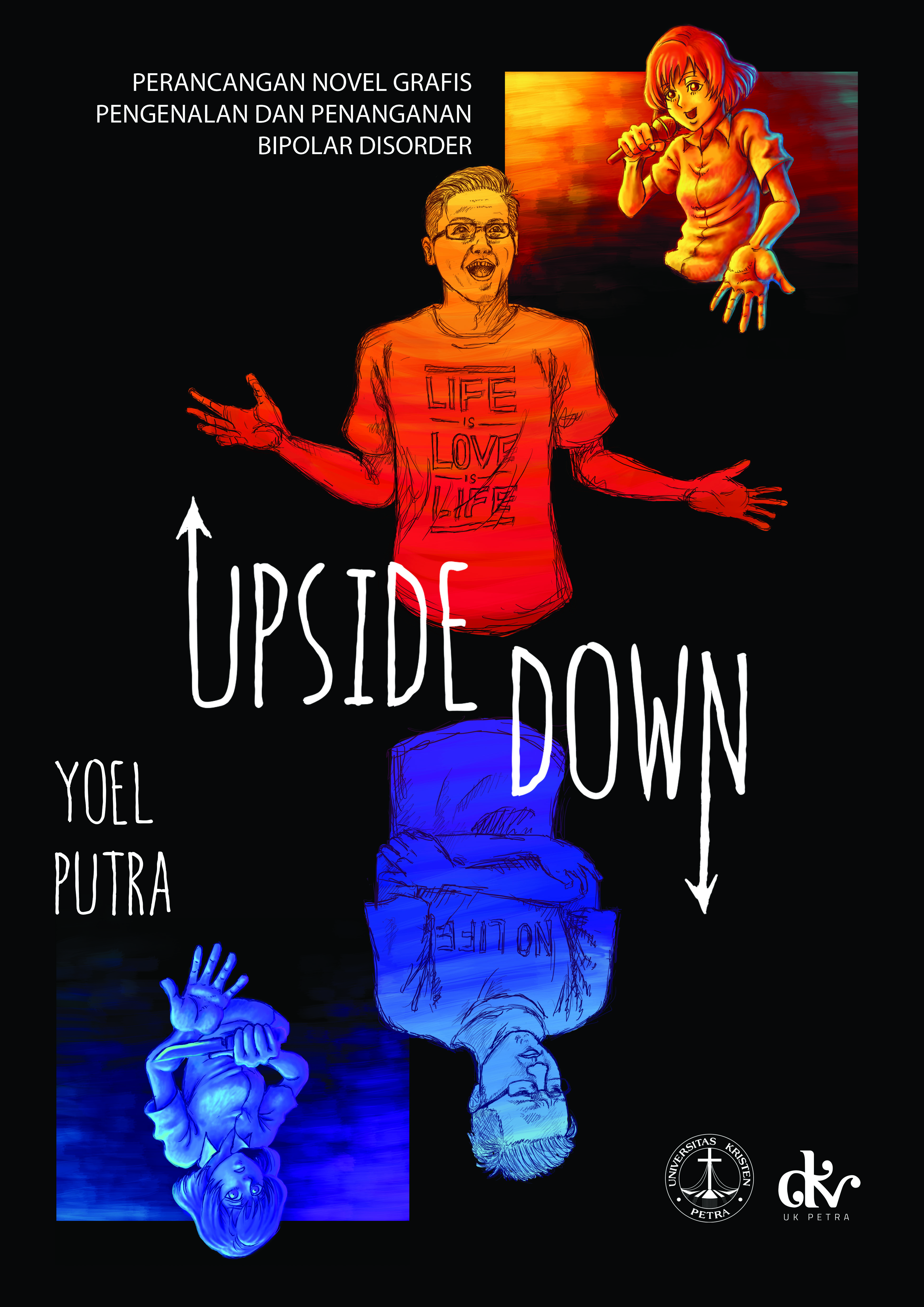 Gangguan bipolar adalah gangguan psikologis yang mengakibatkan naik turun mood secara drastis dan bisa berakibat fatal jika dibiarkan begitu saja. Namun gangguan ini masih kurang dikenal dan diwaspadai oleh masyarakat di Indonesia karena gejalanya yang tidak mencolok. Perancangan novel grafis ini dibuat untuk menginformasikan kepada masyarakat tentang gangguan bipolar serta cara menanganinya. Novel grafis ini dibuat berdasarkan kisah nyata seorang remaja penderita bipolar dari awal gejala hingga pemulihannya. Selain cerita, novel grafis ini juga dilengkapi dengan informasi detail mengenai gangguan bipolar sehingga hasil perancangan ini dapat digunakan sebagai buku panduan baik oleh penderita bipolar maupun orang yang mendampingi penderita. Novel grafis ini menggabungkan gaya komik yang masih menggunakan sistem panneling dengan gaya orisinil yang menggunakan arsiran pensil dan menghasilkan gaya yang unik dan khas.