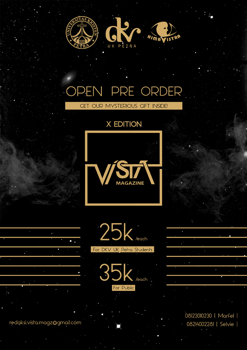 Pemesanan majalah DKV Vista, dengan harga 25 ribu untuk kalangan mahasiswa UKP. 35 ribu untuk kalangan umum.