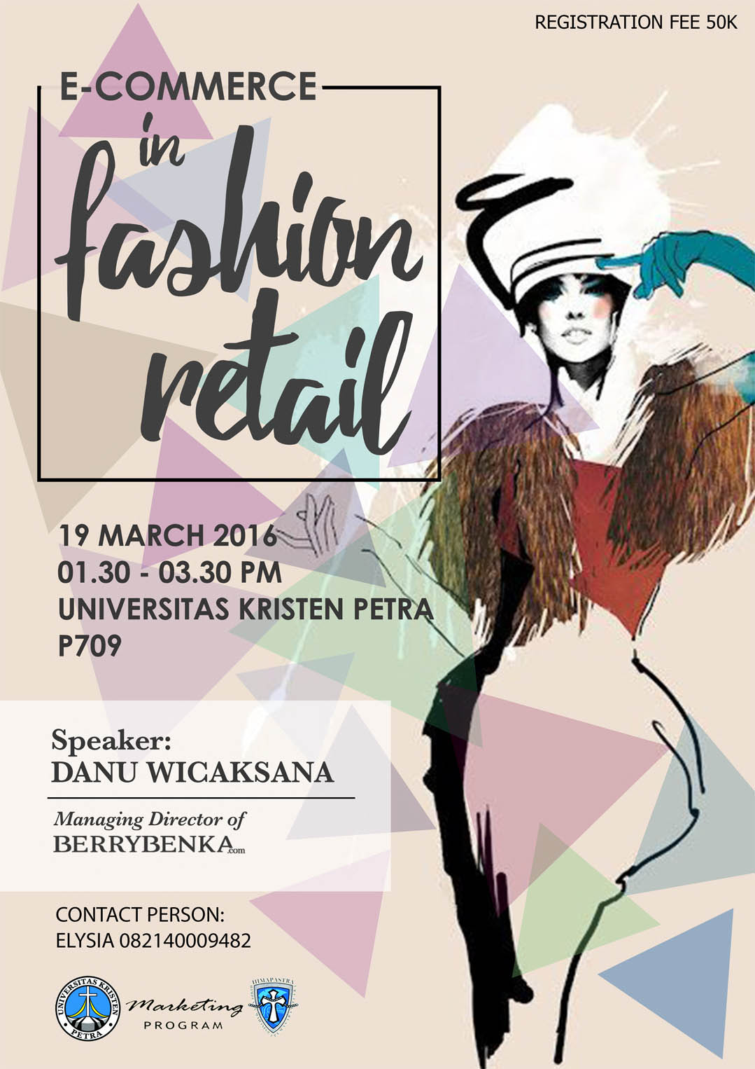 Manajemen Pemasaran Universitas Kristen Petra mengadakan acara dengan tema E-Commerce in fashion retail, yang dilaksanakan pada 19 Maret 2016 bertempat di Gedung P.709. Dengan pembicara Danu Wicaksana.