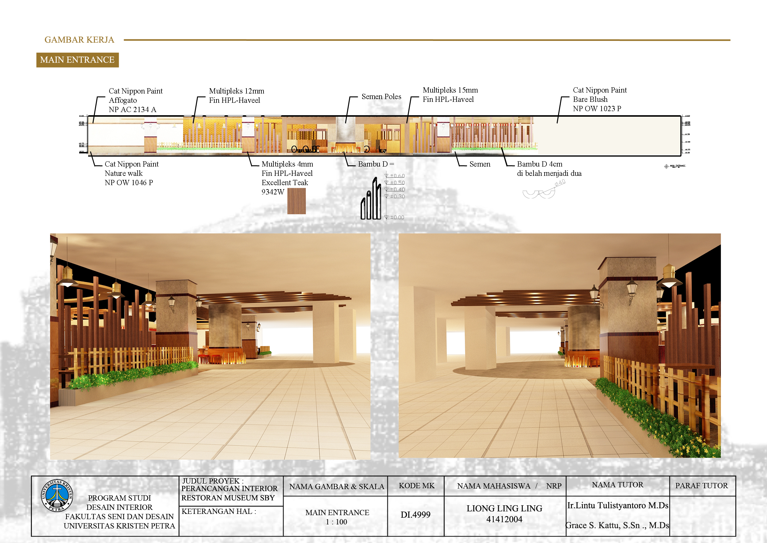 Gedung Siola adalah bangunan yang cukup bersejarah bagi masyarakat kota Surabaya. Gedung yang penuh dengan sejarah ini, diberlakukan untuk menjadi budidaya bagi kota masyarakat, sehingga adanya museum Surabaya yang diberlakukan pada tahun 2015, untuk meningkatkan citra kebudayaan kota Surabaya. Dengan begitu, untuk meningkatkan ketertarikan masyarakat yang tidak banyak mengetahui adanya museum Surabaya di gedung Siola, perlu adanya pendukung, sehingga adanya perancangan interior restoran museum Surabaya, karena dengan catatan bahwa adanya restoran dapat menarik minat pada masyarakat. Karena semakin berkembangnya jaman, tidak banyak orang akan selalu datang ataupun mengetahui adanya Museum bila tidak ada keperluan mendesak, sehingga dengan adanya perancangan tersebut, dapat membuat masyarakat tertarik untuk dapat tanpa adanya keperluan khusus di museum. Lokasi yang begitu strategis di tengah kota, membuat perancangan ini di desain untuk memenuhi kebutuhan para pembisnis yang ingin melakukan kegiatan rapat di luar kantor, karena melihat kebutuhan jaman sekarang, banyak orang bekerja atau bertemu di tempat makan. Konsep yang diterapkan adalah heroik dengan mendukungnya sebuah museum dengan menerapkan gaya tradisional yang memakai material alam sebagi pendukung. Sehingga dengan adanya keterkaitan antar satu dengan lain, museum Surabaya akan dapat di ketahui oleh banyak orang dengan mudah.