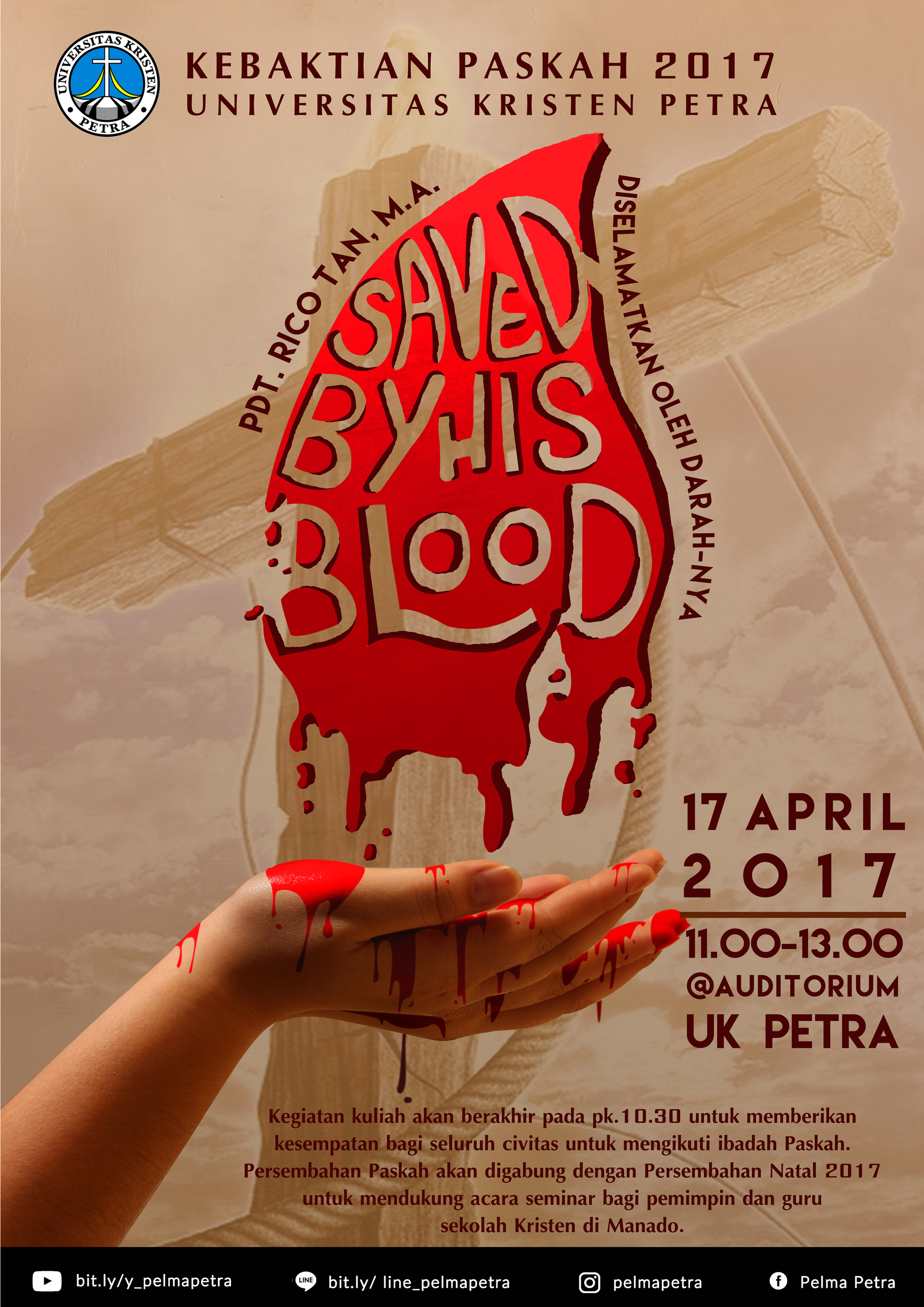 Universitas Kristen Petra Surabaya mengundang kehadiran civitas UK Petra untuk hadir dalam kebaktian Paskah 2017. Acara ini dilaksanakan pada 17 April 2017 bertempat di Auditorium UK Petra, dengan pengkhotbah Pdt. Rico Tan.