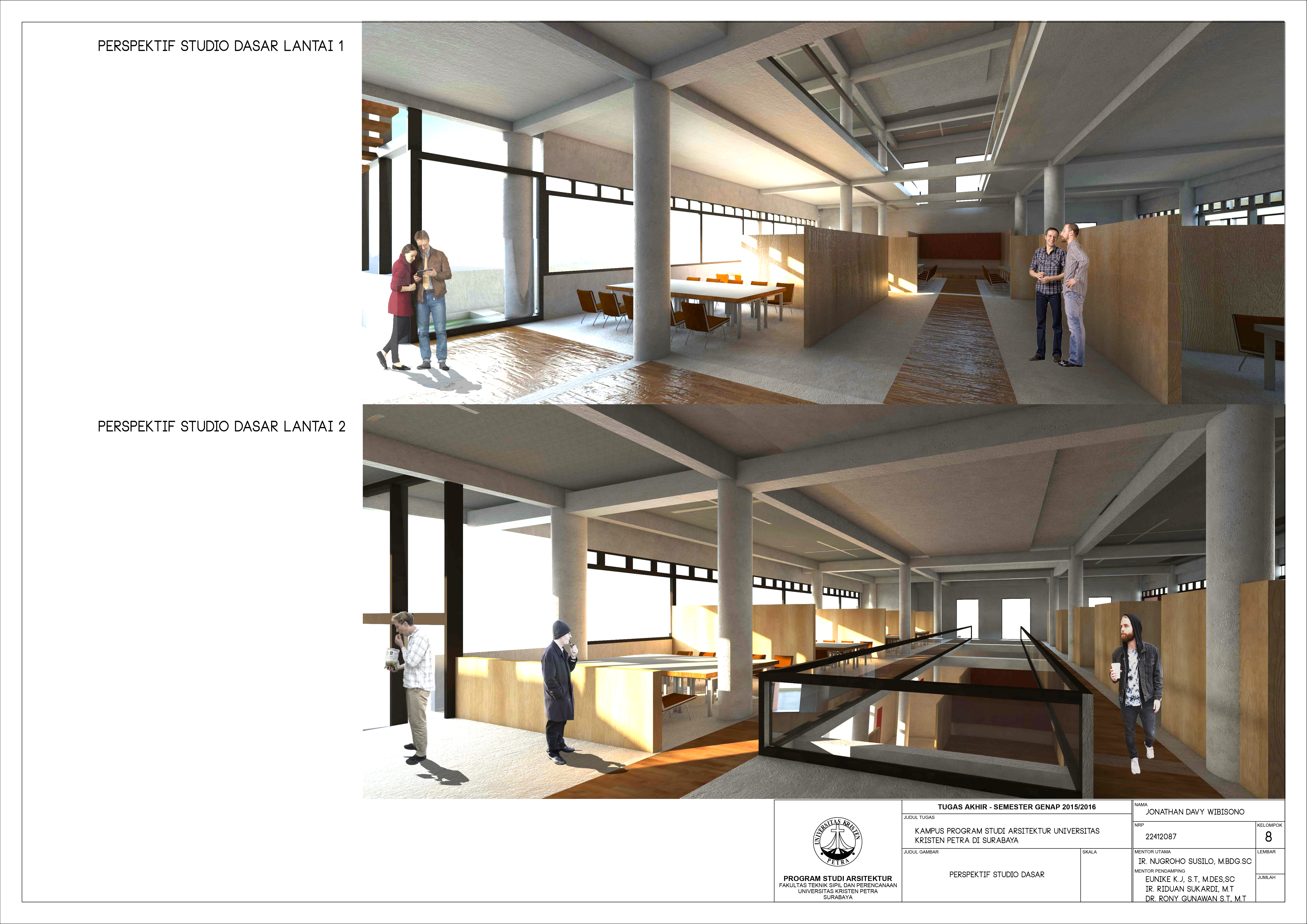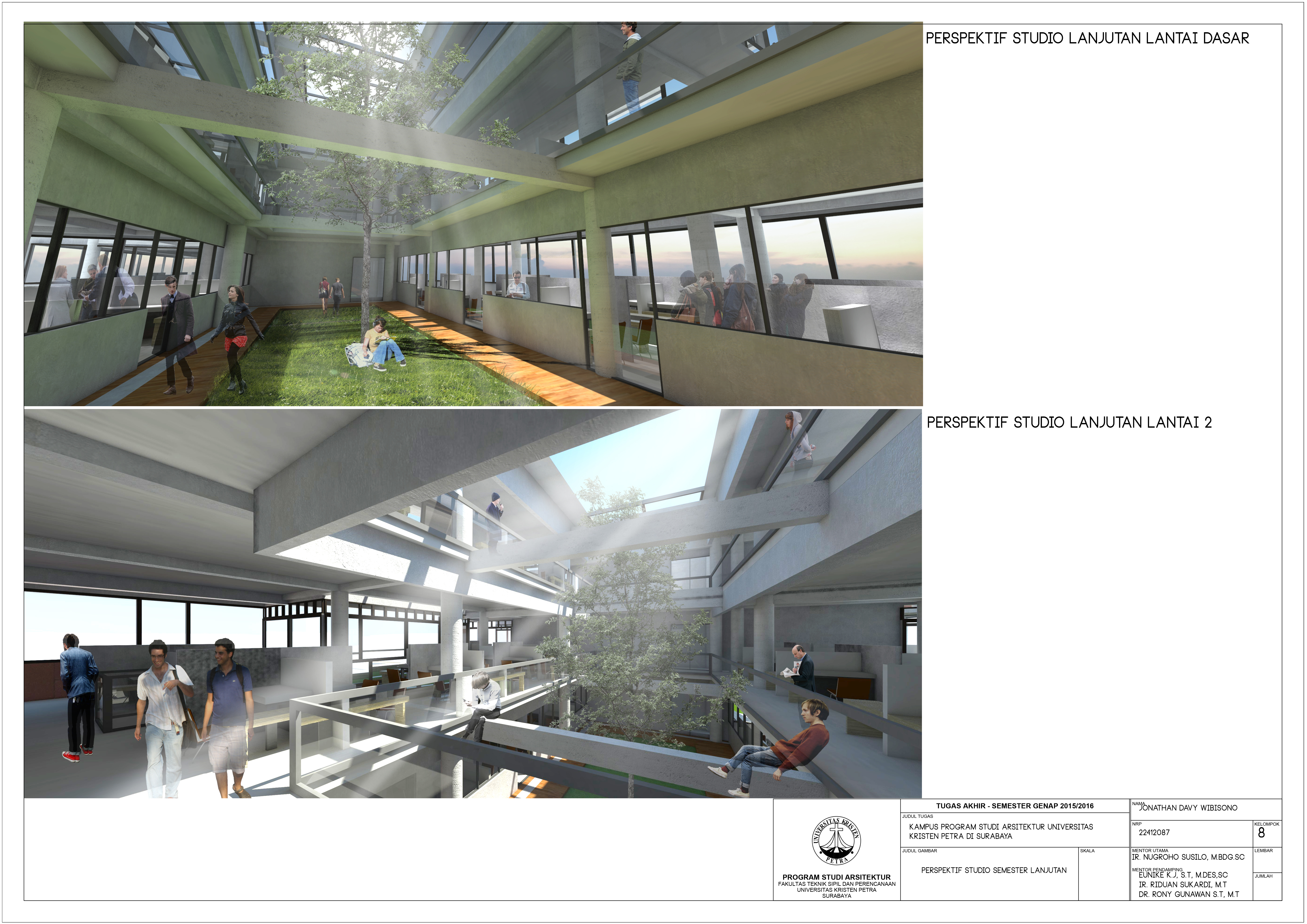 Kampus Program Studi Arsitektur Universitas Kristen Petra di Surabaya merupakan sebuah fasilitas edukasi arsitektur yang diharapkan dapat menjadi wadah pembelajaran arsitektur bagi mahasiswa UK Petra yang cocok bagi mahasiswa di Surabaya untuk mengetahui lebih dalam tentang Arsitektur. Arsitektur Petra memiliki motto yaitu “ berwawasan pembangunan berkelanjutan dan memperhatikan nilai-nilai budaya lokal “ maka dari itu proyek ini menggunakan pendekatan green architecture sebagai pedoman dan juga dikutip dari Shigeru Ban tentang pembelajaran Arsitektur bahwa “ studio merupakan pembelajaran terbaik dalam arsitektur “, maka pendalaman yang dilakukan yaitu menggunakan pendalaman karakter ruang studio.