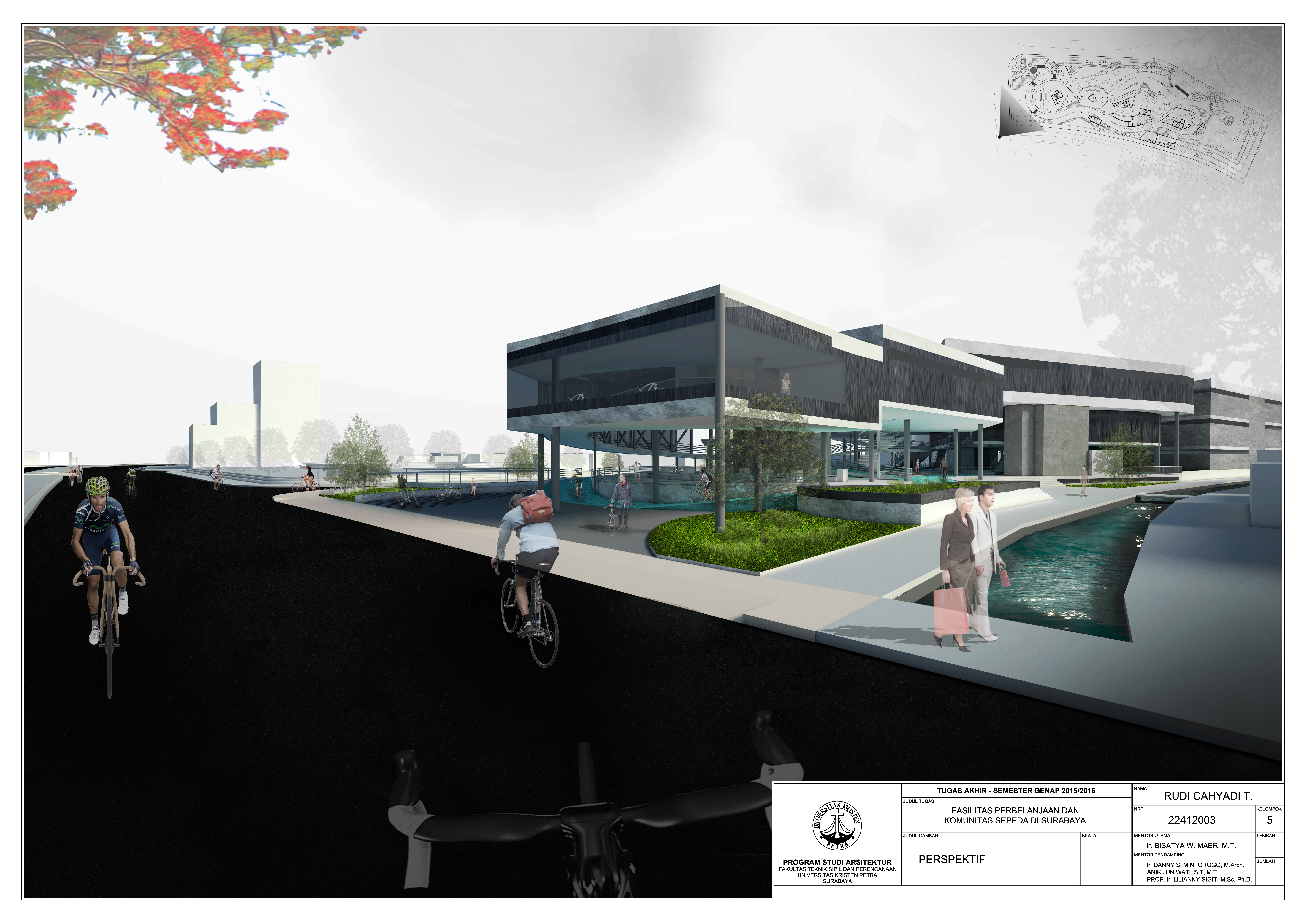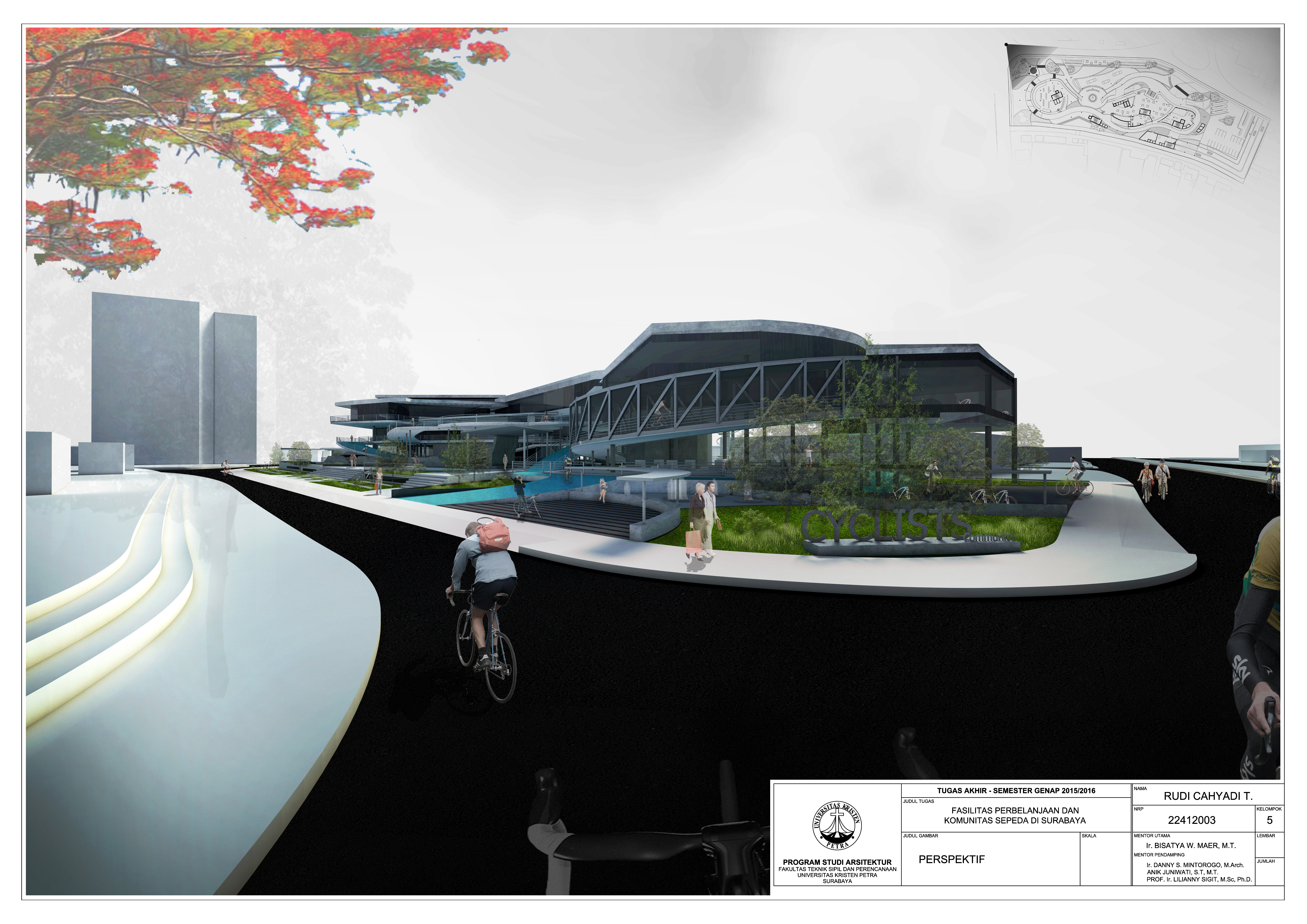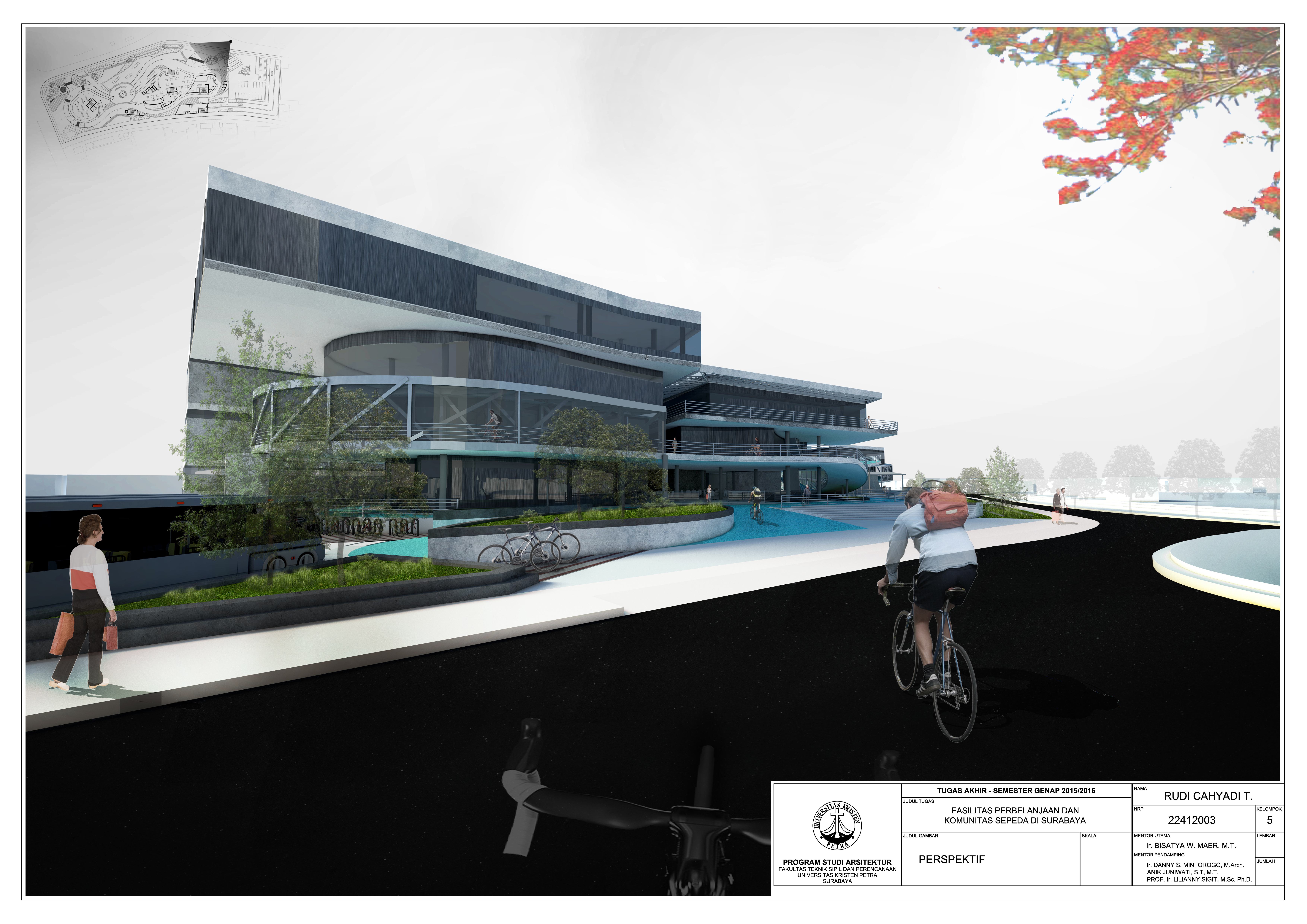 Kota Surabaya merupakan salah satu kota terbesar ke dua di Indonesia. Secara tidak langsung masalah polusi udara akibat kendaraan bermotor menjadi hal yang perlu di perhatikan. Fasilitas perbelanjaan dan pusat komunitas sepeda di Surabaya merupakan salah satu fasilitas yang menampung segala kegiatan bersepeda di Surabaya dan diharapkan masyarakat dapat tertarik terhadap sepeda dan menjadikan sepeda sebagai sarana transportasi yang menguntungkan dan menjadikan sepeda sebagai gaya hidup baru bagi masyarakat Surabaya. Dengan melewatkan kendaraan bermotor melalui belakang bangunan diharapkan dapat mengurangi polusi pada jalan raya darmo. Selain itu dengan adanya taman bungkul fasilitas ini diharapkan dapat saling mendukung satu sama lain.