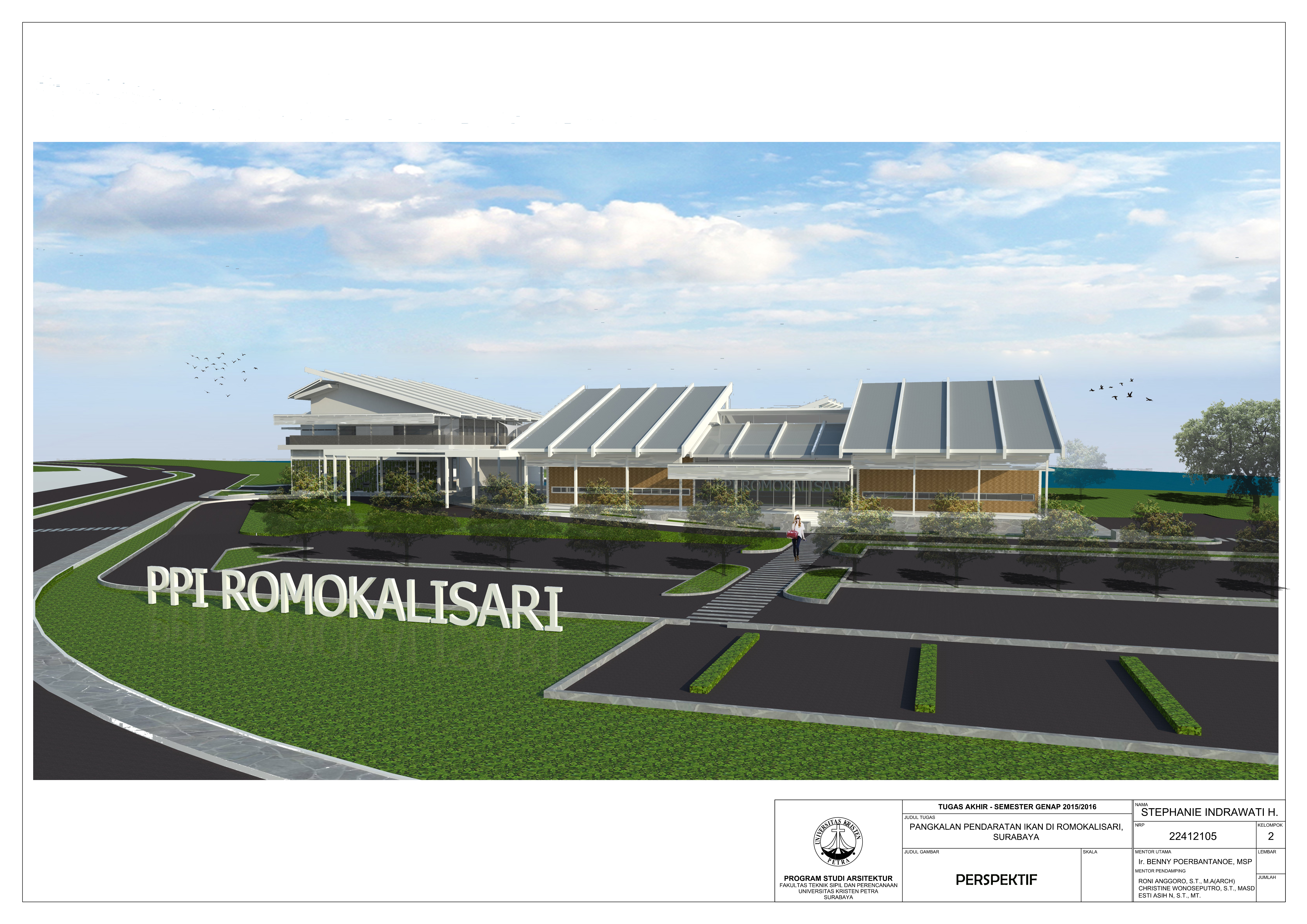 Pangkalan Pendaratan Ikan di Romokalisari merupakan fasilitas penunjang kegiatan nelayan daerah Tambak Osowilangon, Surabaya. Dulunya para nelayan tersebut tinggal di bantaran sungai dengan kualitas hidup yang begitu rendah. Sebagai bentuk kepedulian pemerintah terhadap nelayan, diadakanlah normalisasi sungai serta pemindahan para nelayan ke Rusunawa Romokalisari. Pangkalan Pendaratan Ikan sendiri merupakan fasilitas penunjang kegiatan para nalayan, berfungsi sebagai tempat berlabuh atau bertambatnya perahu/kapal perikanan guna mendaratkan hasil tangkapannya, memuat perbekalan kapal serta sebagai basis kegiatan produksi, pengolahan, pemasaran ikan dan pembinaan masyarakat perikanan. Banyaknya kegiatan, aktivitas serta objek yang ada dalam PPI menuntut pengaturan sirkulasi dan pembagian zona yang baik. Sehingga digunakan pendekatan sistem untuk dapat menjawab semua kebutuhan dan permasalahan yang ada dalam PPI.