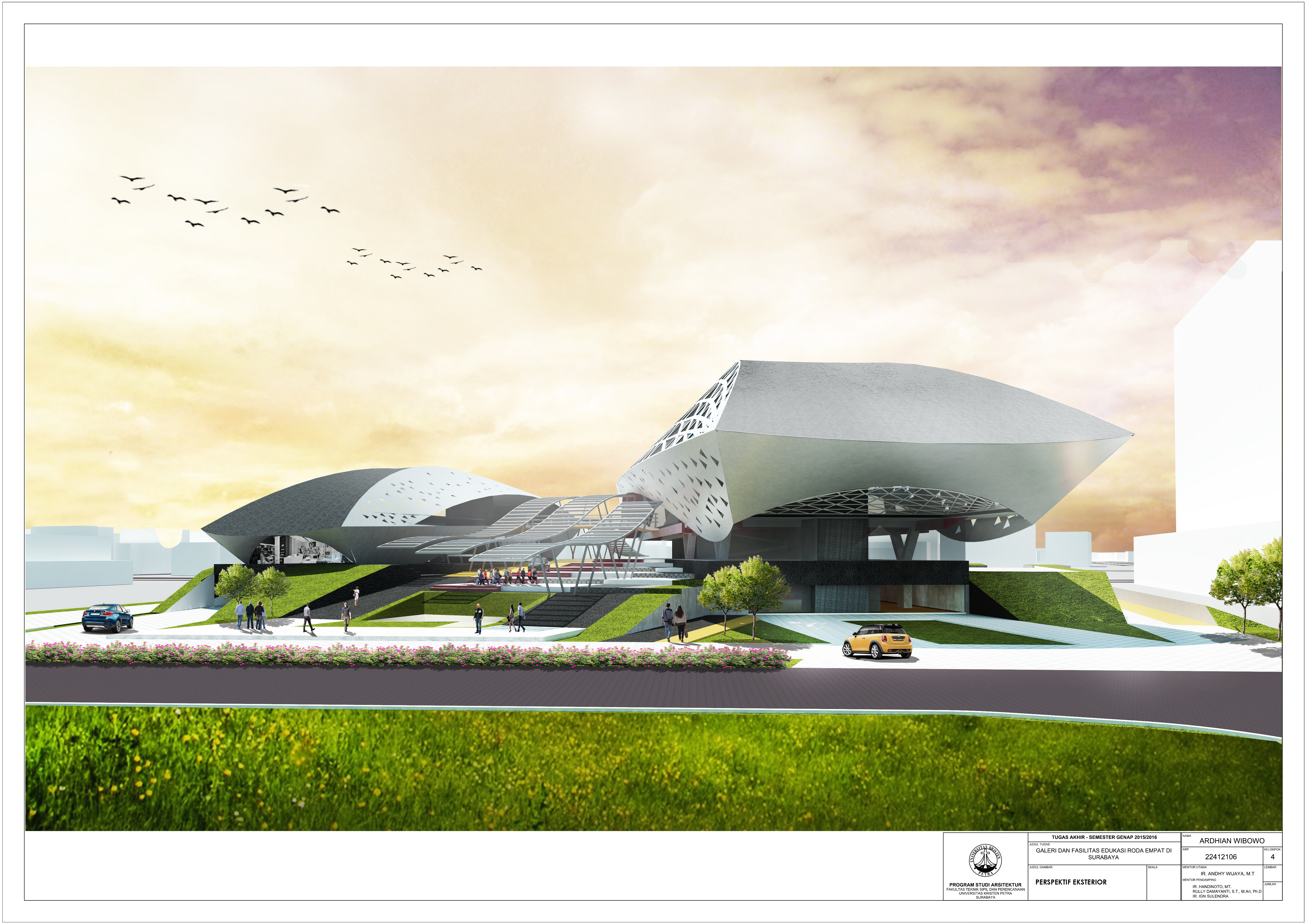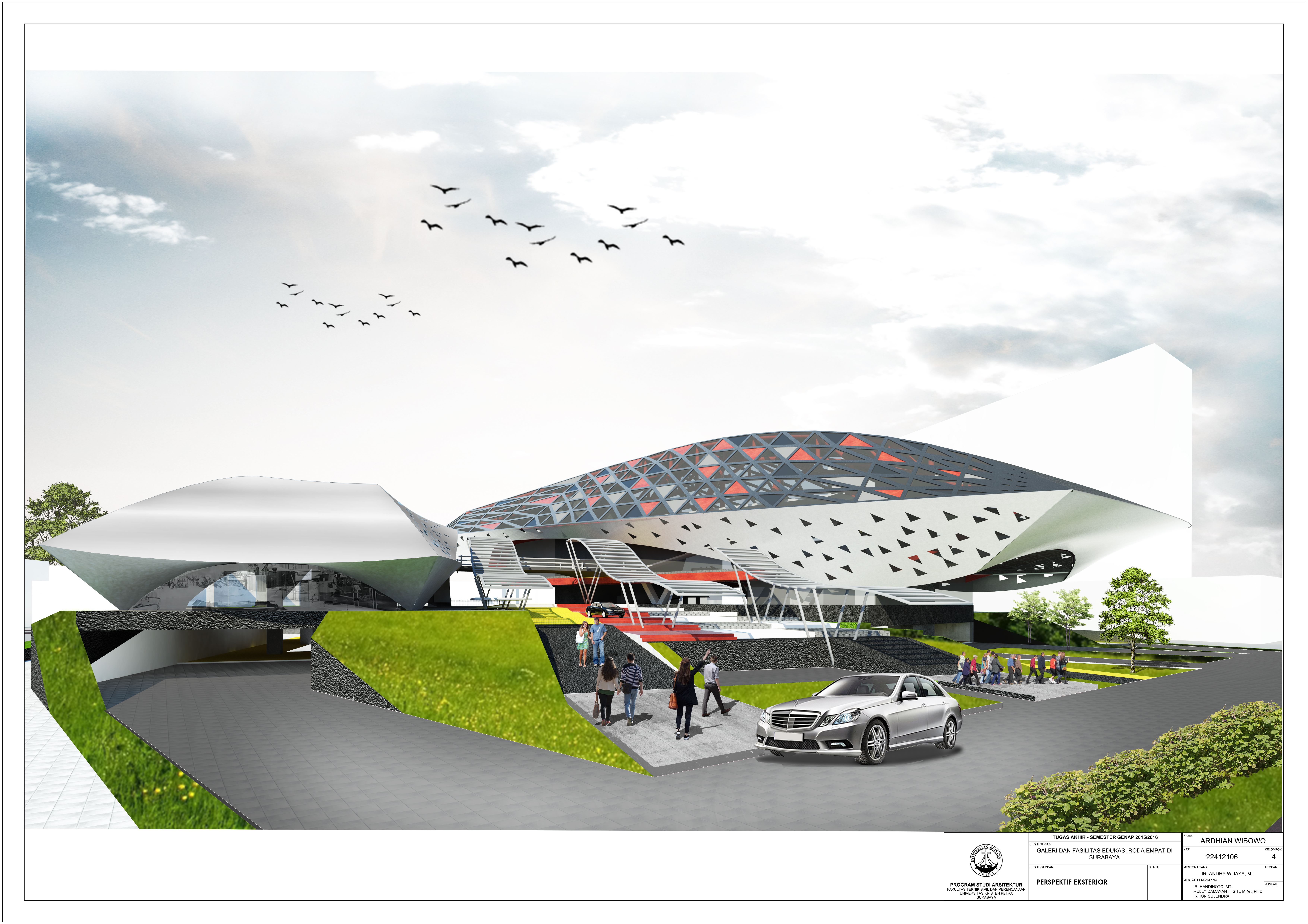 Galeri dan Fasilitas Edukasi Roda Empat di Surabaya dibangun sebagai infrastruktur kota tambahan agar dapat menciptakan fasilitas yang dapat memberikan informasi dari mobil sport sesuai dengan perkembangan, sehingga akan selalu diperbarui dan dapat menjawab kebutuhan masyarakat yang semakin berkembang perekonomiannya sehingga kebutuhan yang semakin spesifik, termasuk kebutuhan mobil sport. Fasilitas ini dibuat agar semakin melengkapi kebutuhan fasilitas dari warga kota Surabaya. Agar masyarakat semakin tertarik terhadap edukasi seputar mobil sport, dibuat fasilitas tambahan seperti lounge, outdoor space, serta outdoor exhibition. Pendekatan simbolik digunakan untuk menampilkan ciri khas mobil sport pada bentuk bangunan sehingga masyarakat dapat lebih mengenal seputar mobil sport melalui karya arsitektur. Tidak hanya melalui bentuk bangunan, tetapi melalui ciri khas mobil sport.