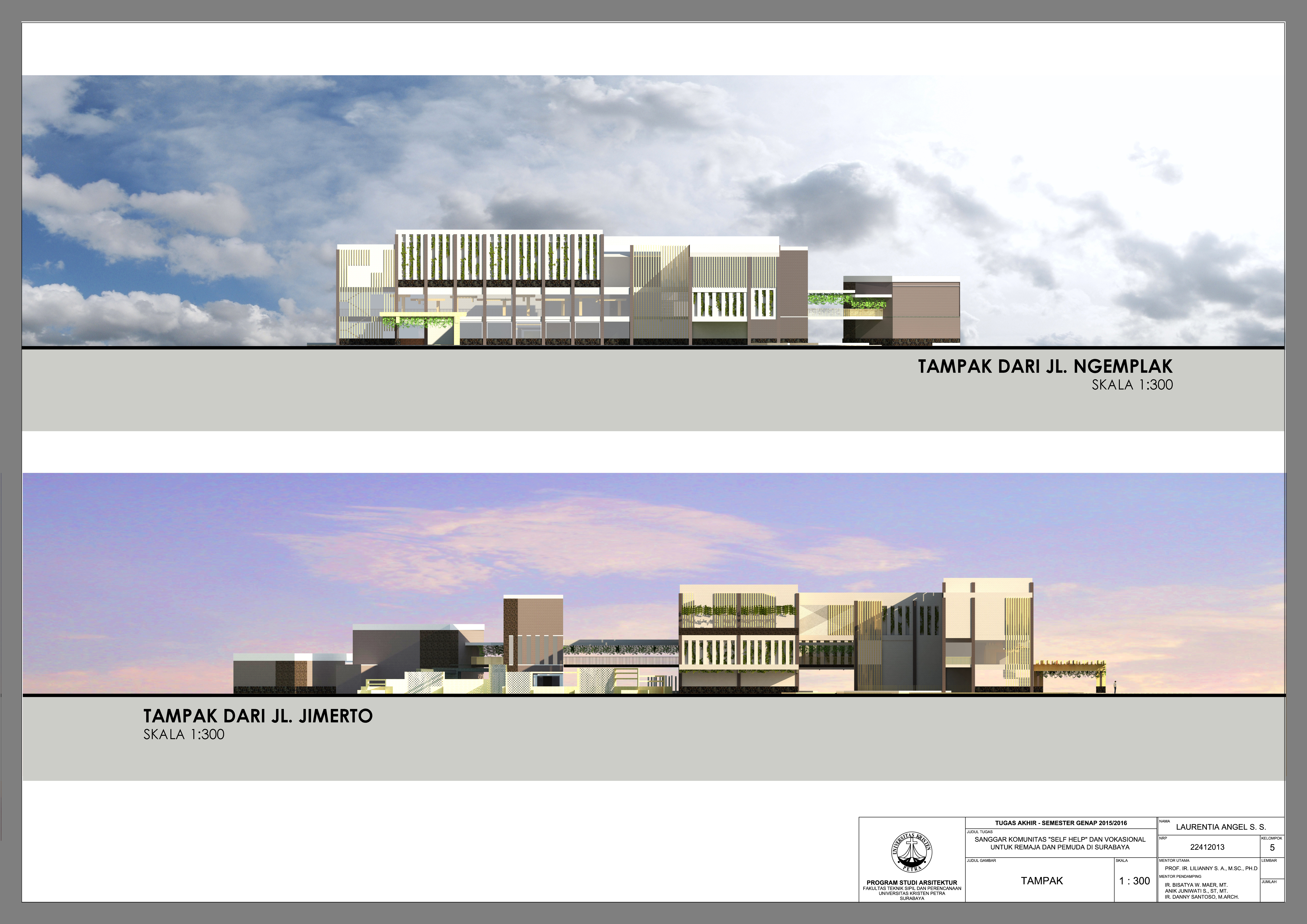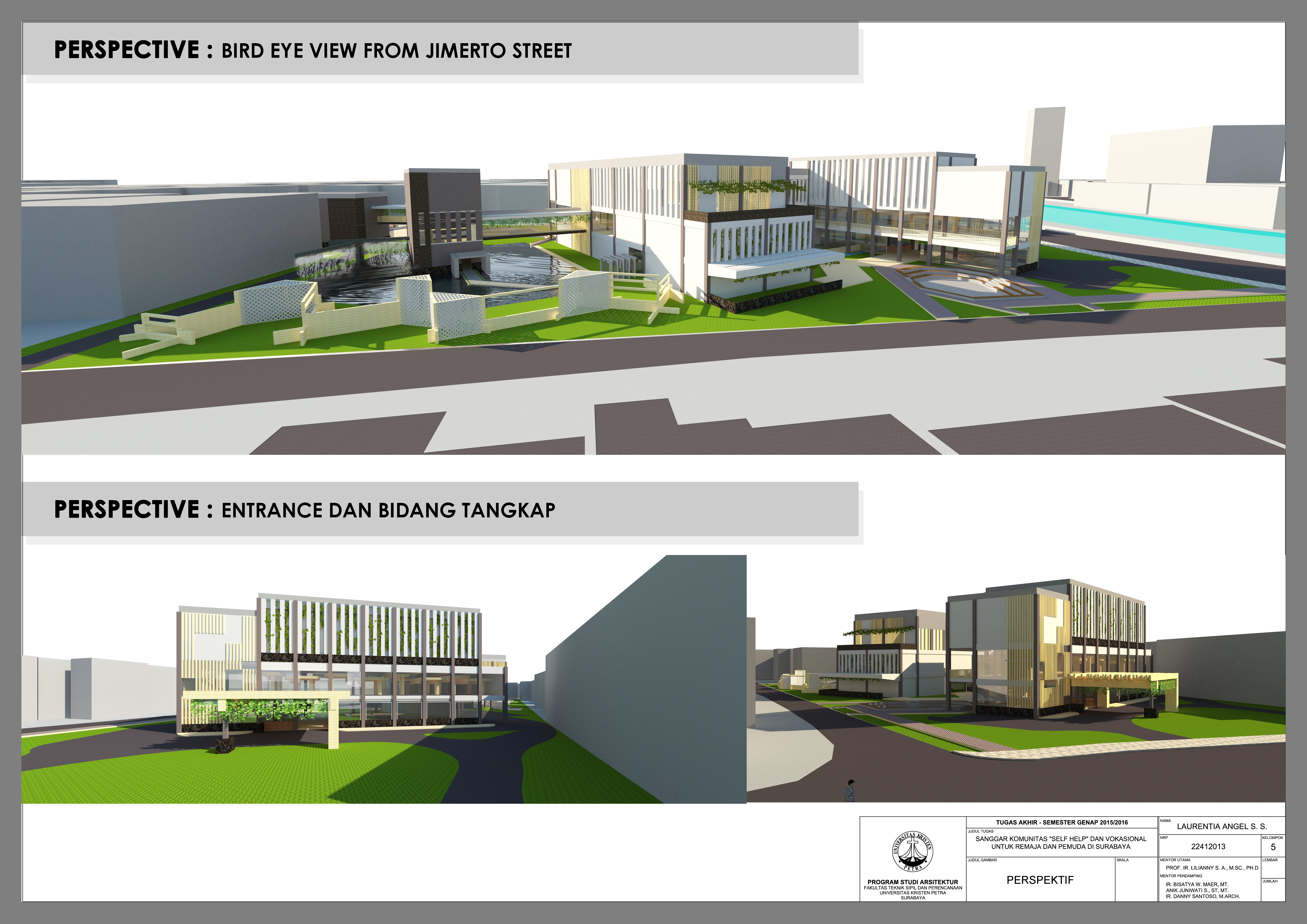 Sanggar Komunitas Self Help dan Vokasional untuk Remaja dan Pemuda di Surabaya merupakan suatu fasilitas rehabilitasi bagi para pecandu NAPZA sekaligus fasilitas pasca rehabilitasi bagi mantan pecandu NAPZA. Proyek ini dirancang dengan kesadaran akan banyaknya mantan residen rehabilitasi NAPZA yang tidak dapat kembali ke masyarakat seperti pada mulanya, baik karena menurunnya produktivitas maupun karena terjadinya kambuh (relapse) setelah mereka keluar dari panti rehabilitasi yang ada. Sesuai dengan judul yang diangkat, selain penginapan untuk para residen rehabilitasi dan pasca rehabilitasi, proyek ini juga dilengkapi dengan ruang self help (indoor maupun outdoor), ruang audio visual, amphitheatre, home industry workshop, auditorium, studio tari, studio teater, studio lukis, perpustakaan mini, kapel, area outbound, dan lain-lain. Semua fasilitas tersebut dirancang khusus guna mendukung pemulihan residen dengan terapi self help yang diberikan, serta mempersiapkan para residen untuk menjadi pribadi yang produktif kembali sehingga siap untuk kembali ke masyarakat.