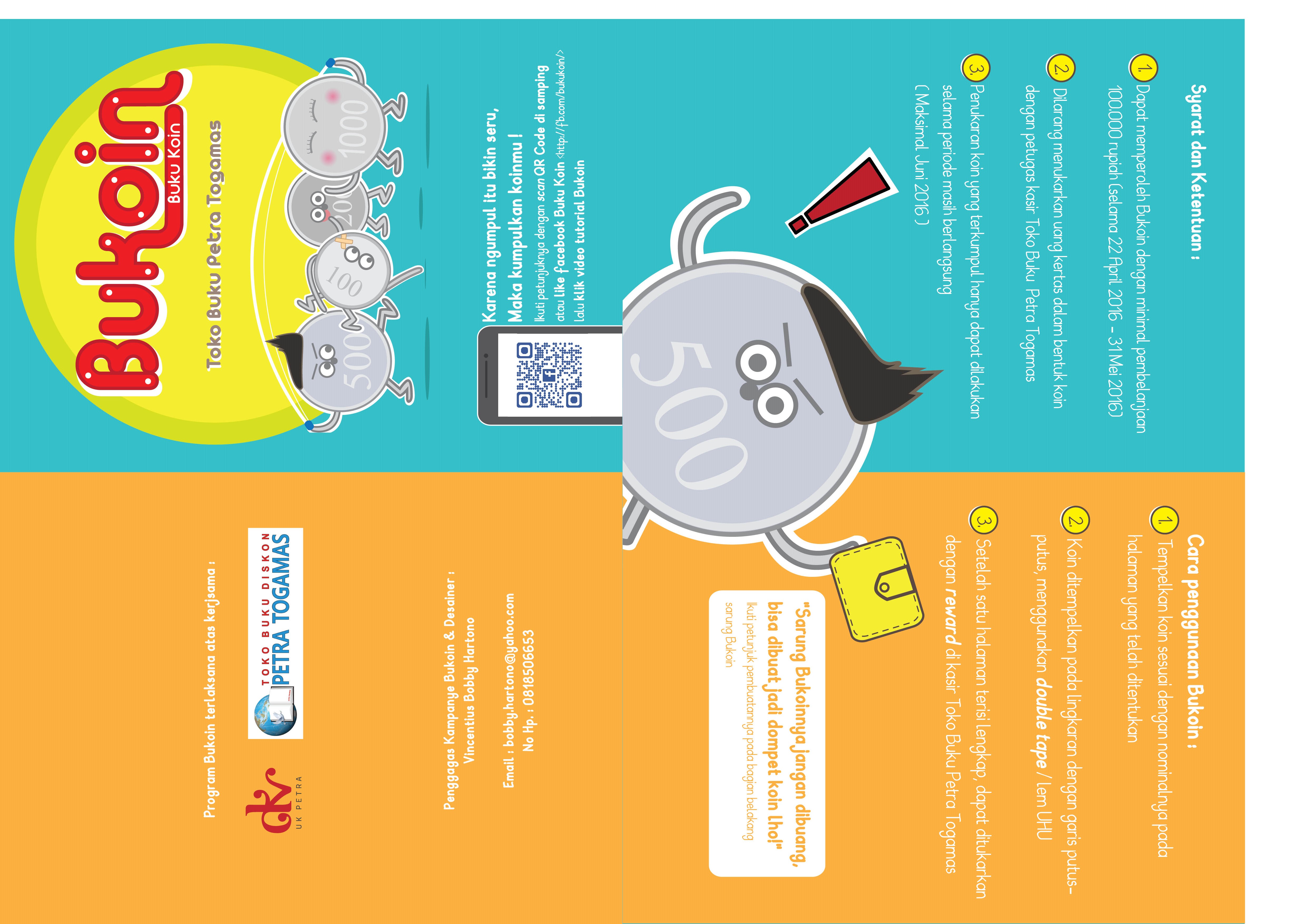 Koin merupakan alat tukar yang sudah mulai ditinggalkan di Indonesia dikarenakan nominalnya yang terlalu kecil. Anak-anak dan orang tua menganggap bahwa koin bukanlah sesuatu yang berharga. Solusi yang dirancang ialah kampanye. Melalui kampanye, pesan dirancang melalui riset yang mendalam mengenai target audiens agar pesan secara efektif tersampaikan kepada target. Kampanye Bukoin ini bekerjasama dengan Toko Buku Petra Togamas. Anak-anak dan orang tua diajak untuk menghargai koin dengan mengumpulkan dan mengutamakan membayar dengan koin. Melalui kampanye Bukoin, anak-anak dan orang tua mengerti pentingnya mengumpulkan koin dan merupakan langkah awal bagi anak-anak dan orang tua untuk menghargai koin.