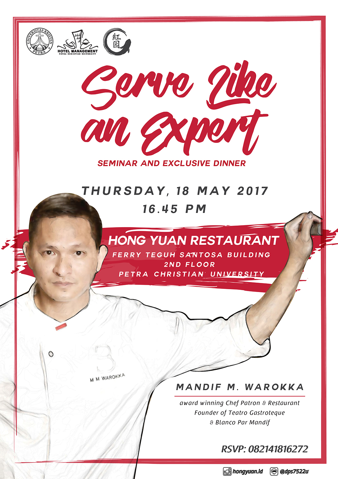 Manajemen Perhotelan UK Petra mengadakan seminar dan makan malam ekslusif. Dengan narasumber Mandif M. Warokka. Acara ini diselenggarakan pada 18 Mei 2017. Bertempat di gedung Ferry Teguh Santoso lantai 2.