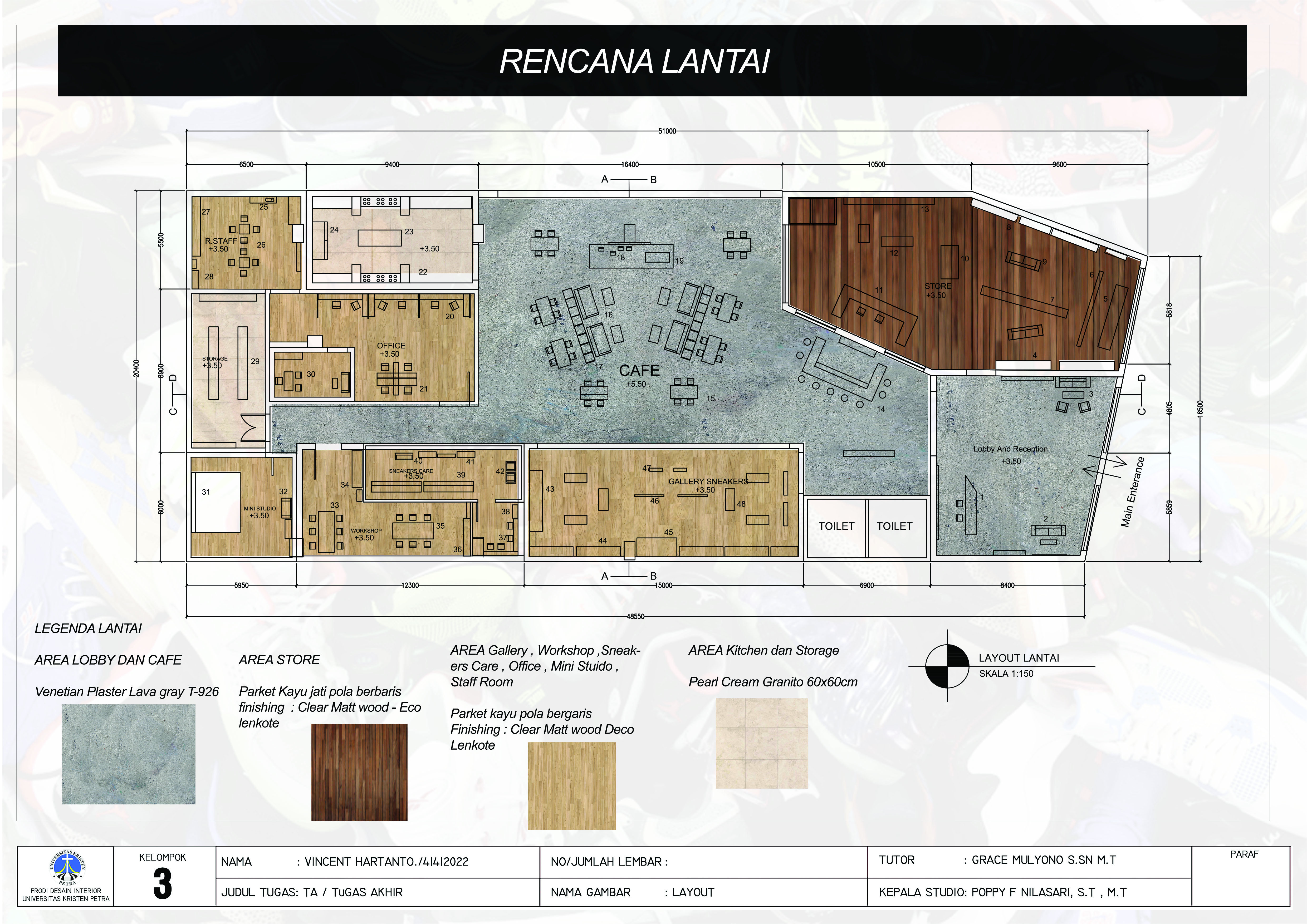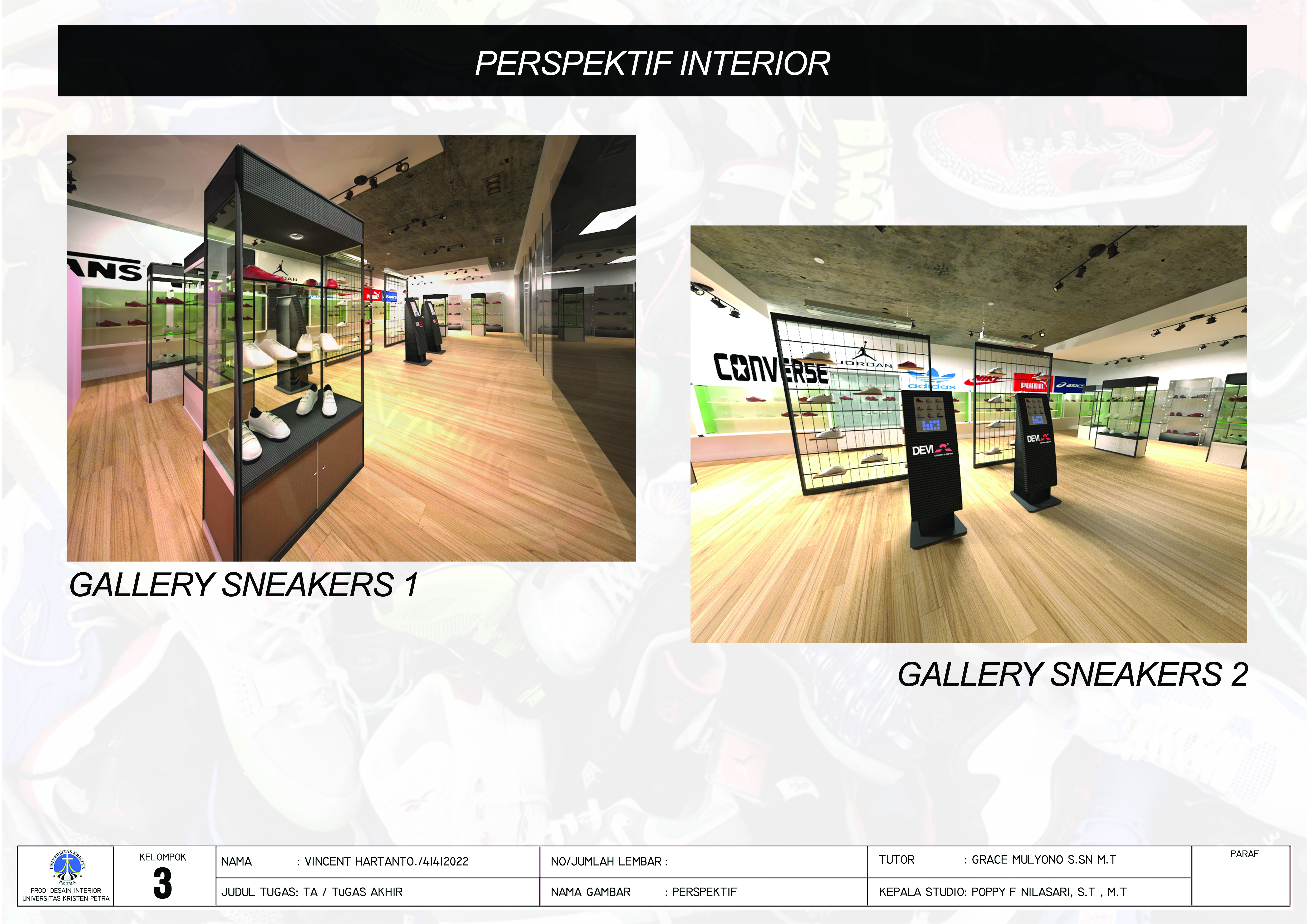 Sneakers adalah jenis sepatu dengan sol fleksibel terbuat dari karet atau bahan sintetis dan bagian atas terbuat dari kulit atau kanvas. Tetapi, seiring perkembangan jaman sekarang banyak sneakers yang terbuat juga dari suede dan nylon. Sneakers awalnya diambil dari kata dalam bahasa Inggris, yaitu ‘sneak’ yang berarti penyelinap. Awalnya sneakers adalah sepatu olahraga dan sepatu lainnya yang digunakan untuk olahraga kemudian banyak model sneaker para kolektor mulai bermunculan untuk mencari sneakers yang cukup susah untuk didapat berharga menjadikan asset dan sekarang adanya komunitas sneakers di Surabaya dan banyaknya anggota yang telah bergabung. Dan minimnya fasilitas untuk Komunitas sneakers ini kemudian perancangan ini untuk menyelesaikan kebutuhan para Komunitas dan masyarakat sekitar juga dapat menikmati, mengambil Konsep Back to the Future ini memberikan kesan masa lalu dan masa lampau dan gaya desain cenderung Urban Style, karena temanya lebih ke arah fashion yang casual dan Streetwear menjadi gaya fashion para jaman sekarang dan masa lalu.