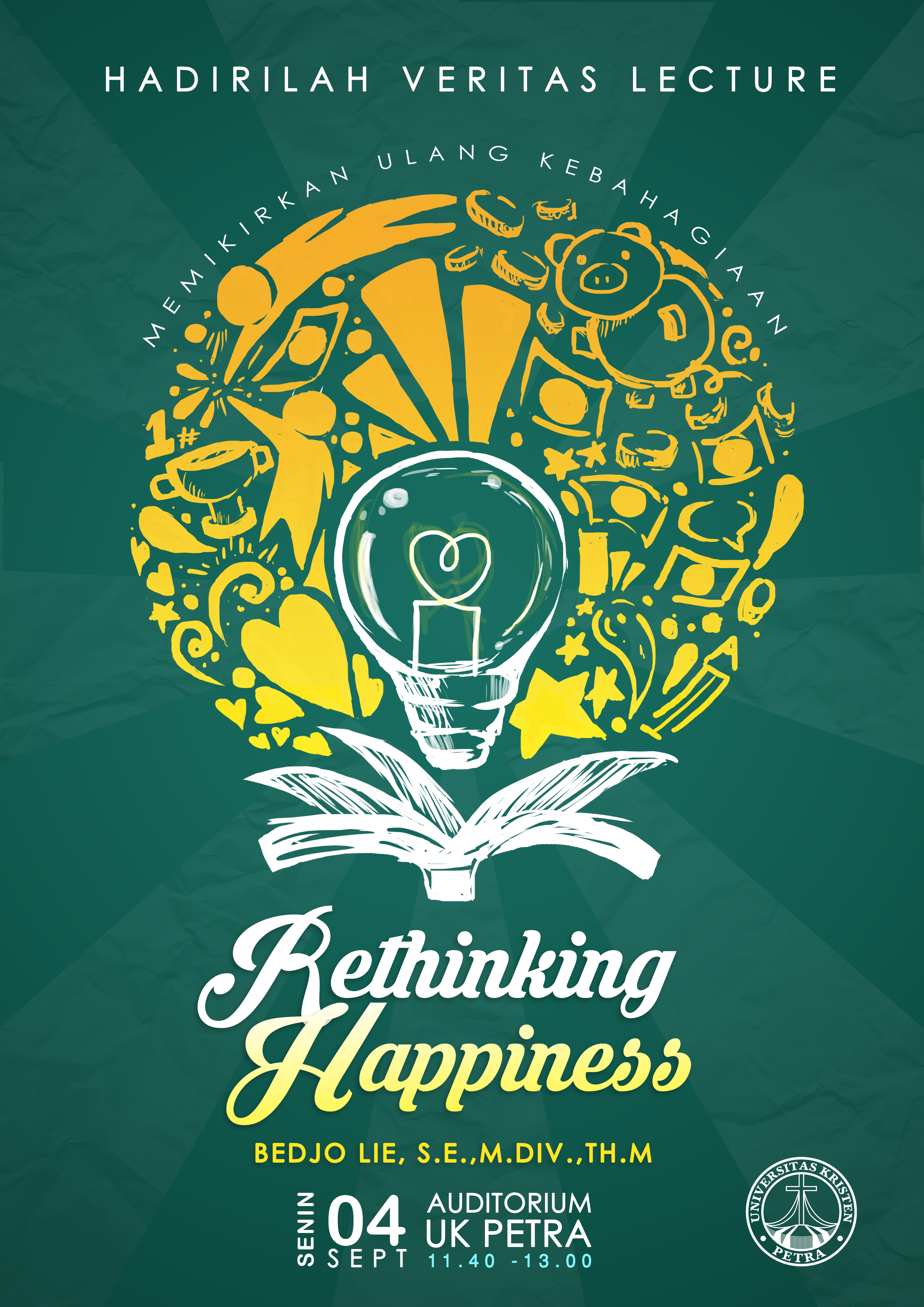 Kebaktian Universitas Kristen Petra setiap hari Senin diadakan pada tanggal 4 September 2017. Bertempat di auditorium UK Petra dengan pengkhotbah bapak Bedjo Lie. Kebaktian ini mengangkat tema rethinking happiness ( memikirkan ulang kebahagiaan ).