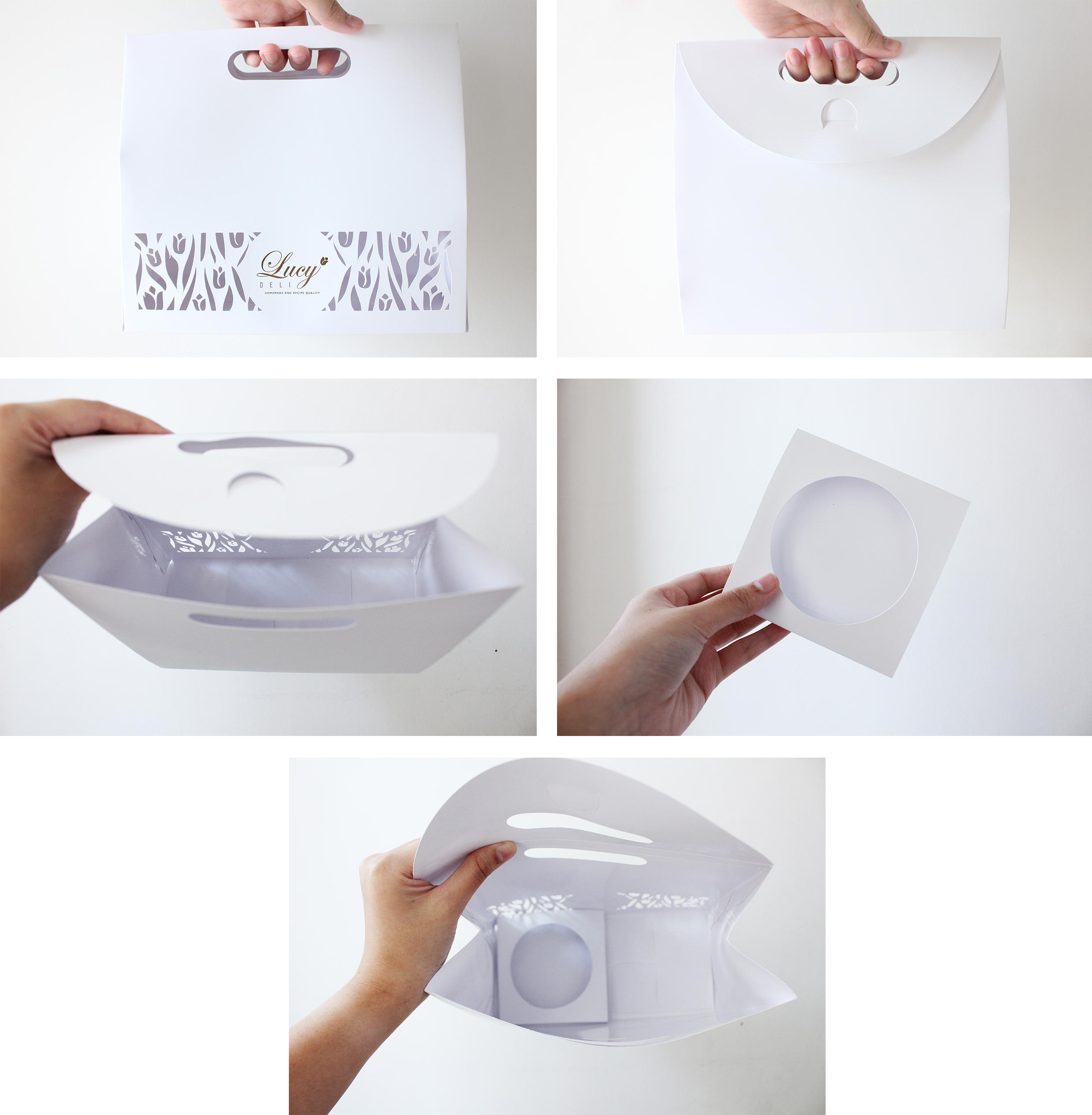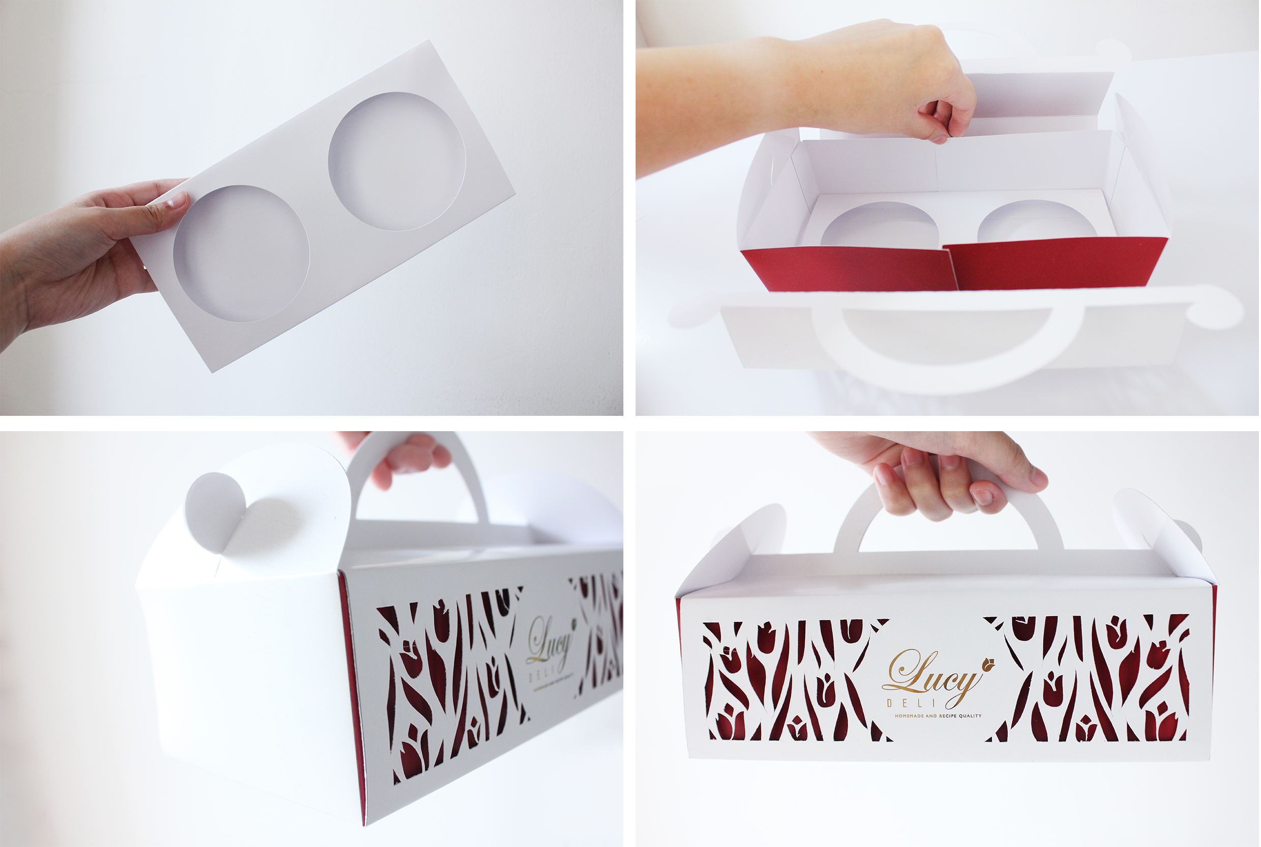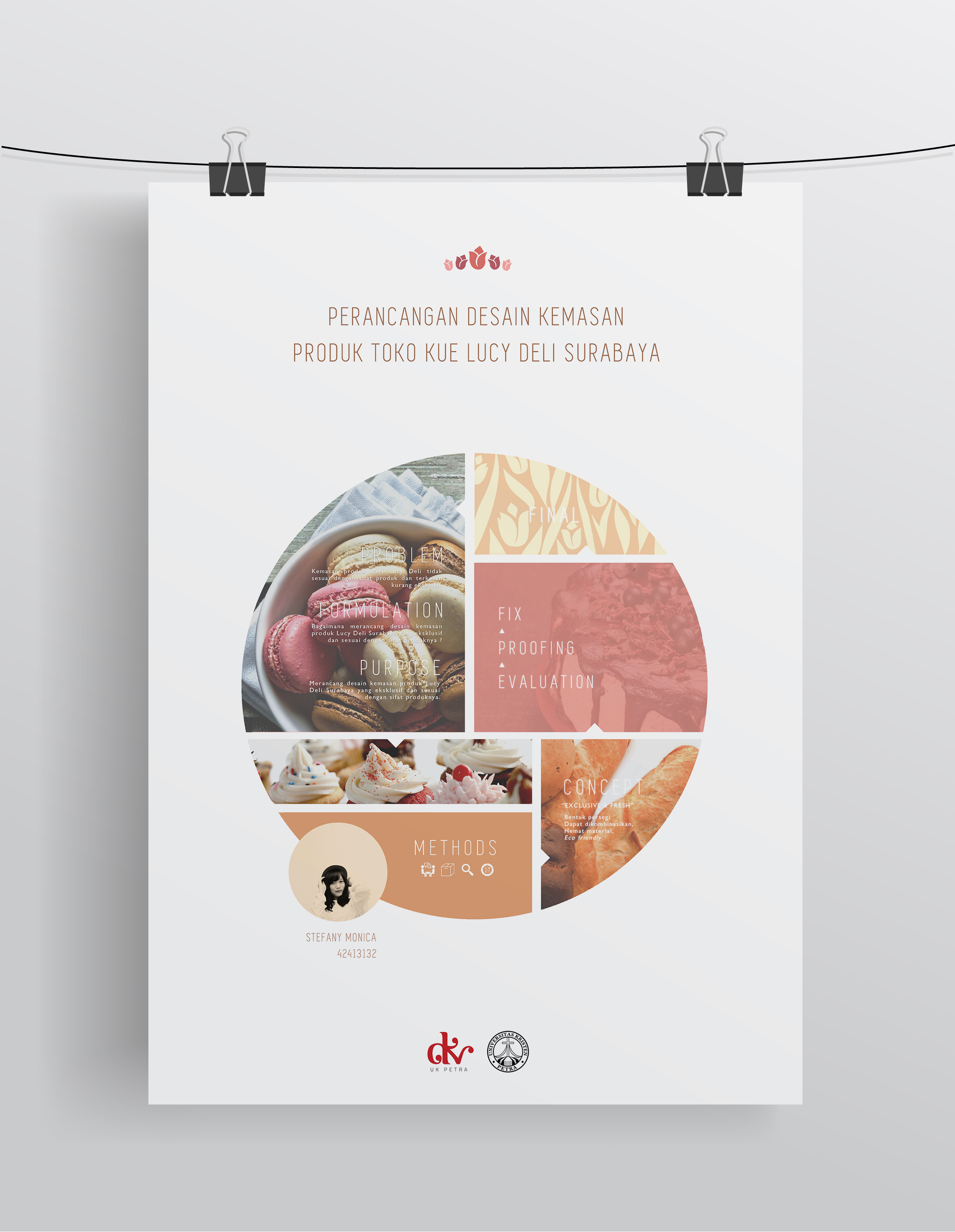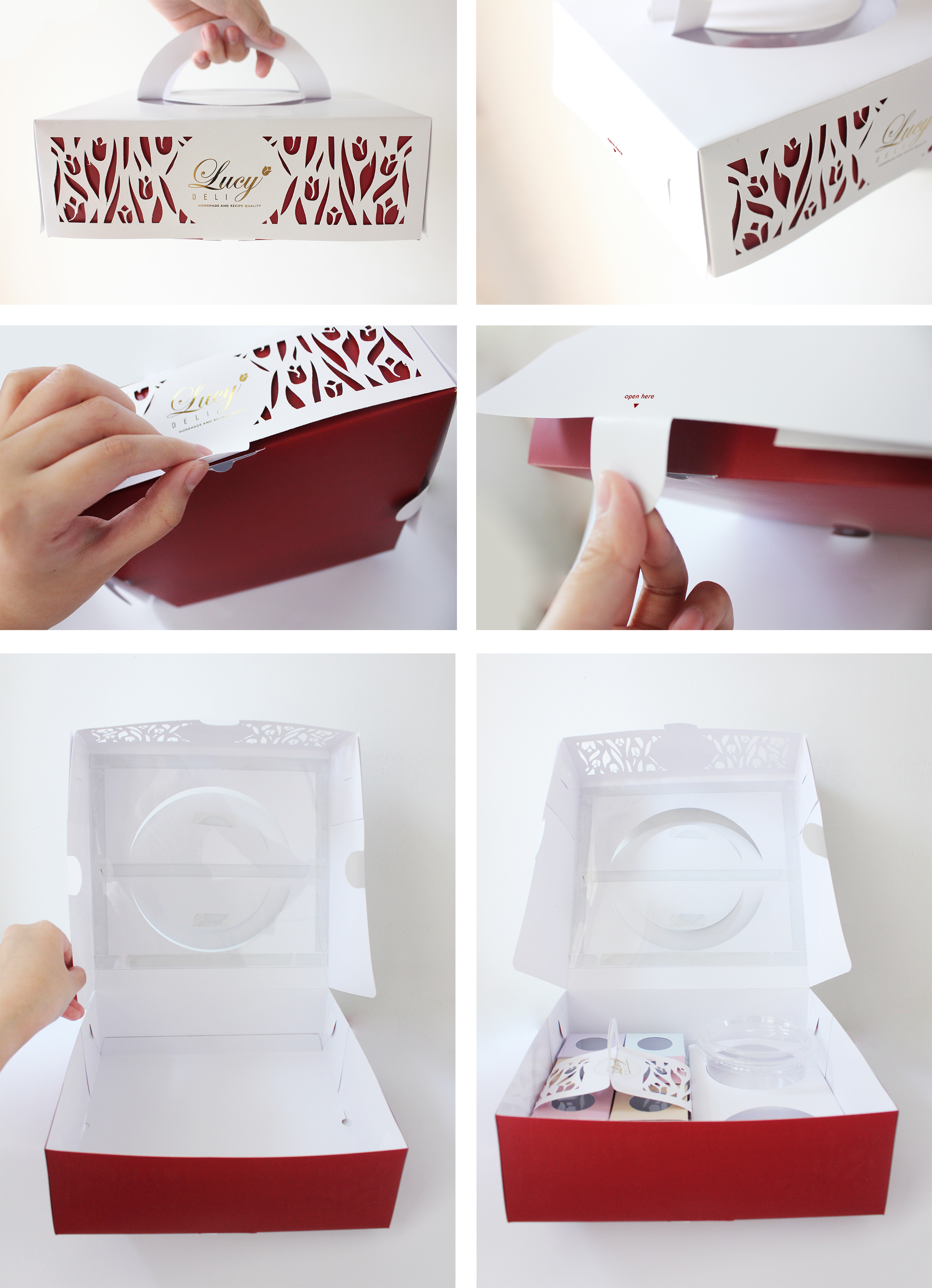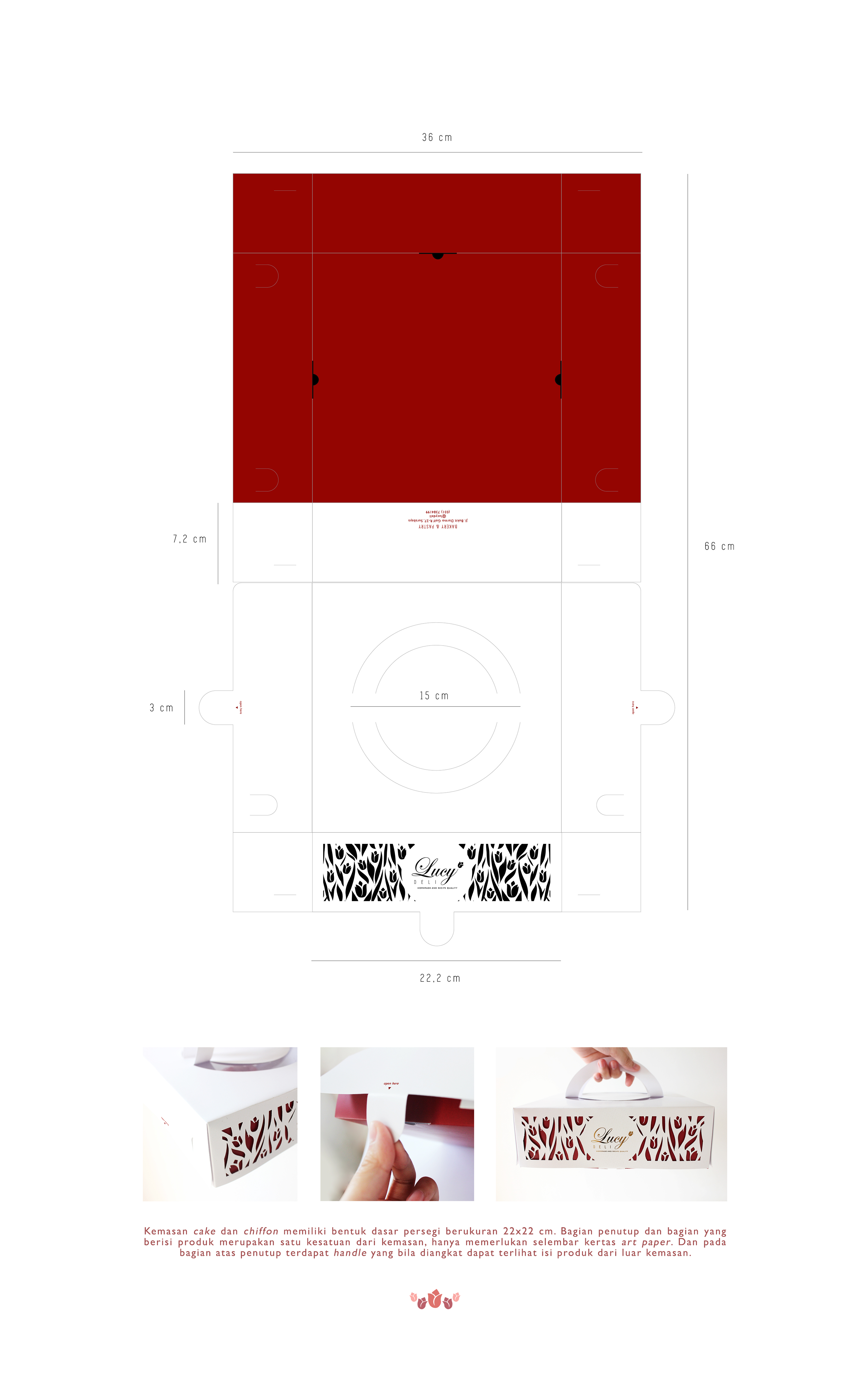 Lucy Deli adalah sebuah toko kue di Surabaya yang telah berdiri sejak tahun 2009 hingga sekarang. Produk yang dijual beraneka ragam, dari roti, cake, pastry, chiffon dan yang paling baru adalah fruit salad dan macaron. Perancangan kemasan ini bertujuan untuk merancang desain kemasan yang eksklusif dan sesuai dengan sifat produknya. Data-data pendukung didapat melalui wawancara dan observasi terhadap produk Lucy Deli beserta kemasannya, dan dianalisis dengan metode SWOT dan VIEW. Diharapkan kemasan yang baru dapat memberi perlindungan produk, kemudahan dalam membawa produk, serta menonjolkan identitas Lucy Deli yang exclusive dan fresh.