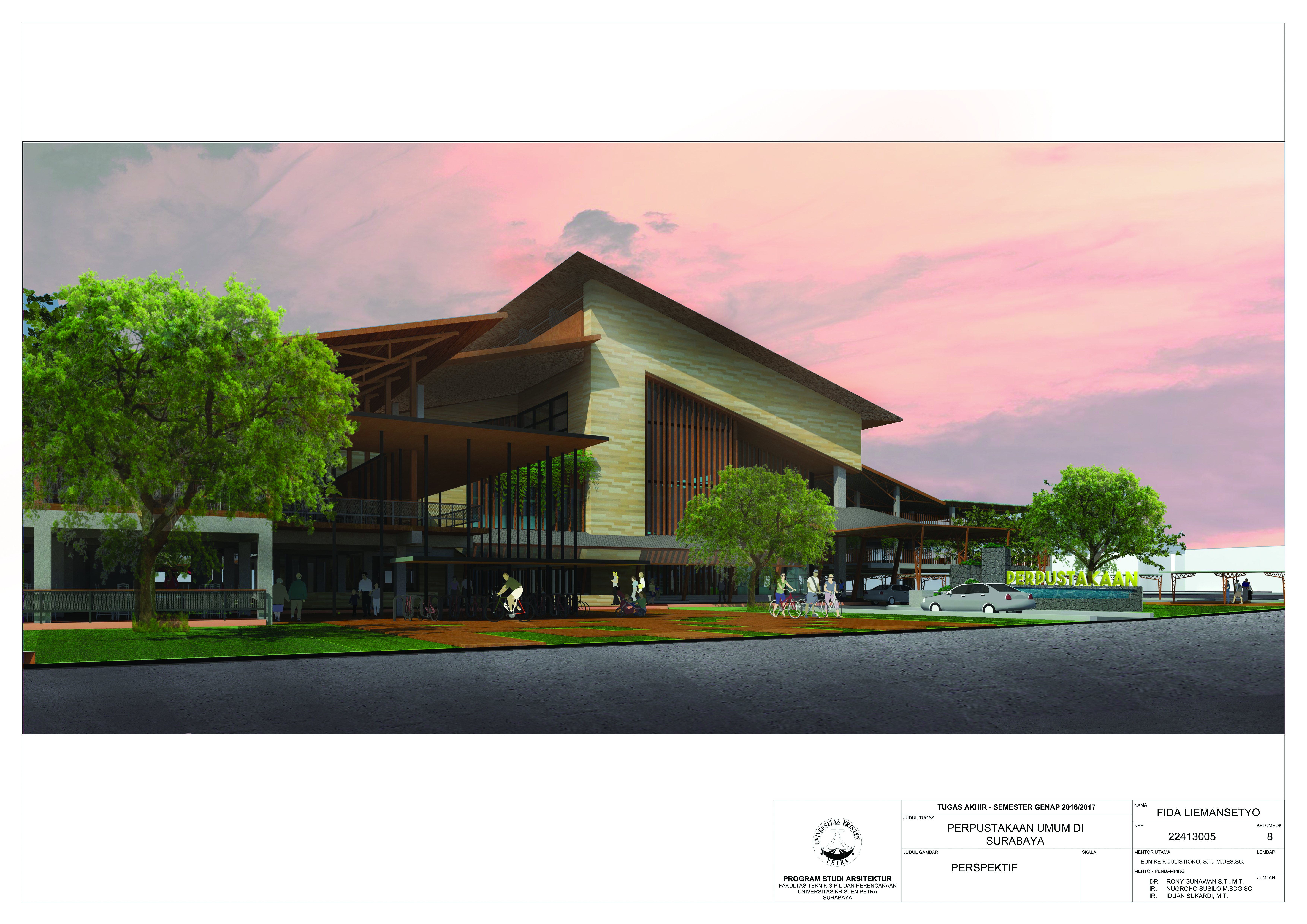 Realitanya, walaupun telah banyak perpustakaan yang berdiri di Indonesia, minat baca masyarakat masih sangat rendah. Salah satu penyebabnya adalah desain perpustakaan yang kurang memadai. Oleh sebab itu, perlu dipikirkan desain perpustakaan yang lebih dapat menarik minat masyarakat dan lebih sesuai dengan kebutuhan masyarakat saat ini. Kota Surabaya sebagai salah satu kota yang ingin menjadi kota literasi di Indonesia, perlu suatu perpustakaan yang mewadahi aktivitas pembelajaran terkini. Desain perpustakaan diharapkan dapat mewadahi aktivitas pembelajaran formal (aktivitas membaca) dan informal (aktivitas komunitas). Dengan berbagai jenis aktivitas yang diwadahi diharapkan dapat meningkatkan minat masyarakat Surabaya terhadap perpustakaan.
