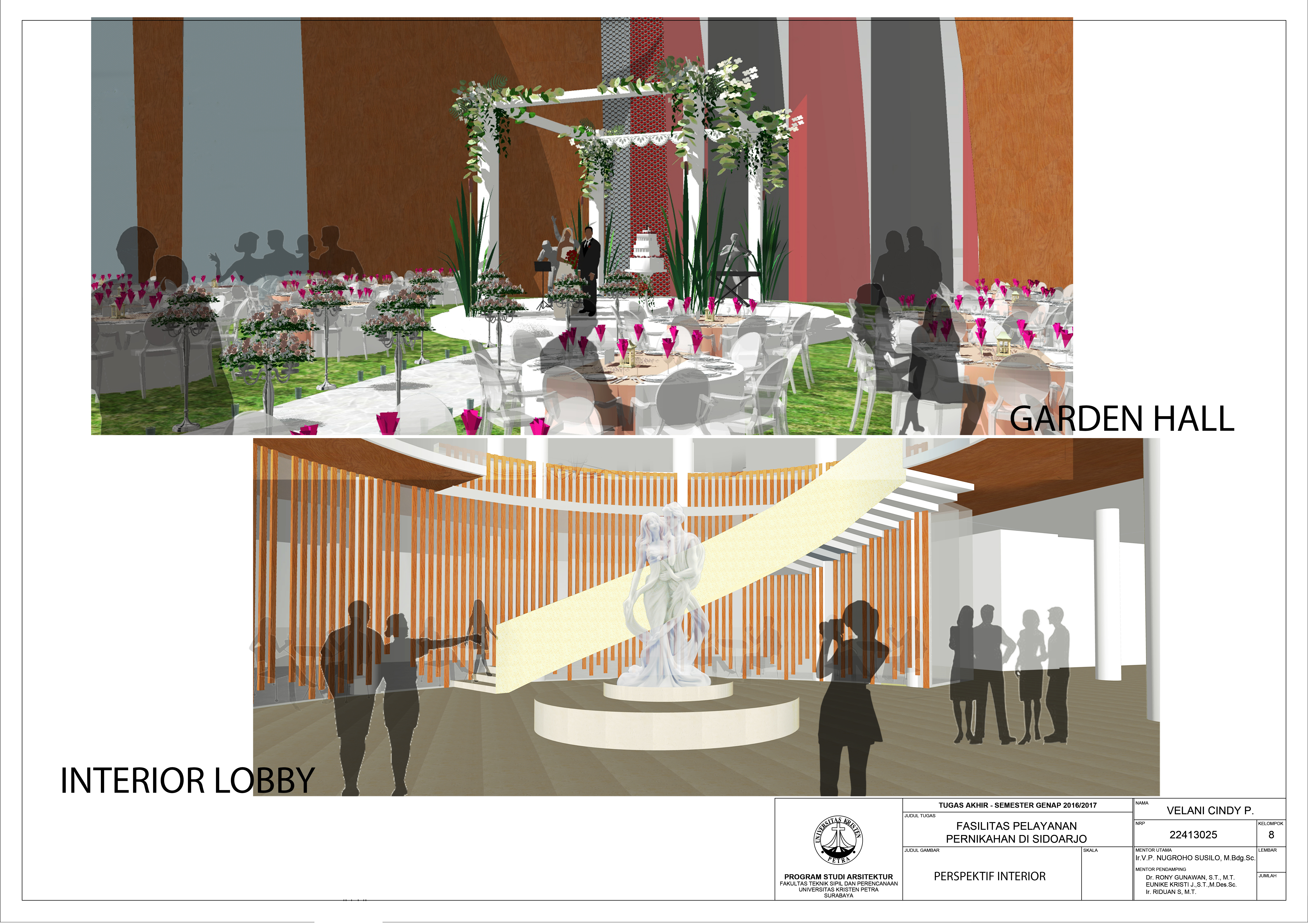 Fasilitas Pelayanan Pernikahan di Sidoarjo merupakan fasilitas yang mewadahi segala aktivitas yang berhubungan dengan keperluan pernikahan, baik dari persiapan hingga perayaan pernikahan. Fasilitas ini akan menjadi fasilitas one stop service di Sidoarjo yang menyediakan fasilitas hall indoor dan outdoor serta fasilitas penunjang persewaan jasa pernikahan. Fasilitas ini dirancang dengan pendekatan simbolik untuk menjawab permasalahan desain, yaitu bagaimana merancang sebuah fasilitas yang mengekspresikan pernikahan.