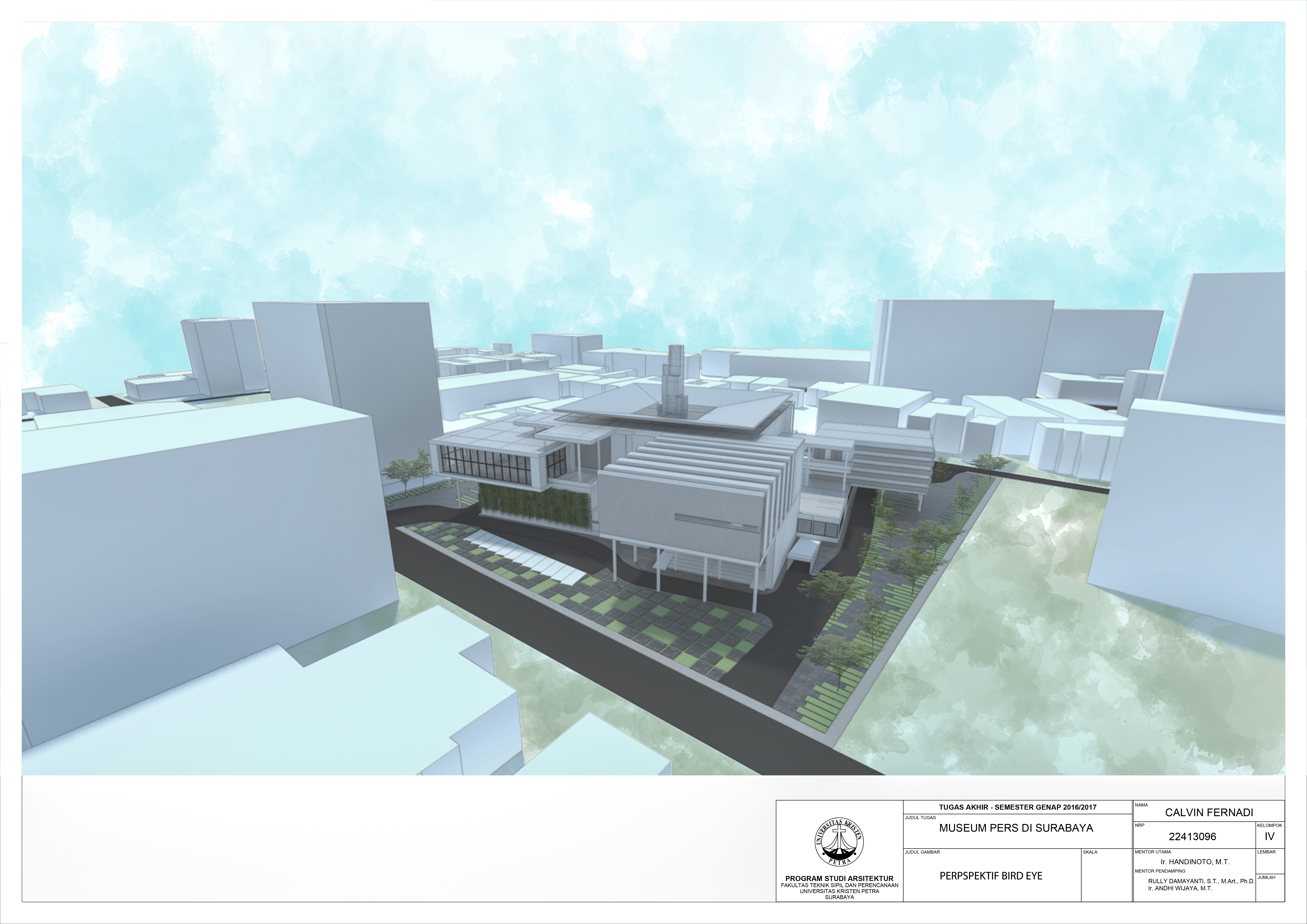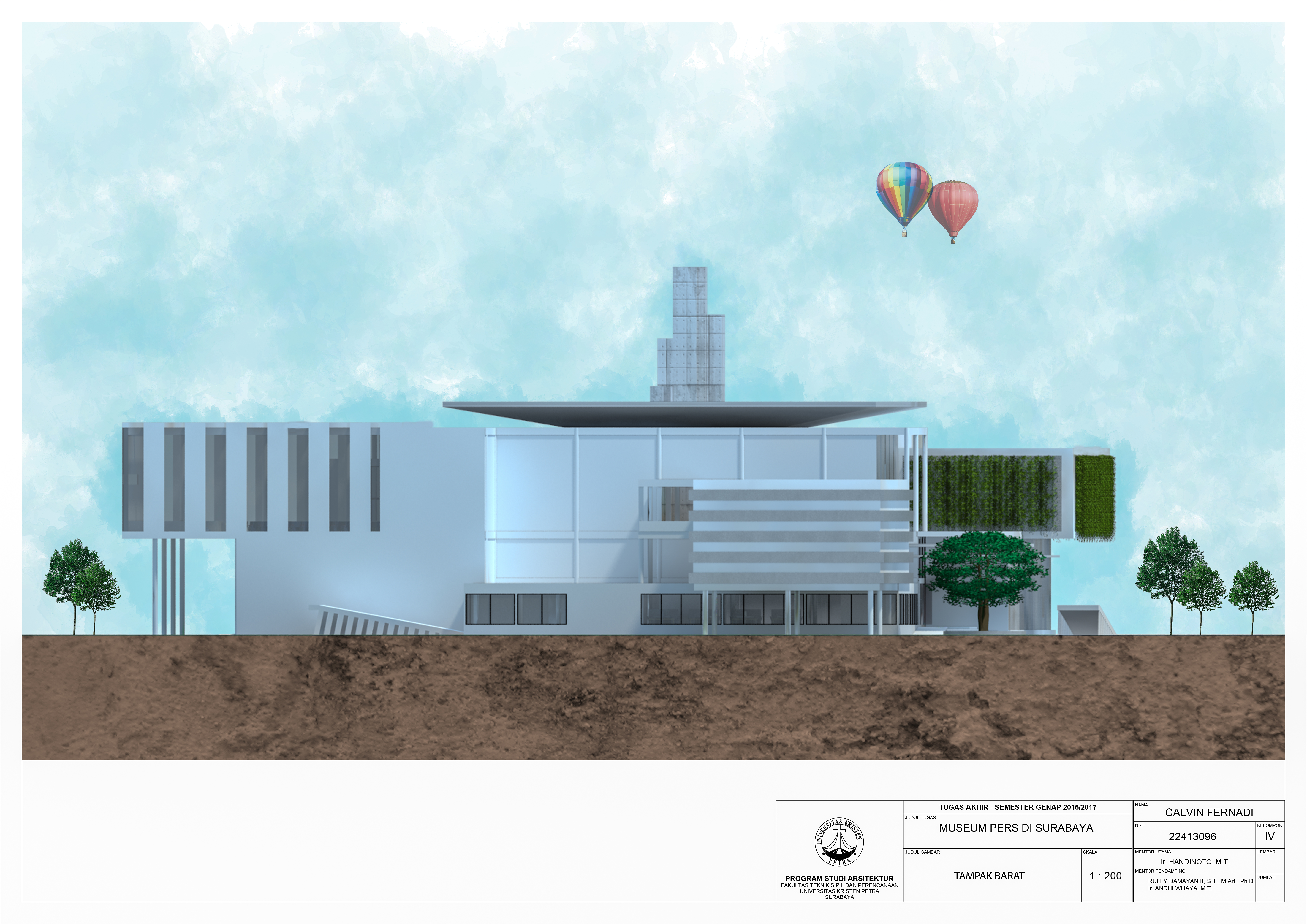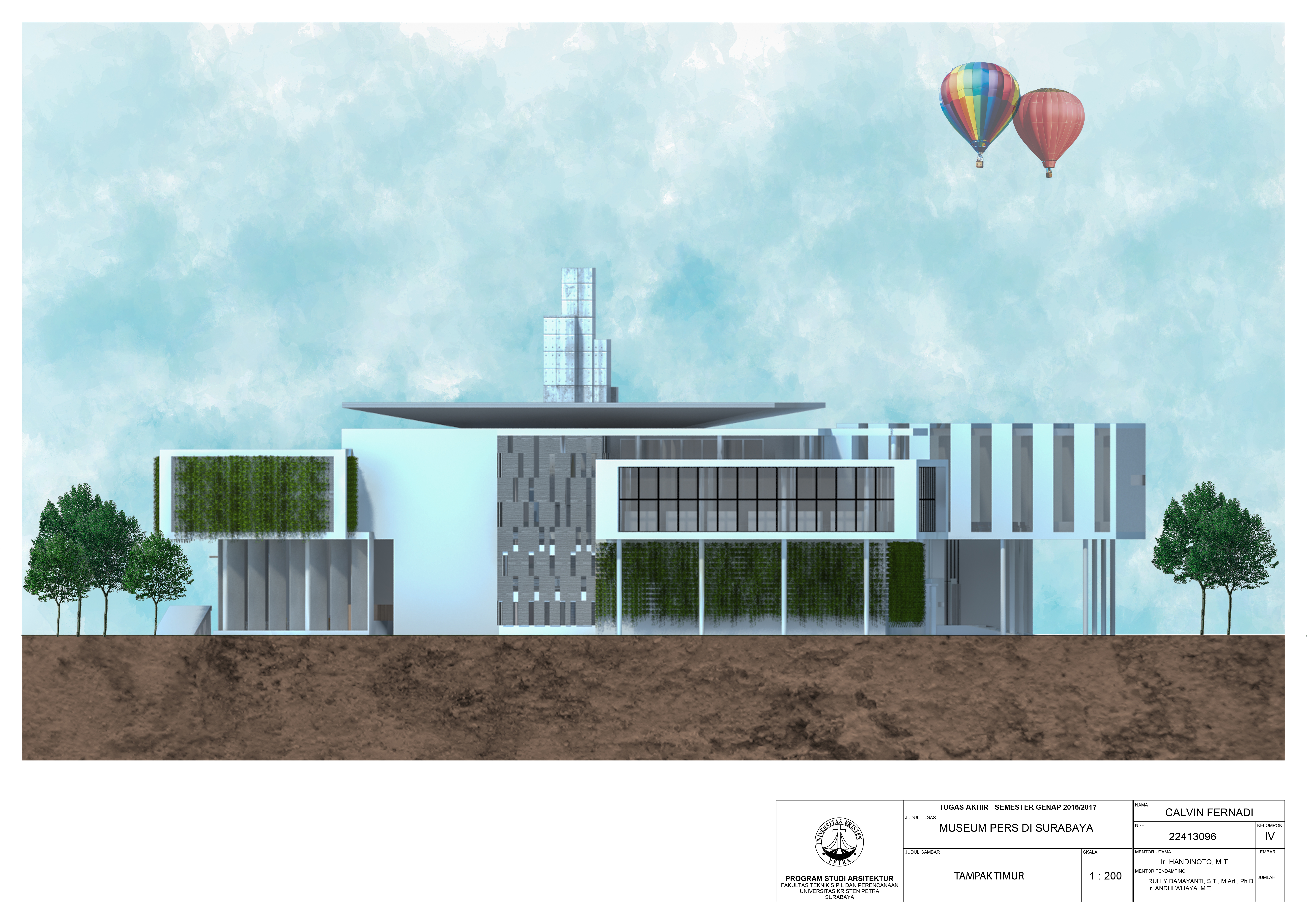 Museum Pers di Surabaya merupakan fasilitas yang memperkenalkan sejarah pers dari Indonesia hingga berbagai negara dan merupakan wadah bagi pengunjung untuk berinteraksi dan saling bertukar pikiran satu sama lain. Kota Surabaya sangat terkenal akan kisah perjuangan melawan penjajah dan di salah satu tempat di kota Surabaya juga terdapat sebuah monument pers yang merupakan simbol perjuangan masyarakat Surabaya, hal ini menjadi salah satu daya tarik bagi wisatawan untuk berkunjung. Museum Pers di Surabaya akan menjadi salah satu ikon kebangkitan Pers yang bersifat rekreatif dan edukatif. Museum ini akan dilengkapi fasilitas publik, yaitu exhibition hall, multifunction room, audiovisual, workshop, perpustakaan, foodcourt, dan ruang multimedia. Pendekatan simbolik digunakan untuk mengekspresikan sebuah kebangkitan pers terhadap berita hoax yang kian menyebar terhadap berbagai lapisan masyarakat. Suasana interior bangunan juga mengekspresikan karakter kebebasan layaknya pers itu sendiri melalui pendalaman karakter ruang sehingga pengunjung dapat mengenal dan memahami arti sebuah pers.