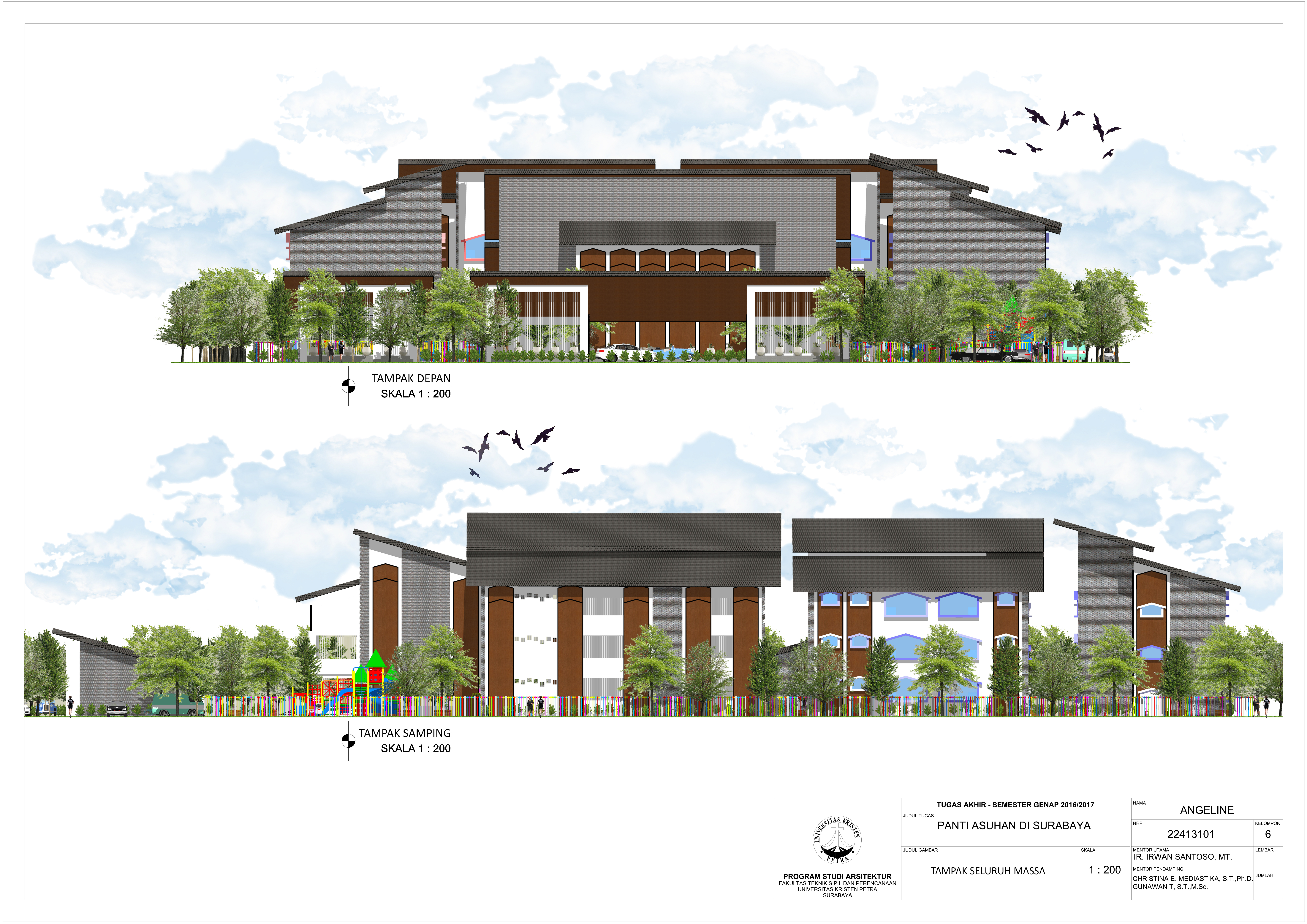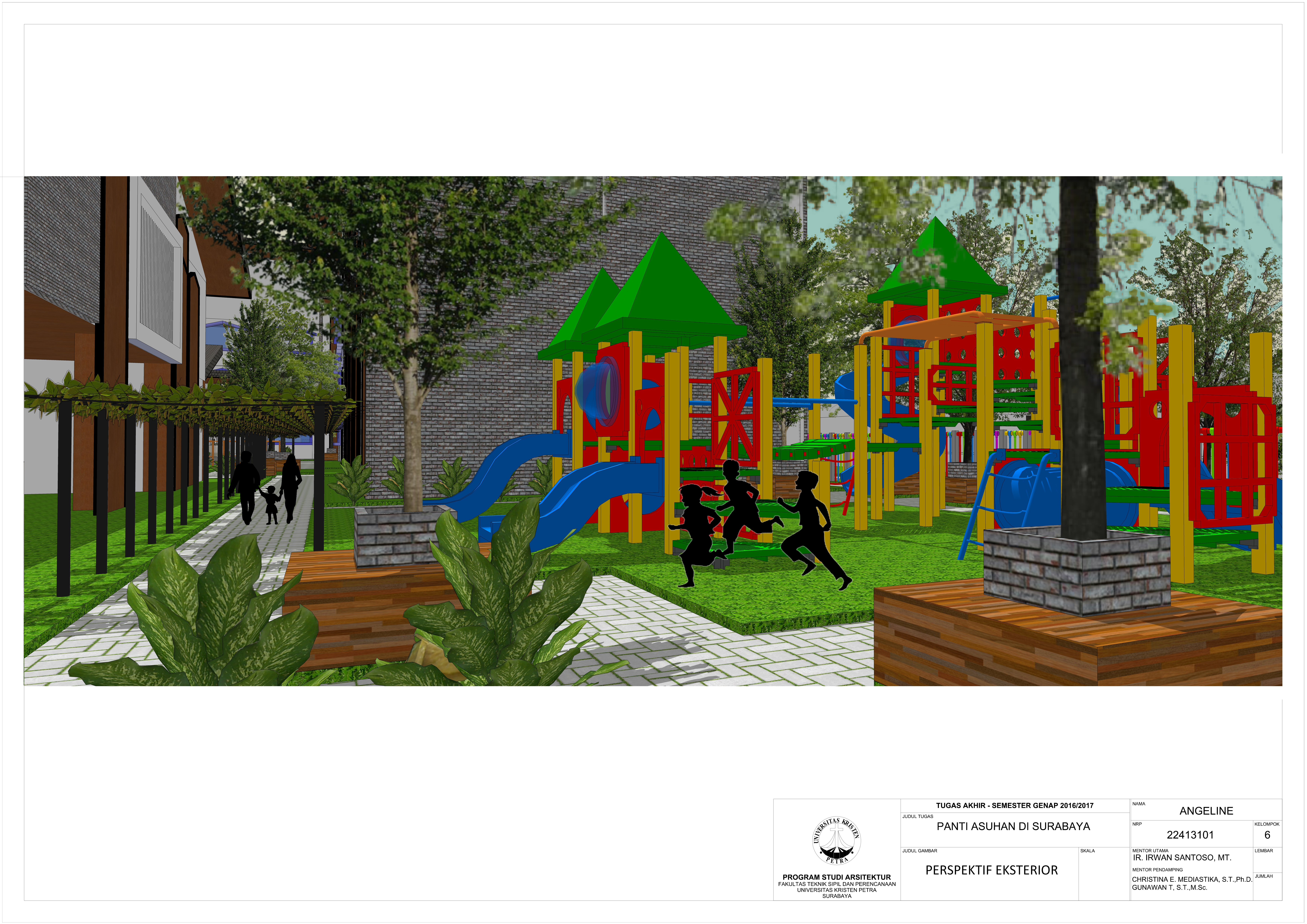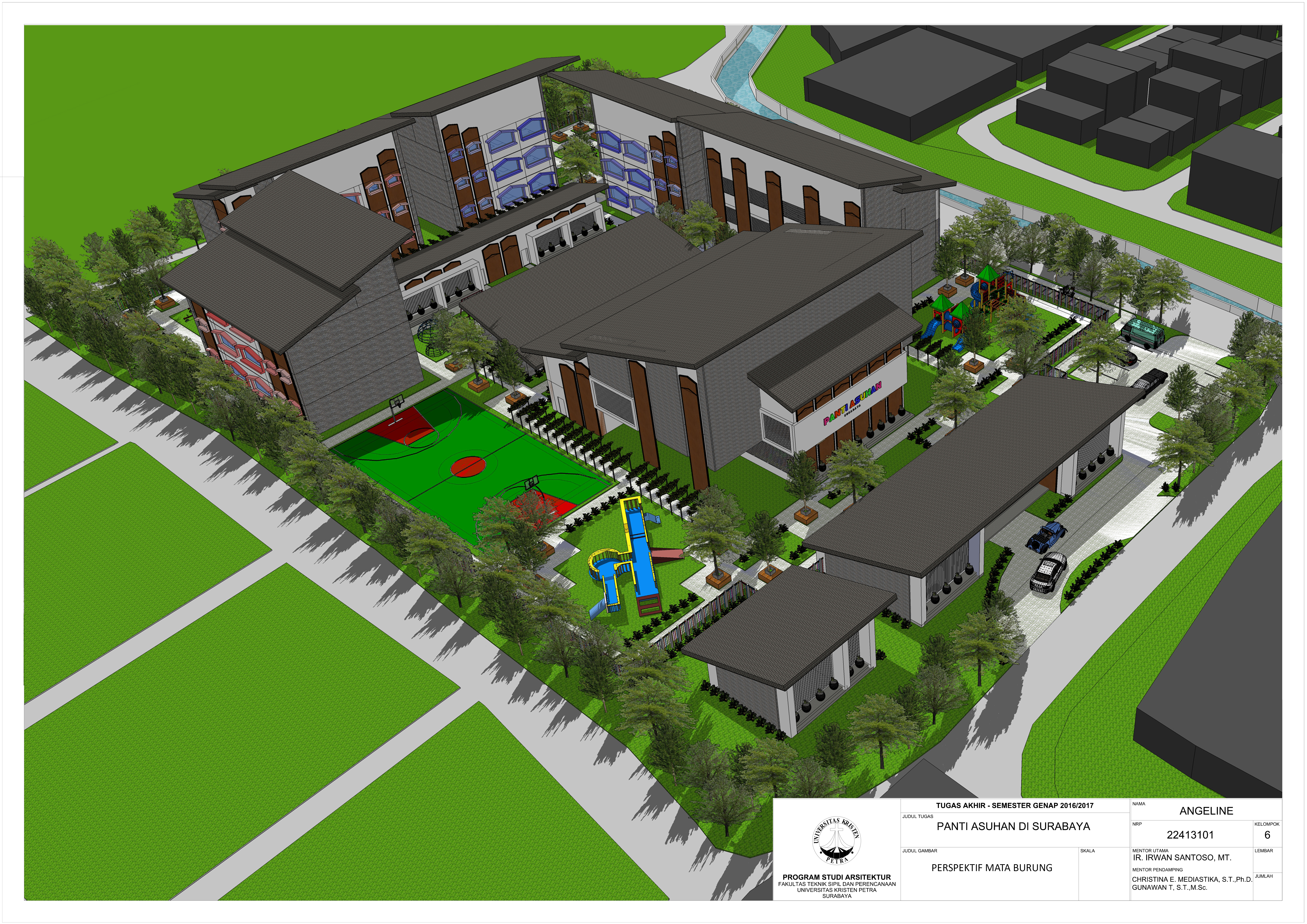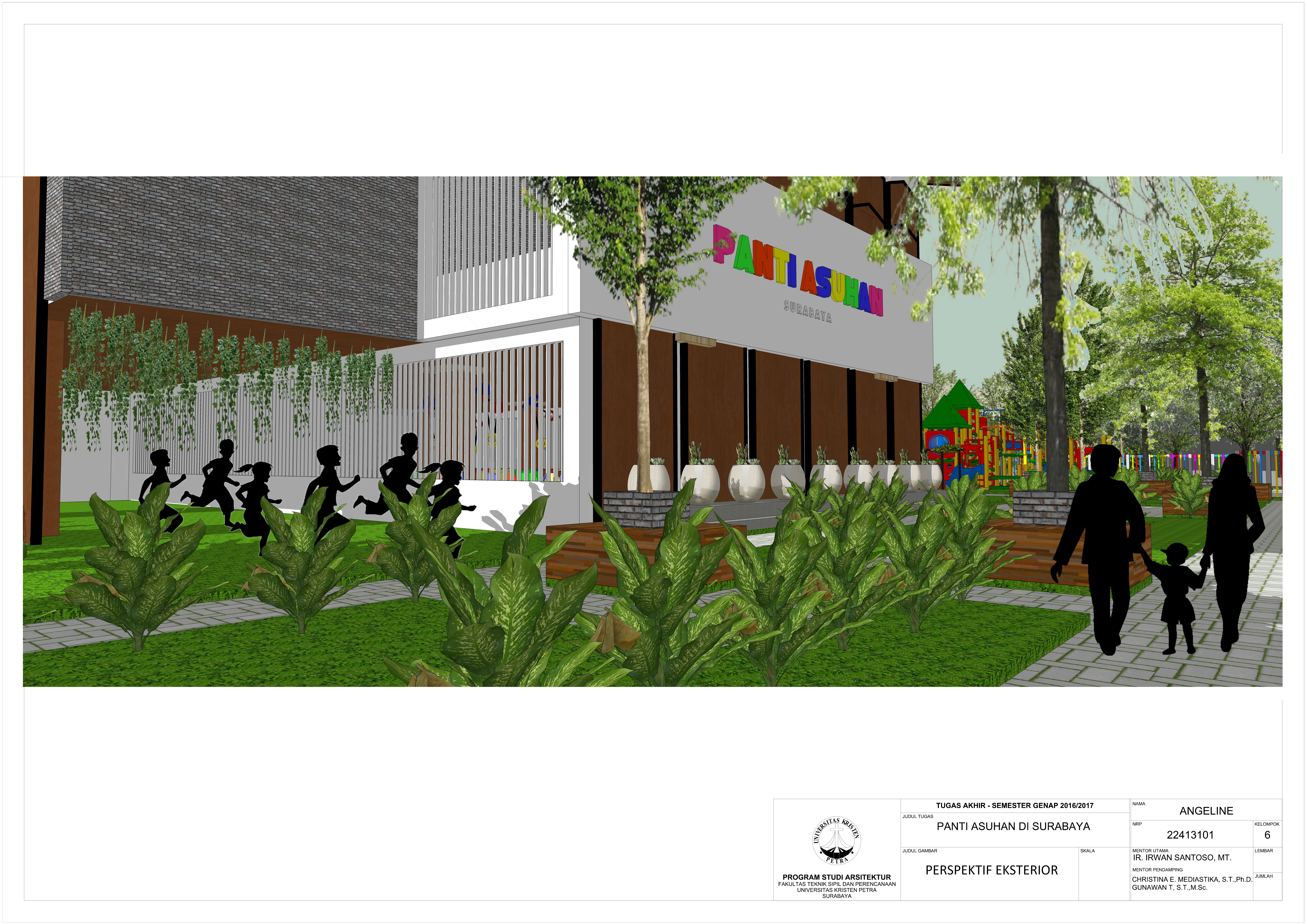 “Panti Asuhan di Surabaya” ini merupakan perancangan fasilitas yang bertujuan untuk memenuhi kebutuhan anak terlantar di Surabaya yang berusia 2 tahun hingga 18 tahun. Di Panti Asuhan ini, anak-anak akan dibimbing dan dididik berdasarkan iman Kristiani, dan juga membantu anak dalam memperoleh pendidikan yang baik dan memenuhi kebutuhan pokok sehari-hari sehingga dapat bertumbuh dan berjuang menjadi generasi penerus bangsa.