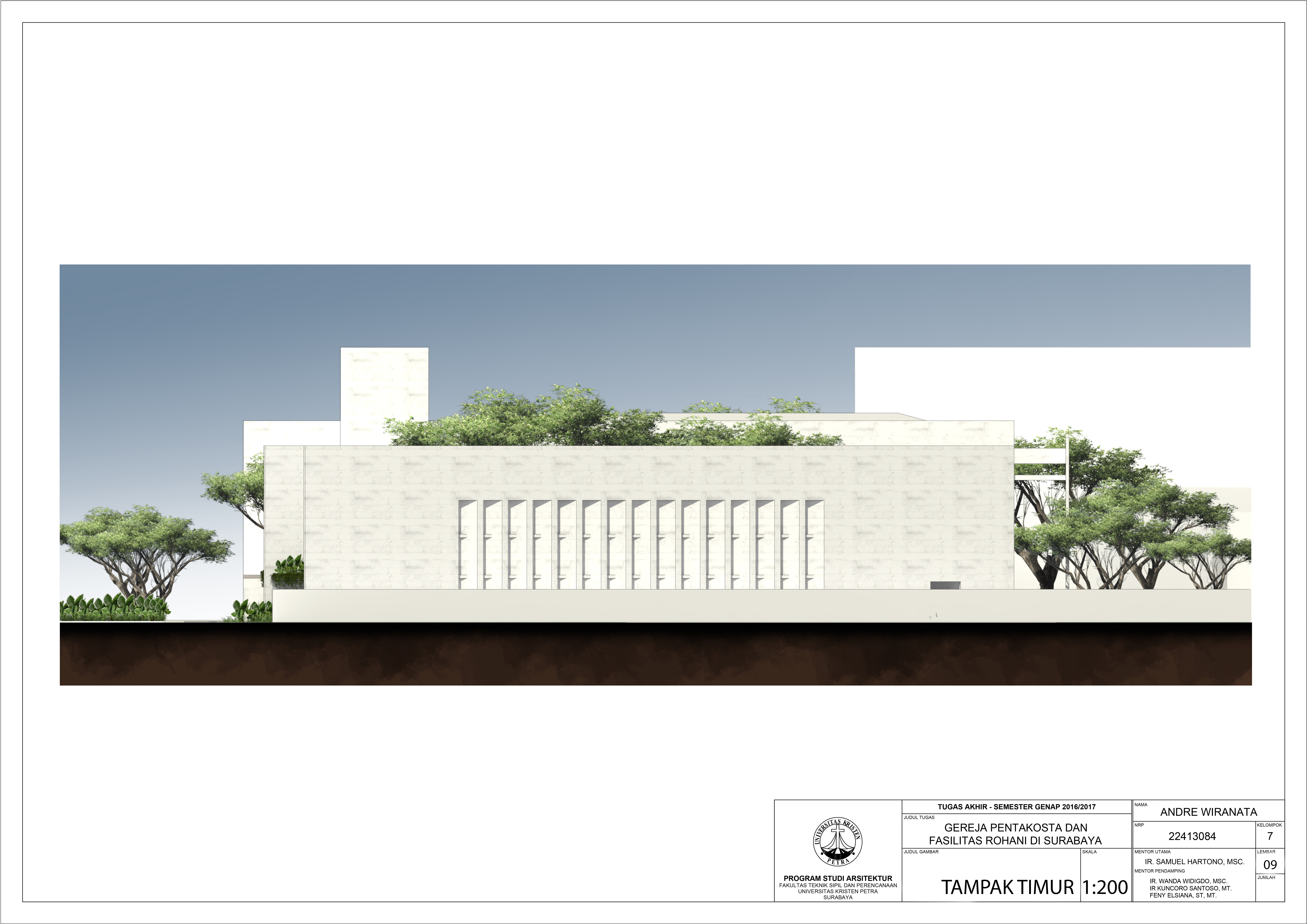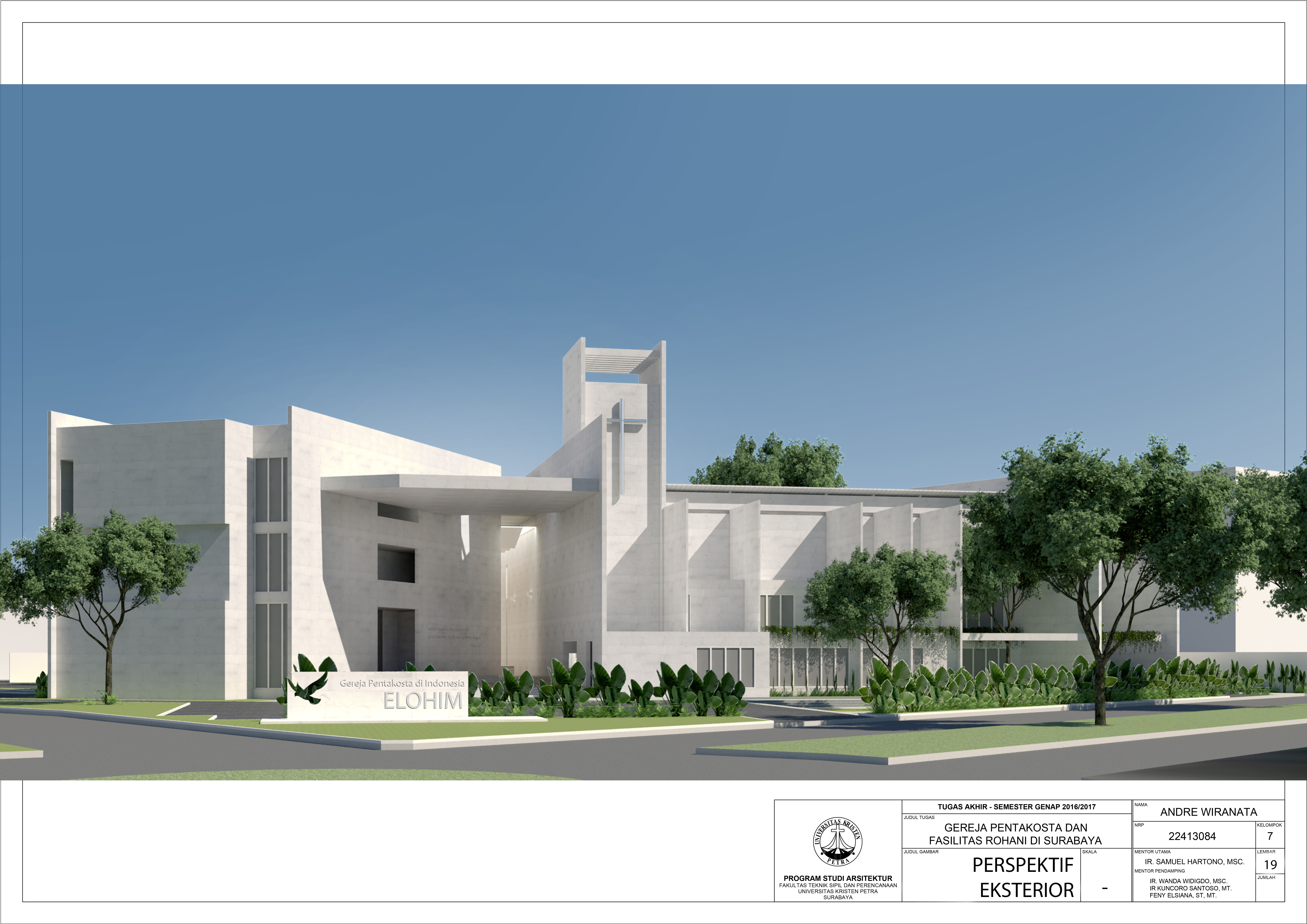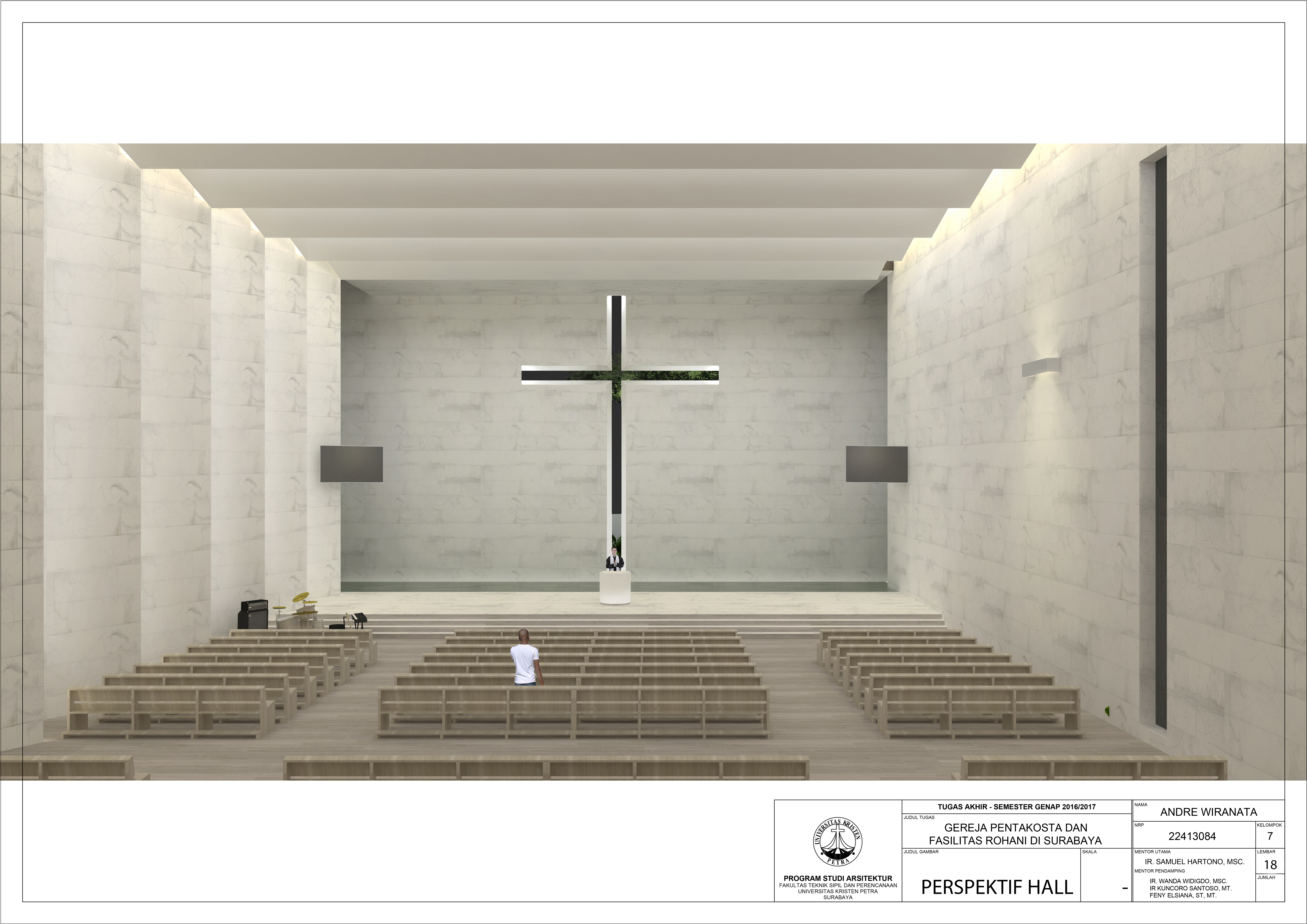 Gereja Pentakosta di Indonesia dan Fasilitas Kerohanian di Surabaya merupakan fasilitas gereja yang mewadahi penganut agama Kristen di kota besar yang ingin mengenal agama Kristen dan tidak dapat meninggalkan aktivitas kesehariannya, namun tetap dengan suasana tenang. Bangunan ini memiliki area beribadah untuk mewadahi kegiatan ibadah setiap hari dan juga area retret yang digunakan untuk kegiatan retret bagi penganut Kristen yang ingin mengenal agamanya, serta terdapat rumah pastorial untuk gembala gereja agar dapat melayani jemaat nya penuh waktu. Pendekatan simbolik untuk menciptakan ruang yang sesuai dengan firman Tuhan dan dapat dirasakan jemaatnya.