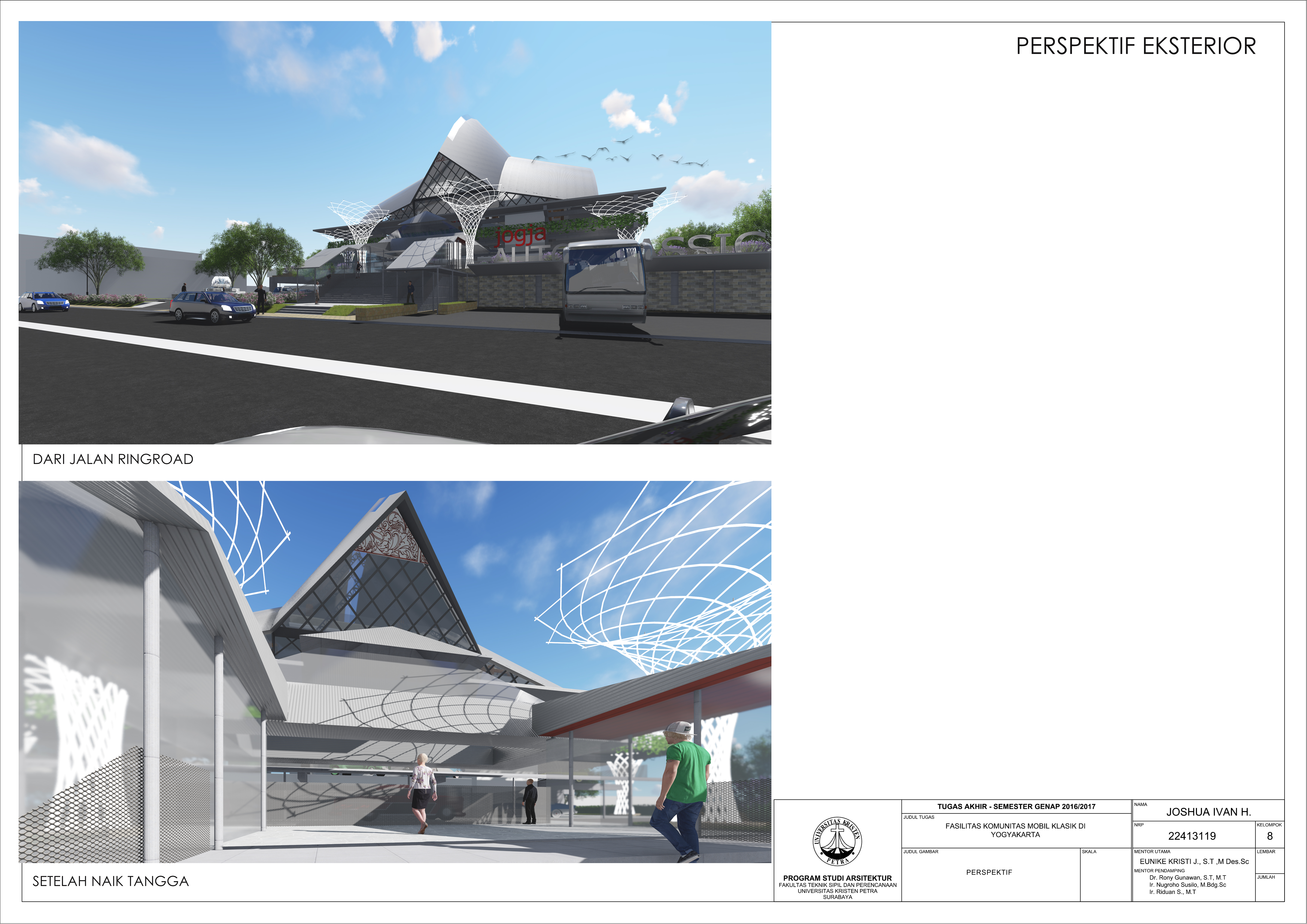 Fasilitas Komunitas Mobil Klasik di Yogyakarta merupakan fasilitas yang mewadahi berbagai aktifitas komunitas pecinta mobil klasik. Fasilitas ini berfungsi sebagai tempat memamerkan koleksi mobil klasik, sebagai wadah untuk saling berinteraksi dan bertukar pemikiran, dan sekaligus tempat perawatan dan penggantian suku cadang mobil klasik. Mengingat Kota Yogyakarta merupakan salah satu kota dengan aktifitas otomotif terbesar di Indonesia, dengan jumlah komunitas pecinta mobil klasik yang terbanyak, maka Yogyakarta dipilih sebagai lokasi perancangan. Diharapkan Fasilitas Komunitas Mobil Klasik ini dapat menjadi ikon kota Yogyakarta yang bersifat rekreatif dan edukatif. Fasilitas ini terdiri atas Galeri temporer, Galeri permanen, Toko souvenir, Bengkel reparasi, café, food court, dan amphitheatre. Pendekatan simbolik digunakan untuk mengekspresikan ciri khas dari mobil klasik kedalam bentuk dan ekspresi bangunan. Sedangkan pendalaman karakter ruang diaplikasikan sehingga suasana interior bangunan juga turut mengekspresikan karakter mobil klasik dan perilaku komunitas. Dengan demikian diharapkan pengunjung dapat lebih mengenal dan mengapresiasi mobil klasik.