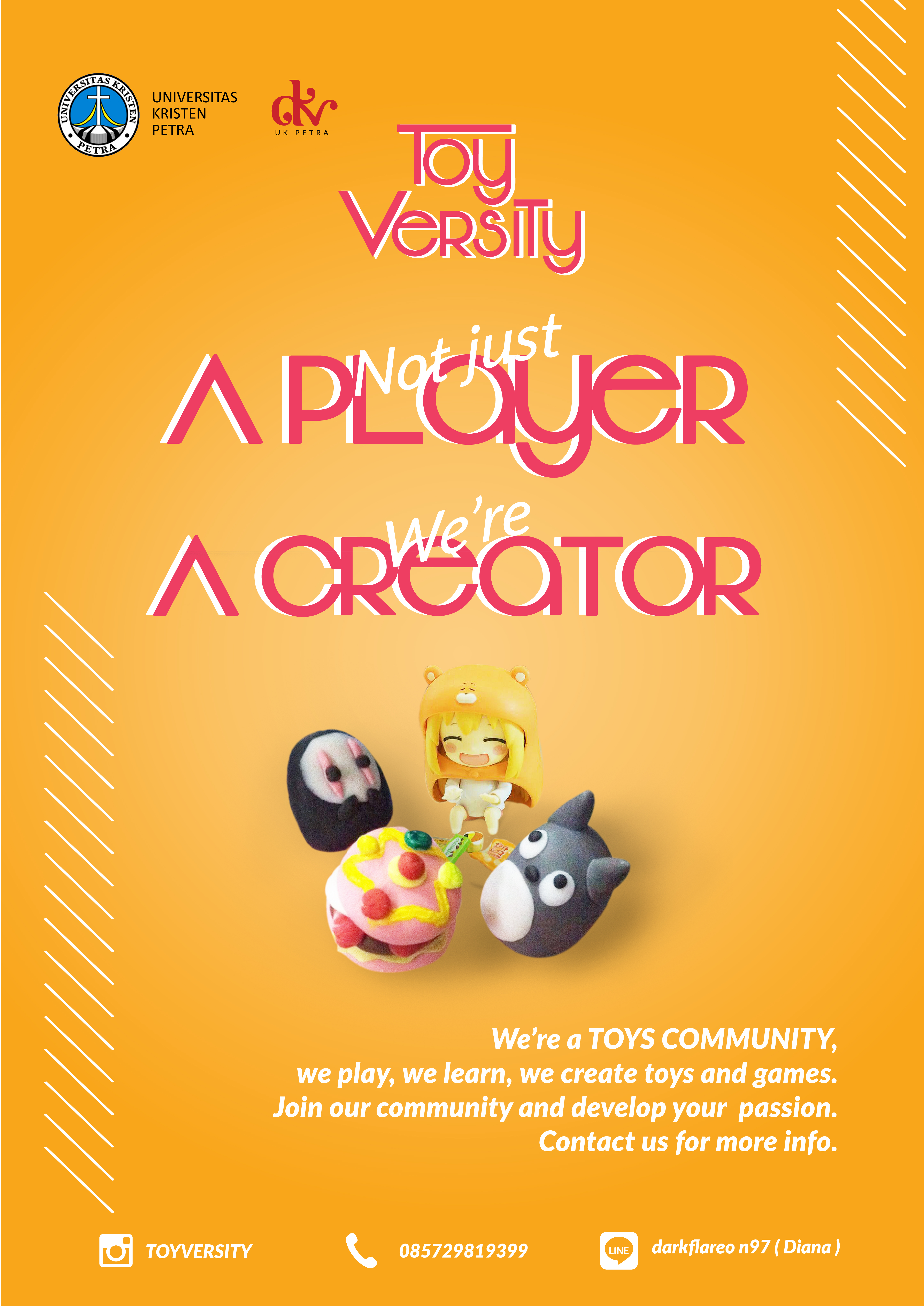 Desain Komunikasi Visual UK Petra mempromosikan komunitas yang menyukai mainan. Komunitas toys ini mengadakan pameran dalam rangka mempromosikan komunitas ini. Pameran diadakan di selasar gedung P. lantai 1.