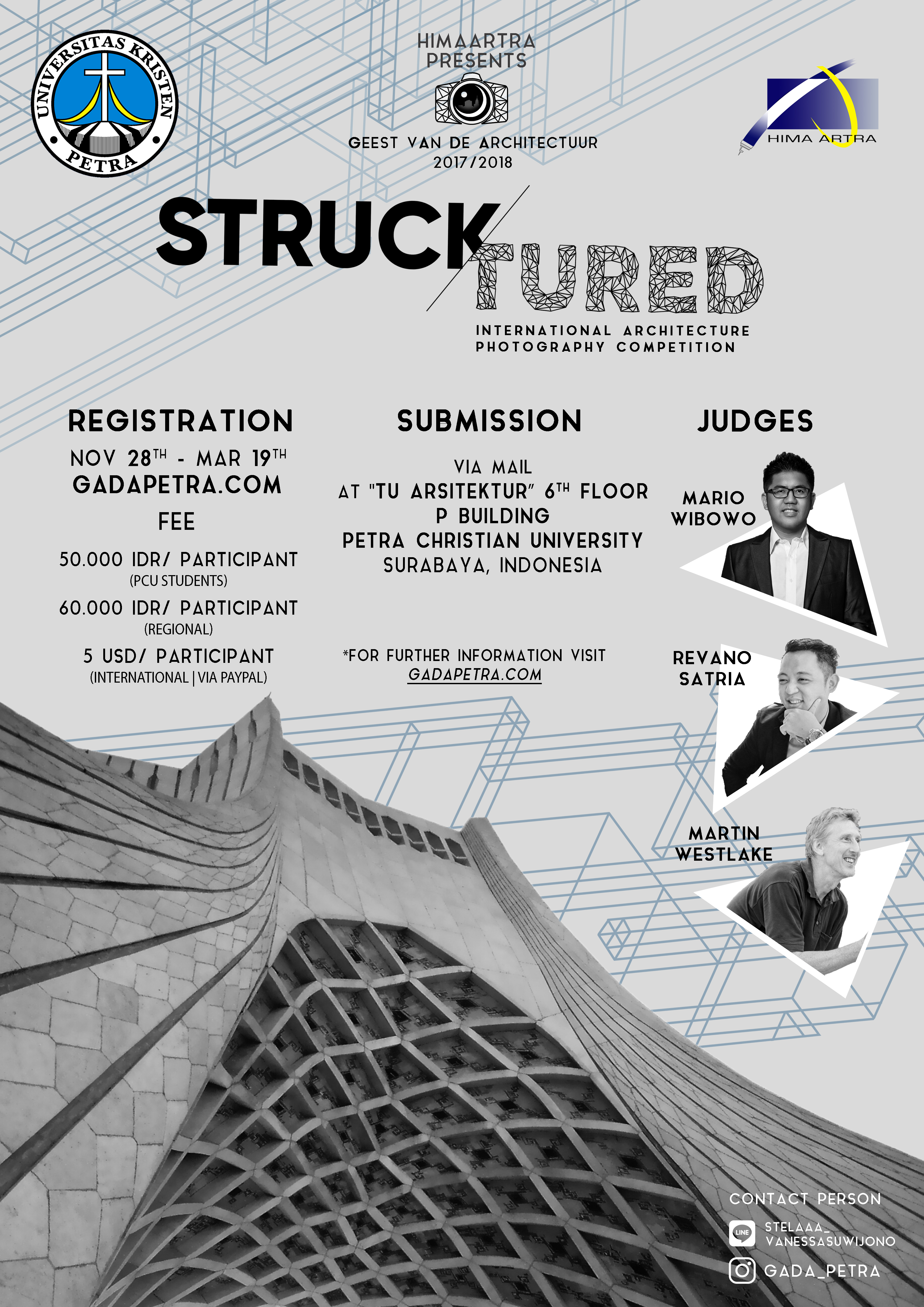 Program Studi Teknik Arsitektur Universitas Kristen Petra Surabaya, mengadakan kompetisi fotografi tingkat international. Lomba ini bertemakan "Strucktured", pendaftaran dibuka pada 28 November 2017 hingga 19 Maret 2018.