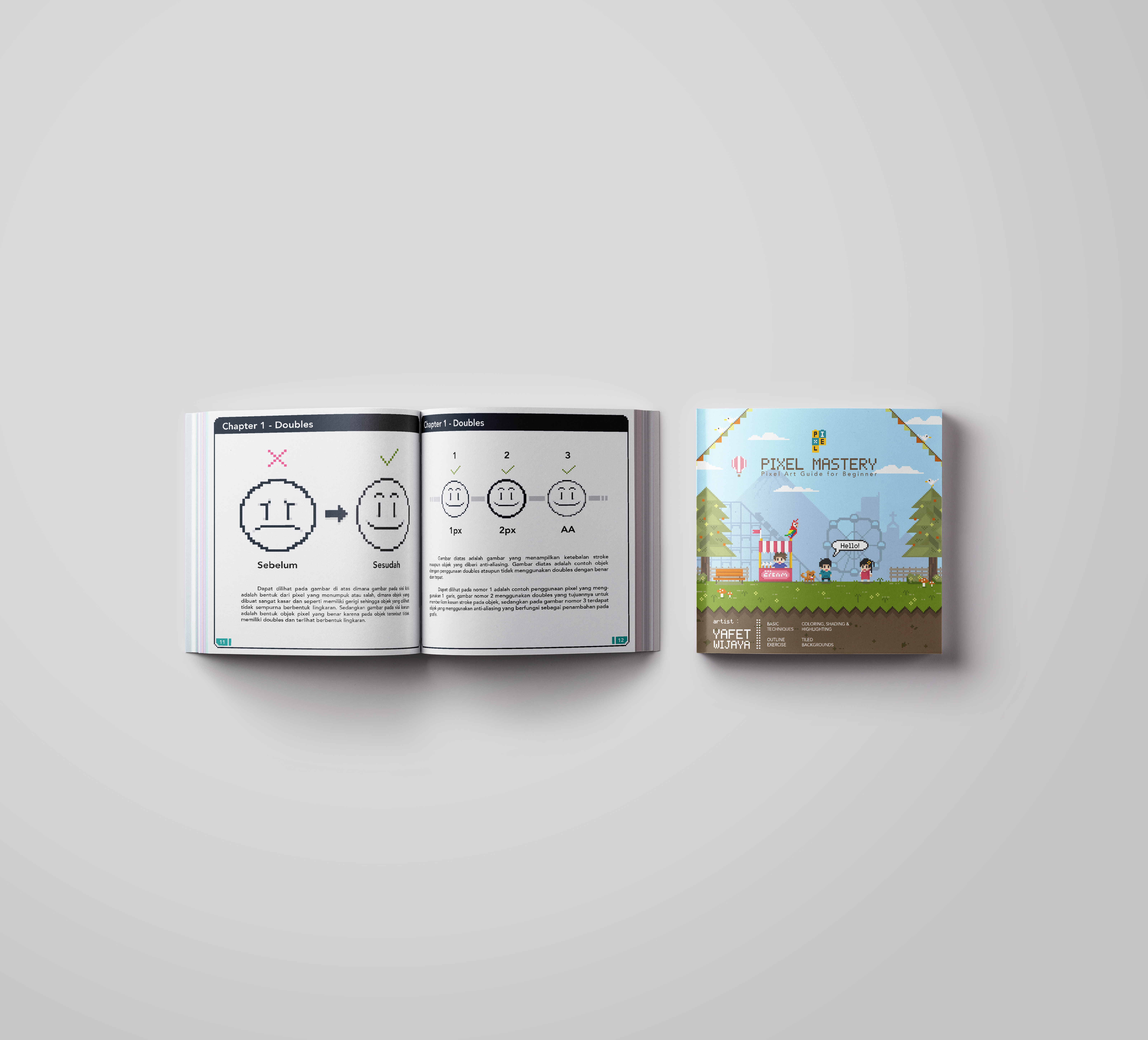 Pixel art adalah sebuah karya digital yang sudah ada sejak lama, pixel art sendiri terkenal melalui media video game seperti Contra, Super Mario World, Donkey Kong, Bomberman dan masih banyak lagi lainnya, namun kepopuleran pixel art mulai redup dan tidak begitu diminati oleh kalangan muda, mereka lebih memilih bermain atau menikmati visual 3 dimensi yang memang memiliki visual yang lebih realistis dan bagus. Oleh karena itu, tujuan buku ini adalah untuk tetap membangun visual pixel art yang berisikan panduan membuat pixel art.