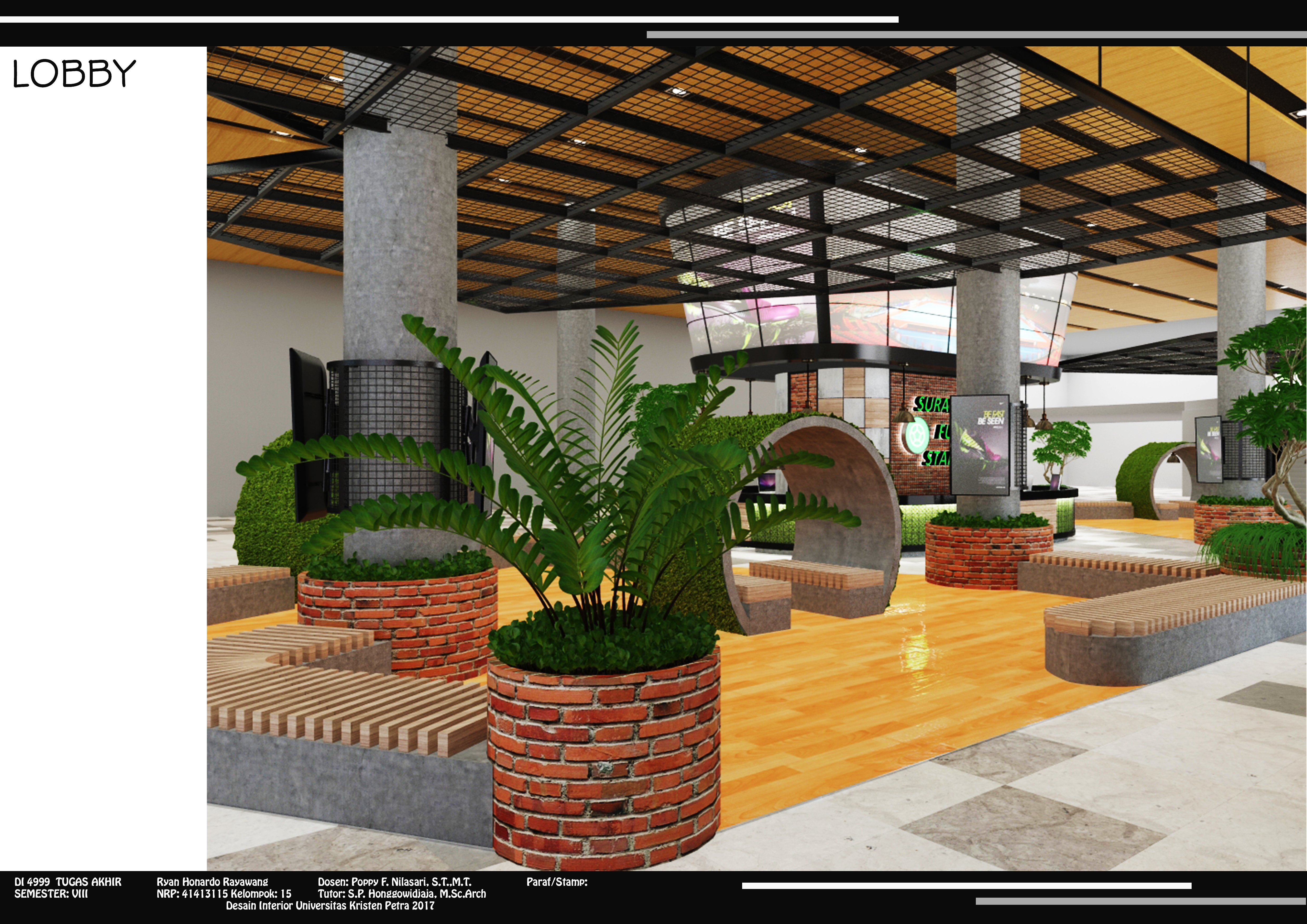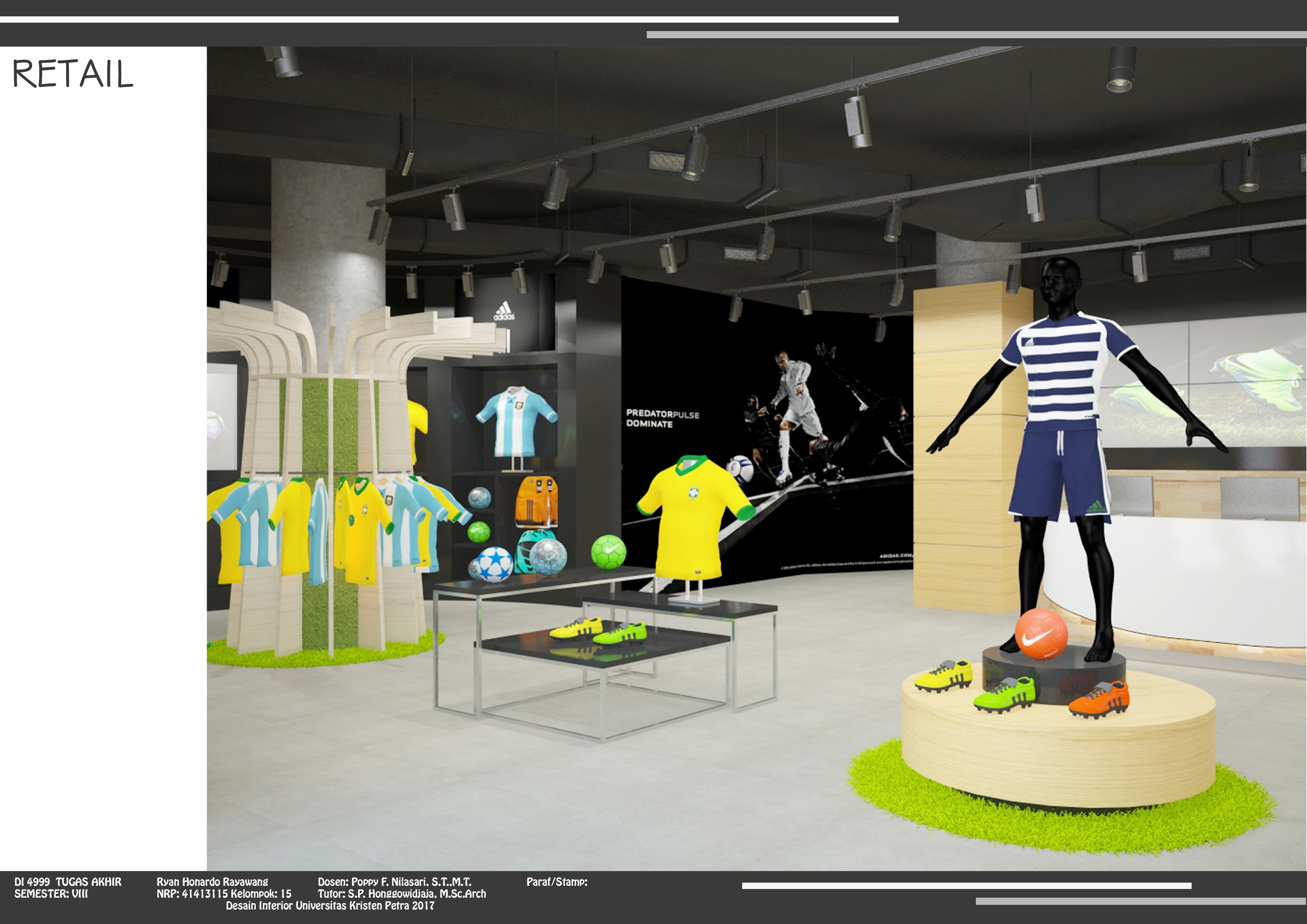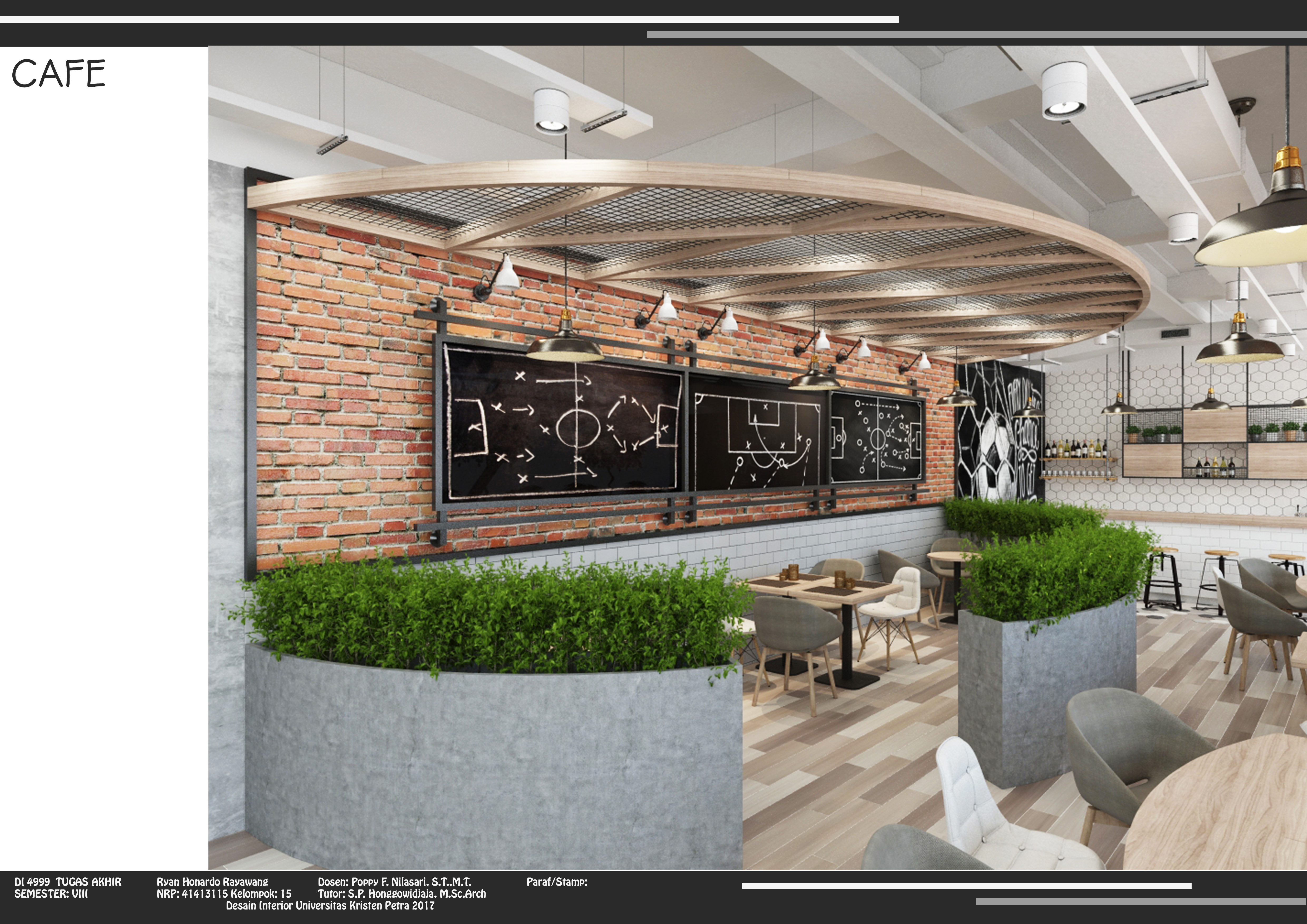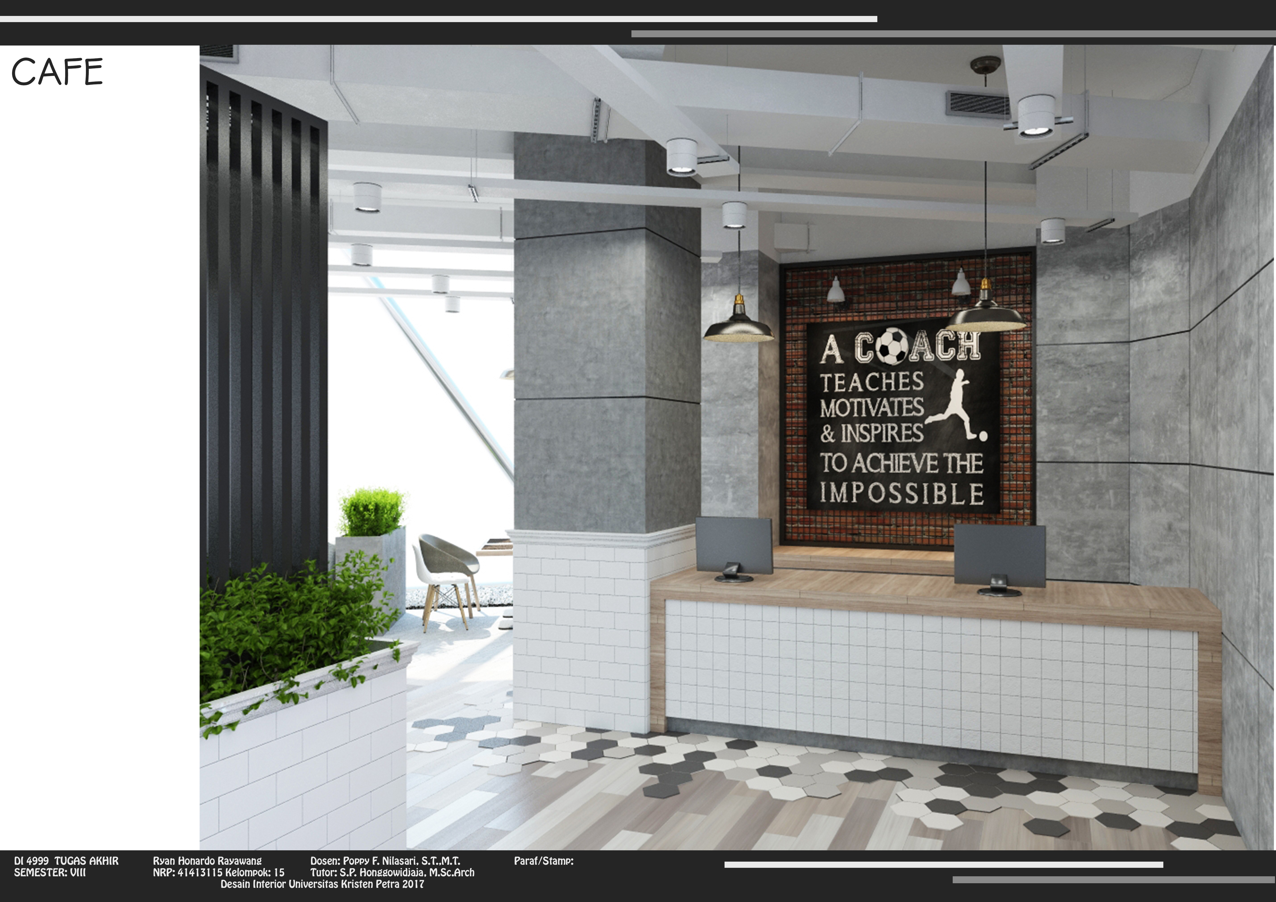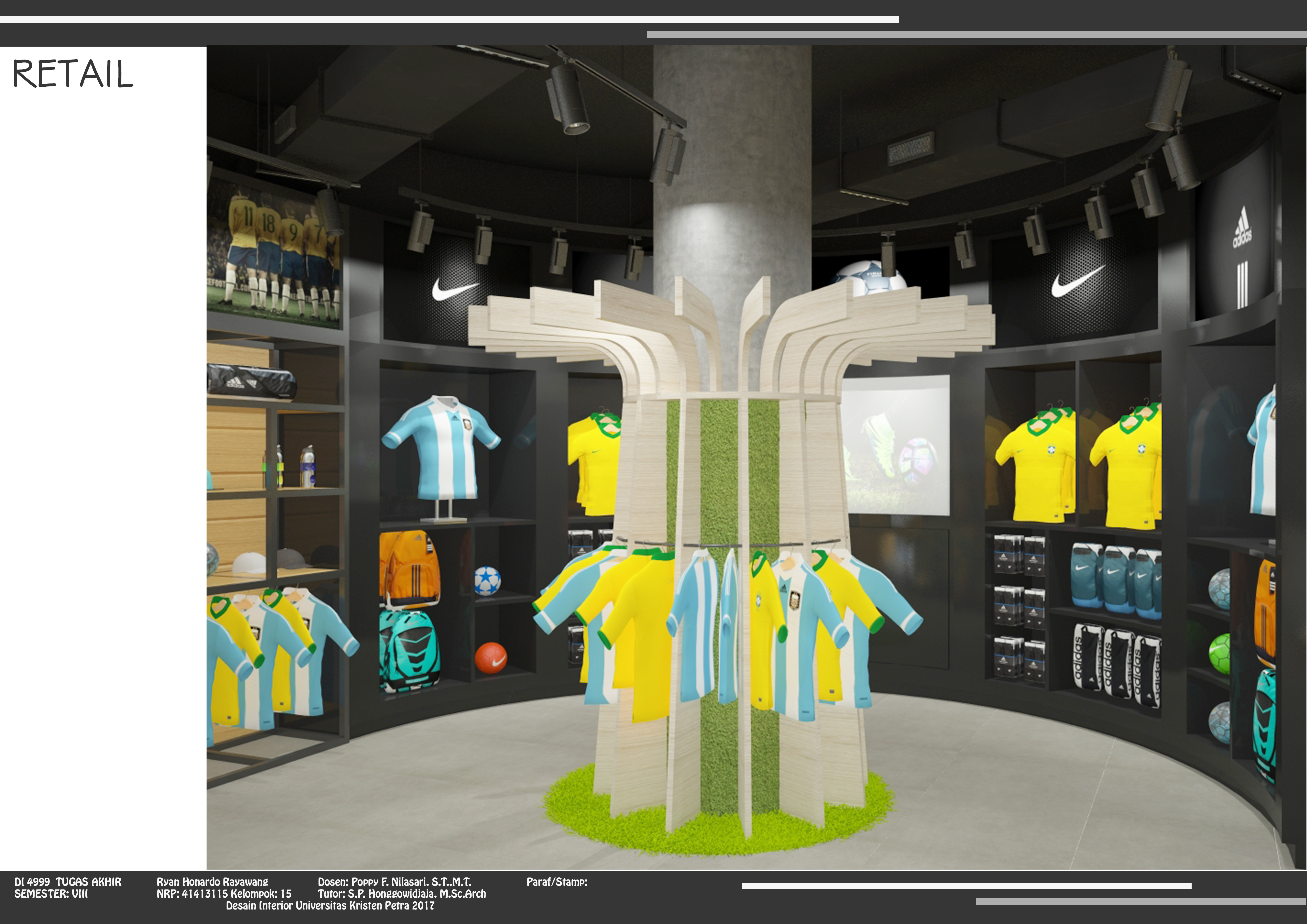 Perancangan Interior Lobby, Café dan Retail Stadion Futsal di Surabaya didasarkan pada realita keadaan olahraga futsal di Indonesai di mana olahraga ini sudah cukup popular di masyarakat namun hanya sebatas bermain dengan teman dan mengisi waktu pada saat malam minggu. Kenyataannya futsal masih kurang terekspos dari segi kompetisi professional maupun prestasi dari Timnas Indonesia yang memiliki potensi yang cukup baik dengan masuk peringkat 10 besar di Asia. Dengan fakta ini sudah seharusnya olahraga futsal mendapatkan perhatian dan dukungan yang lebih dari masyarakat, salah satunya dengan pembangunan Stadion Futsal. Selanjutnya, Stadion Futsal, dapat berkesempatan menjadi ikon dari suatu kota dan dapat menarik minat masyarakat perkotaan terhadap futsal. Perancangan ini bertujuan sebagai fasilitas pendukung stadion agar dapat menyelenggarakan kompetisi hingga tingkat international dan meningkatkan antusias masyarakat terdapat futsal karena dengan bertambahnya dukungan masyarakat diharapkan dapat meningkatkan prestasi dari Timnas Futsal Indonesia.