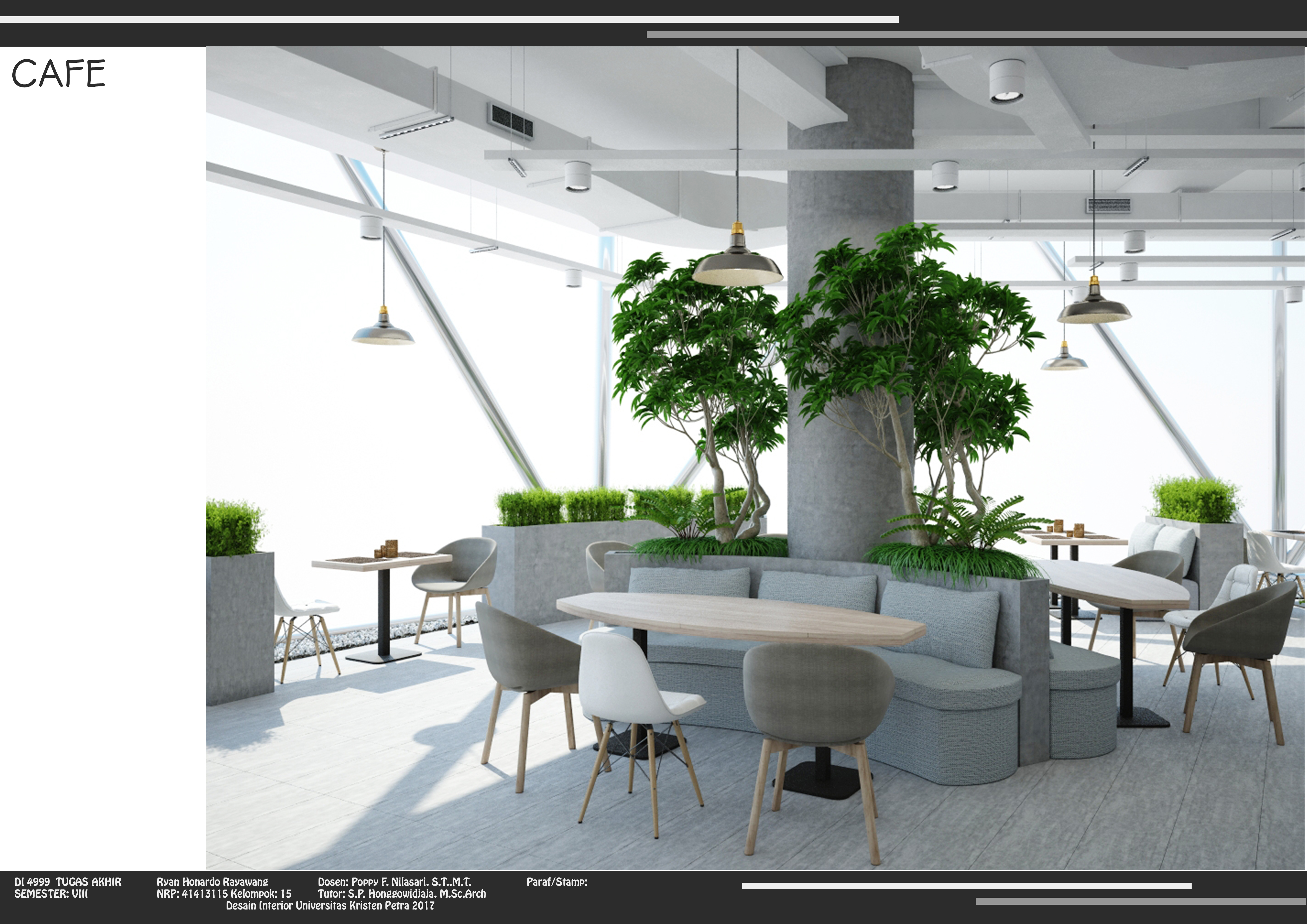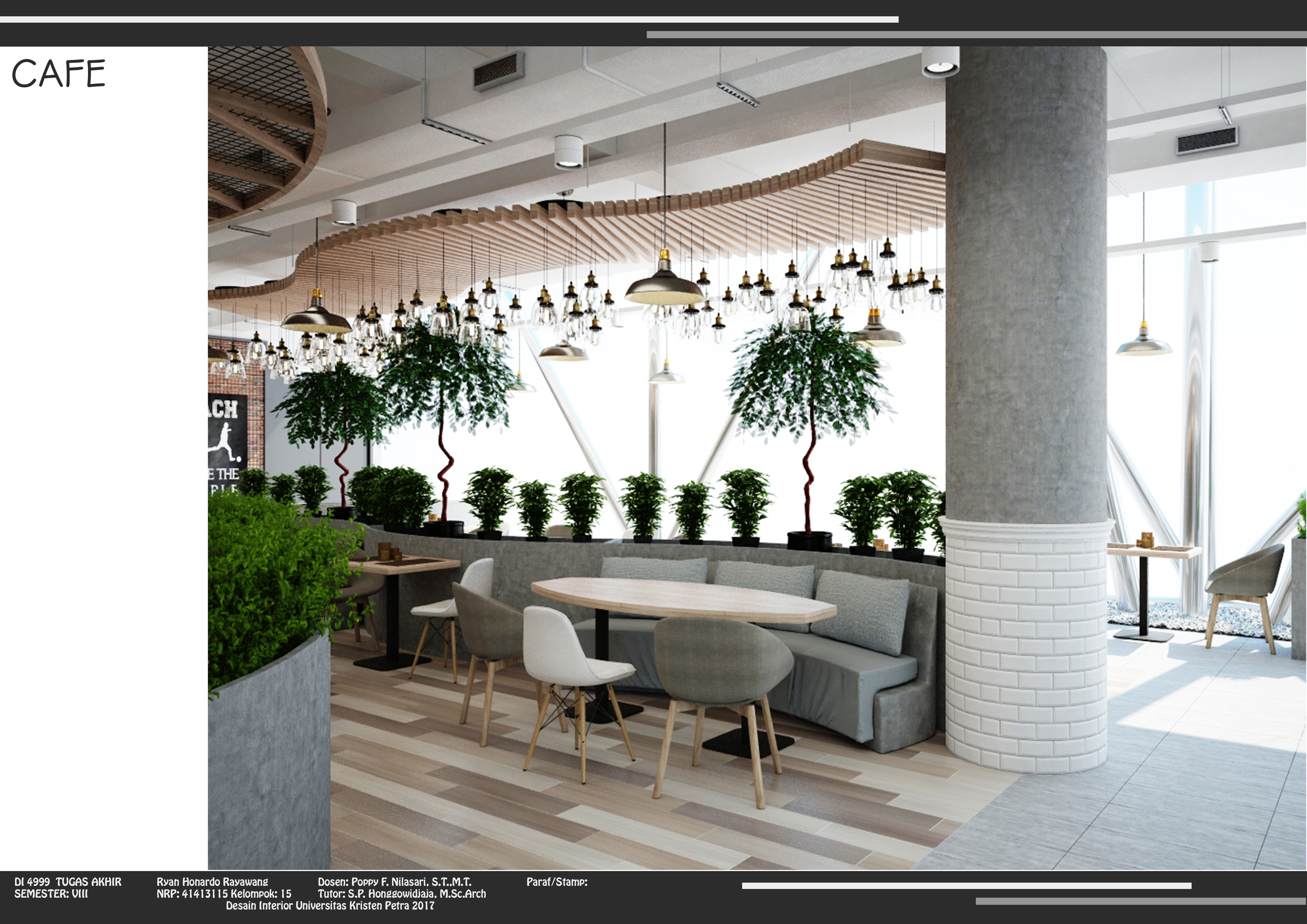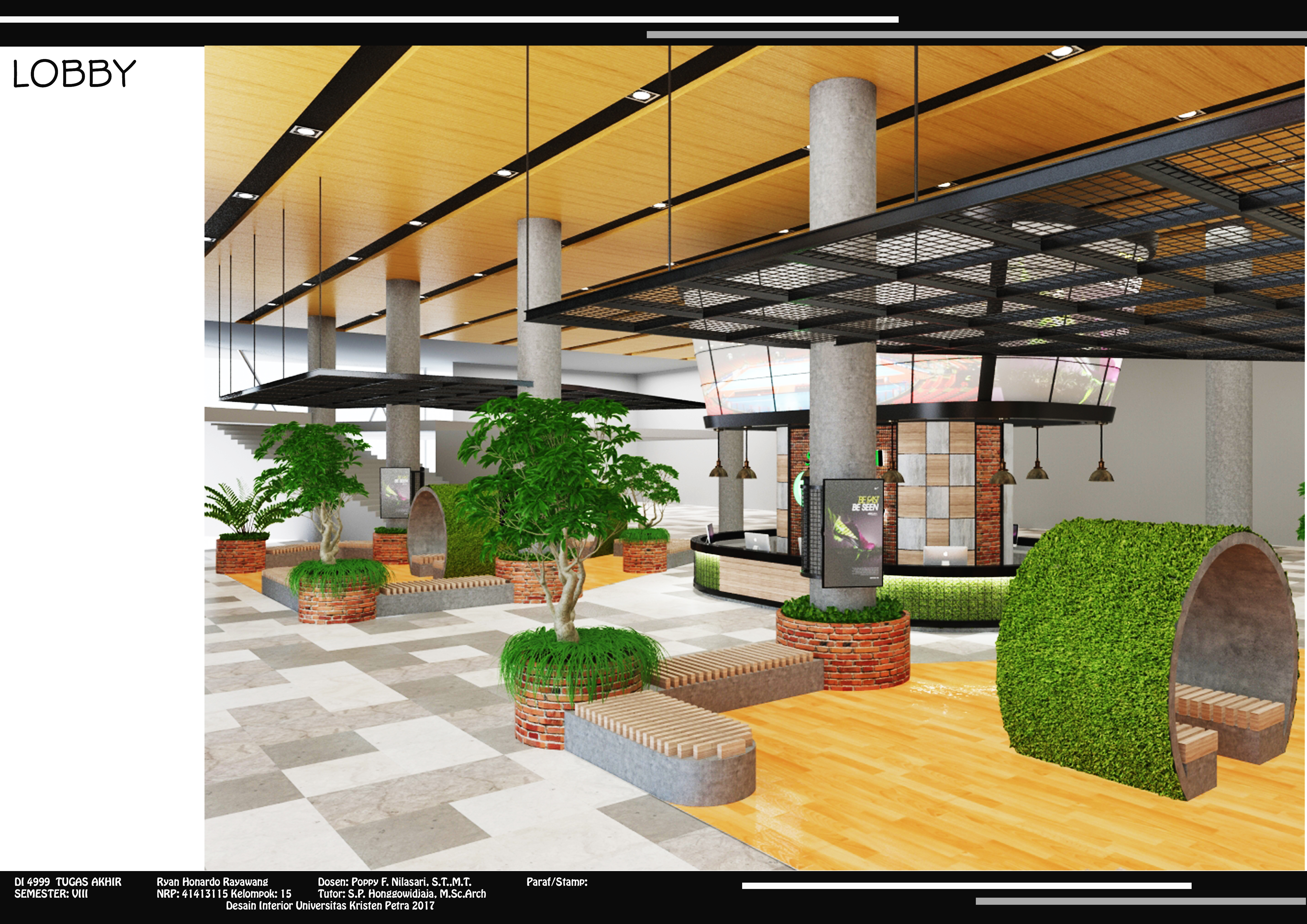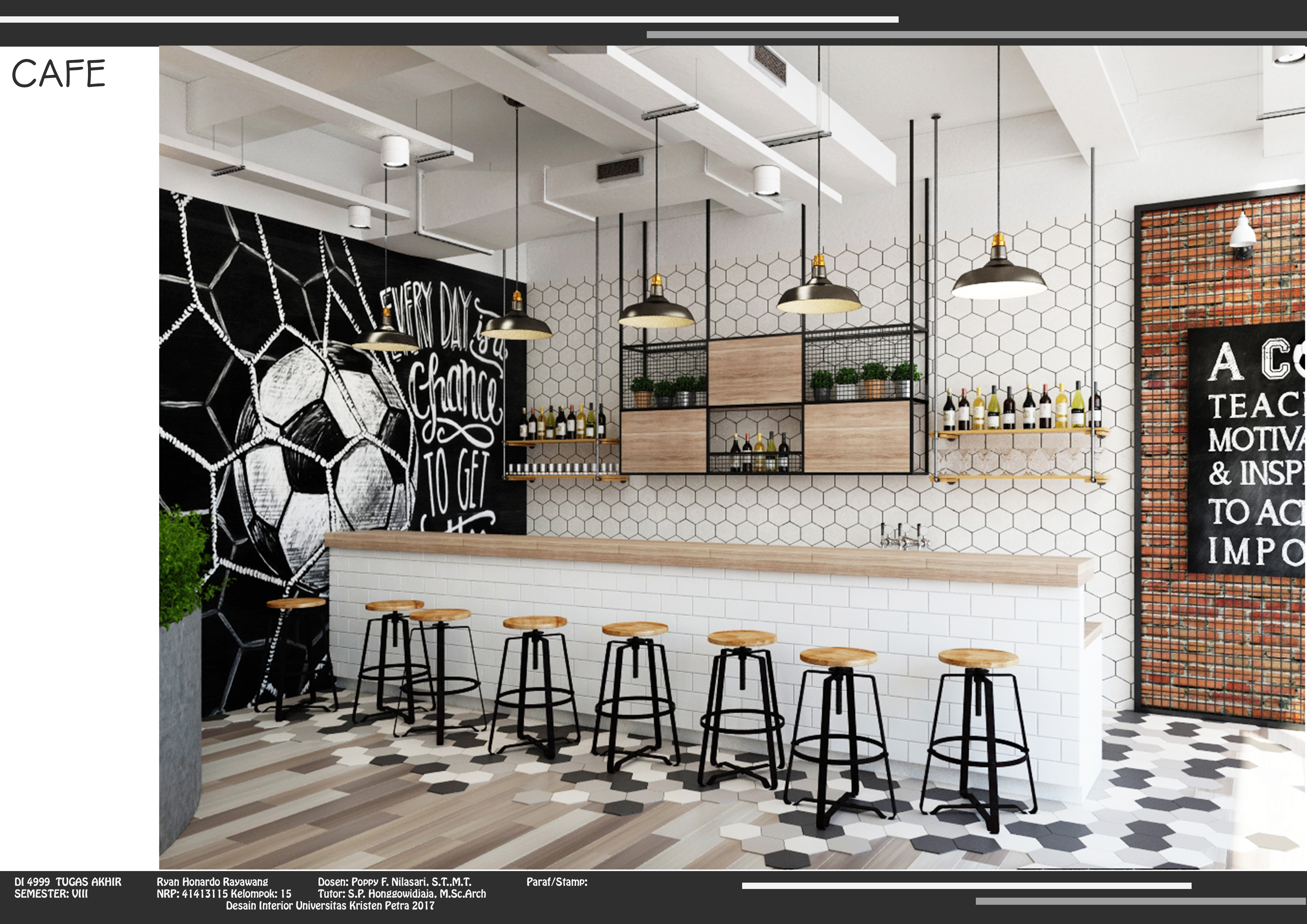 Perancangan Interior Lobby, Café dan Retail Stadion Futsal di Surabaya didasarkan pada realita keadaan olahraga futsal di Indonesai di mana olahraga ini sudah cukup popular di masyarakat namun hanya sebatas bermain dengan teman dan mengisi waktu pada saat malam minggu. Kenyataannya futsal masih kurang terekspos dari segi kompetisi professional maupun prestasi dari Timnas Indonesia yang memiliki potensi yang cukup baik dengan masuk peringkat 10 besar di Asia. Dengan fakta ini sudah seharusnya olahraga futsal mendapatkan perhatian dan dukungan yang lebih dari masyarakat, salah satunya dengan pembangunan Stadion Futsal. Selanjutnya, Stadion Futsal, dapat berkesempatan menjadi ikon dari suatu kota dan dapat menarik minat masyarakat perkotaan terhadap futsal. Perancangan ini bertujuan sebagai fasilitas pendukung stadion agar dapat menyelenggarakan kompetisi hingga tingkat international dan meningkatkan antusias masyarakat terdapat futsal karena dengan bertambahnya dukungan masyarakat diharapkan dapat meningkatkan prestasi dari Timnas Futsal Indonesia.