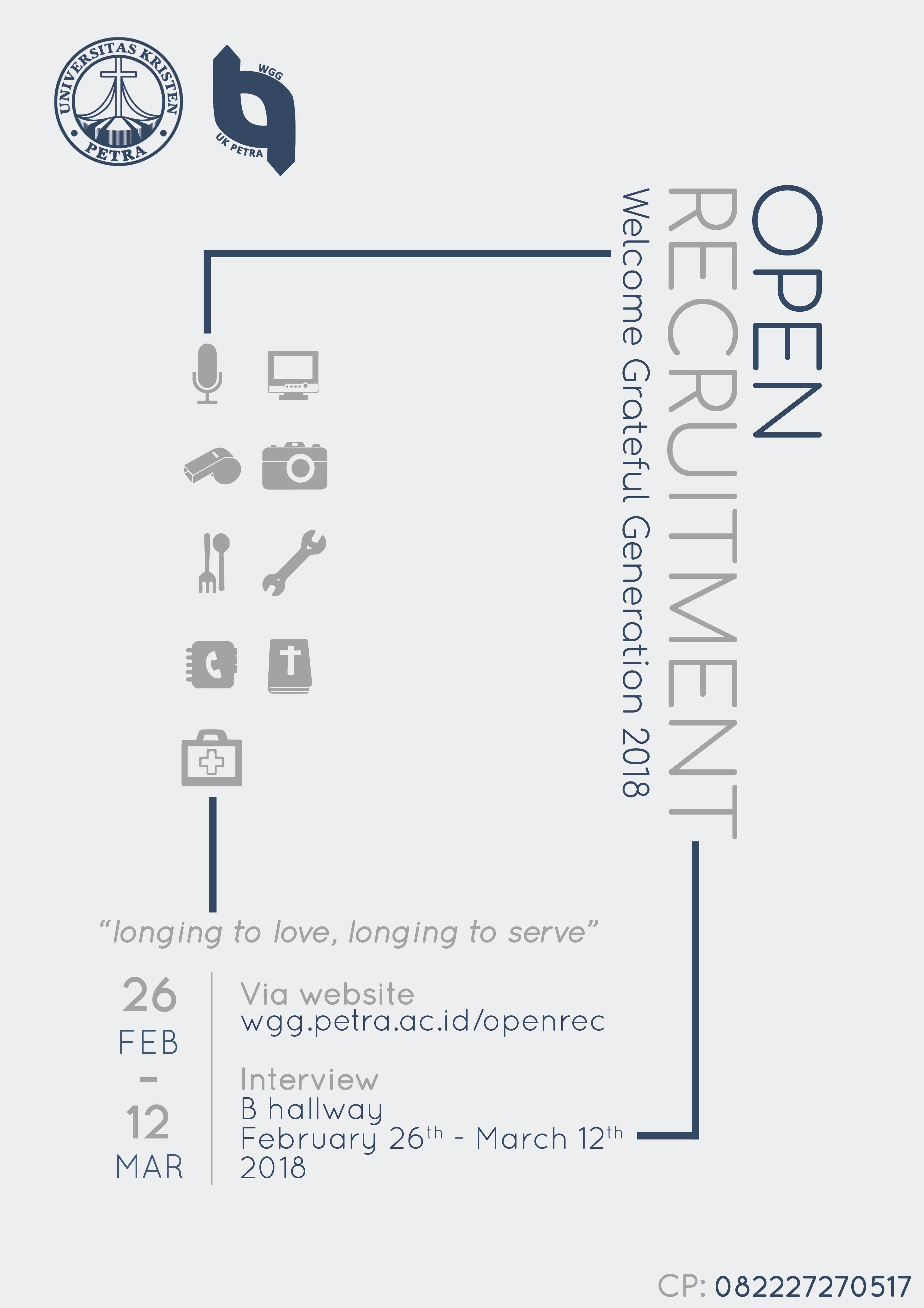 Panitia WGG Universitas Kristen Petra membuka kesempatan bagi mahasiswa UK Petra Surabaya untuk terlibat dalam kepanitiaan ini. Pendaftaran dibuka pada tanggal 26 Februari 2018 hingga 12 Maret 2018.