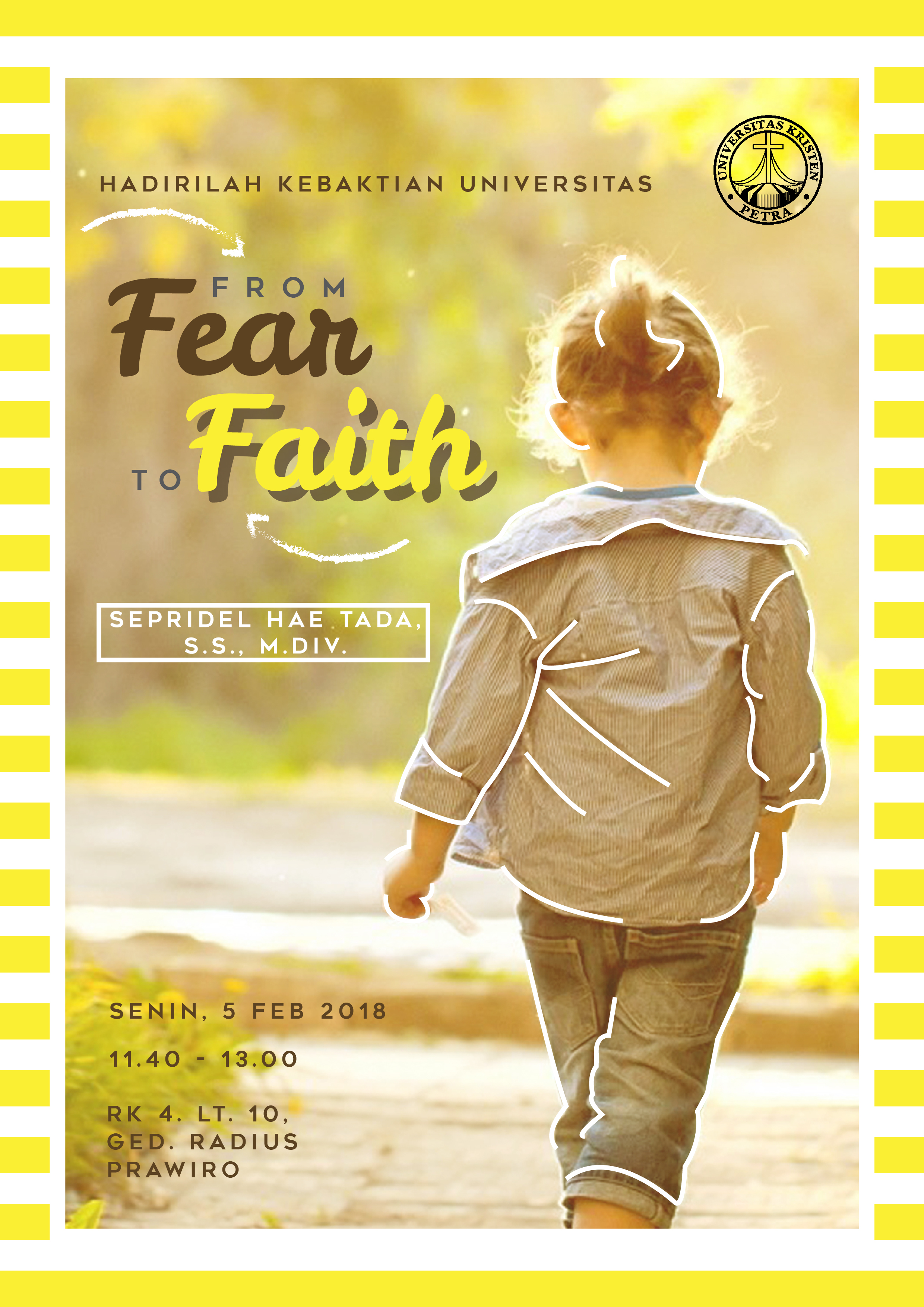 Universitas Kristen Petra melalui Pusat Kerohanian mengundang seluruh civitas UK Petra untuk hadir dalam Kebaktian Universitas pada tanggal 05 Februari 2014. Dengan menghadirkan pembicara Sepridel Hae Tada kebaktian kali ini mengangkat tema "From fear to faith" bertempat di RK IV gedung Radius Prawiro.