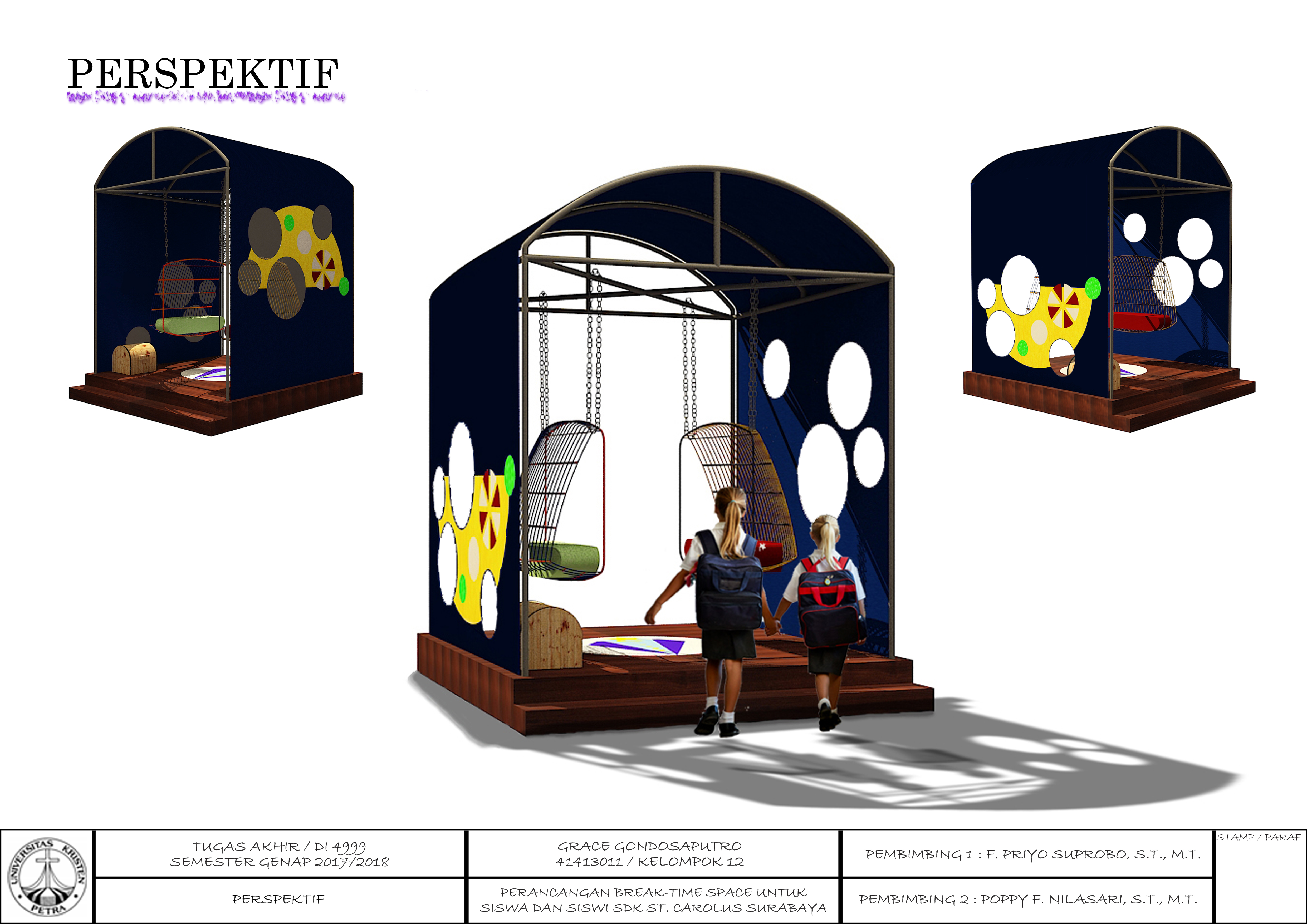 Social gap menjadi fenomena sosial yang tidak dapat dipisahkan dari kehidupan bermasyarakat, termasuk di dalam lingkungan SDK Santo Carolus Surabaya. Adanya kesenjangan sosial yang terjadi antar tingkatan seakan telah mendarah daging dalam diri para siswa, di mana siswa-siswi junior merasa takut dengan siswa-siswi senior. Fenomena ini menyebabkan siswa-siswi, khususnya siswa-siswi kelas kecil, tidak dapat berinteraksi dengan maksimal ketika jam istirahat. Dengan demikian, dibutuhkan sebuah solusi untuk memperkecil dampak dari social gap tersebut. Solusi ini dianggap lebih diperlukan daripada solusi untuk menghilangkan social gap. Sebab, social gap telah mengakar dalam kehidupan bermasyarakat sehingga akan sangat sulit menemukan solusi untuk itu. Perancangan ini dilakukan dengan menggunakan metode Design Thinking yang dipopulerkan oleh Tim Brown selaku CEO dari IDEO. Metode ini memiliki 3 tahapan besar yaitu inspiration, ideation dan implementation. Perancangan ini menghasilkan sebuah desain yang disebut dengan Break-time Space. Break-time Space merupakan sebuah area istirahat yang dapat digunakan sebagai tempat berinteraksi, bermain dan makan. Dengan dihasilkannya break-time space, diharapkan dampak dari social gap dapat berkurang sehinga interaksi siswa-siswi dengan rekan dan lingkungannya dapat lebih maksimal.