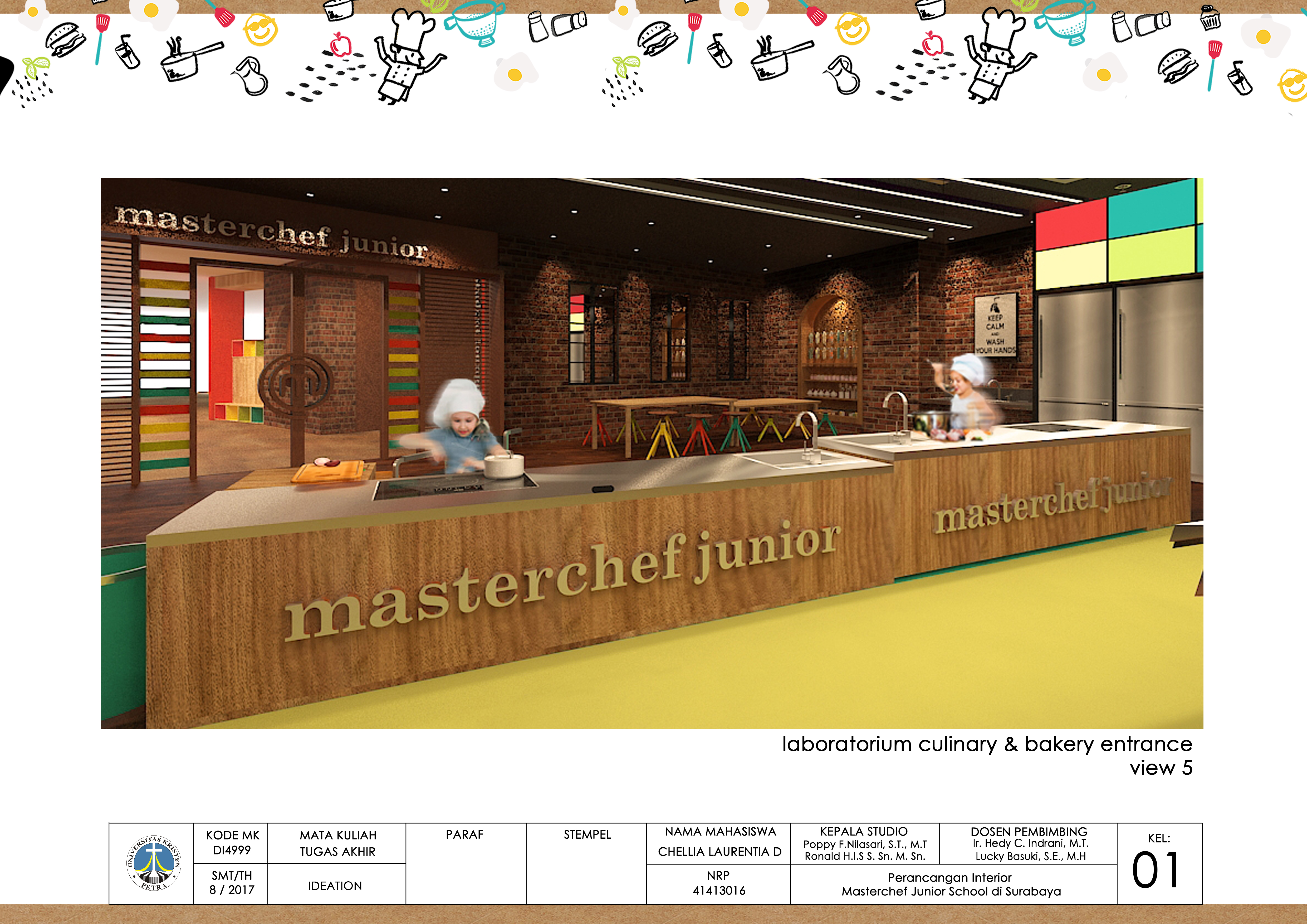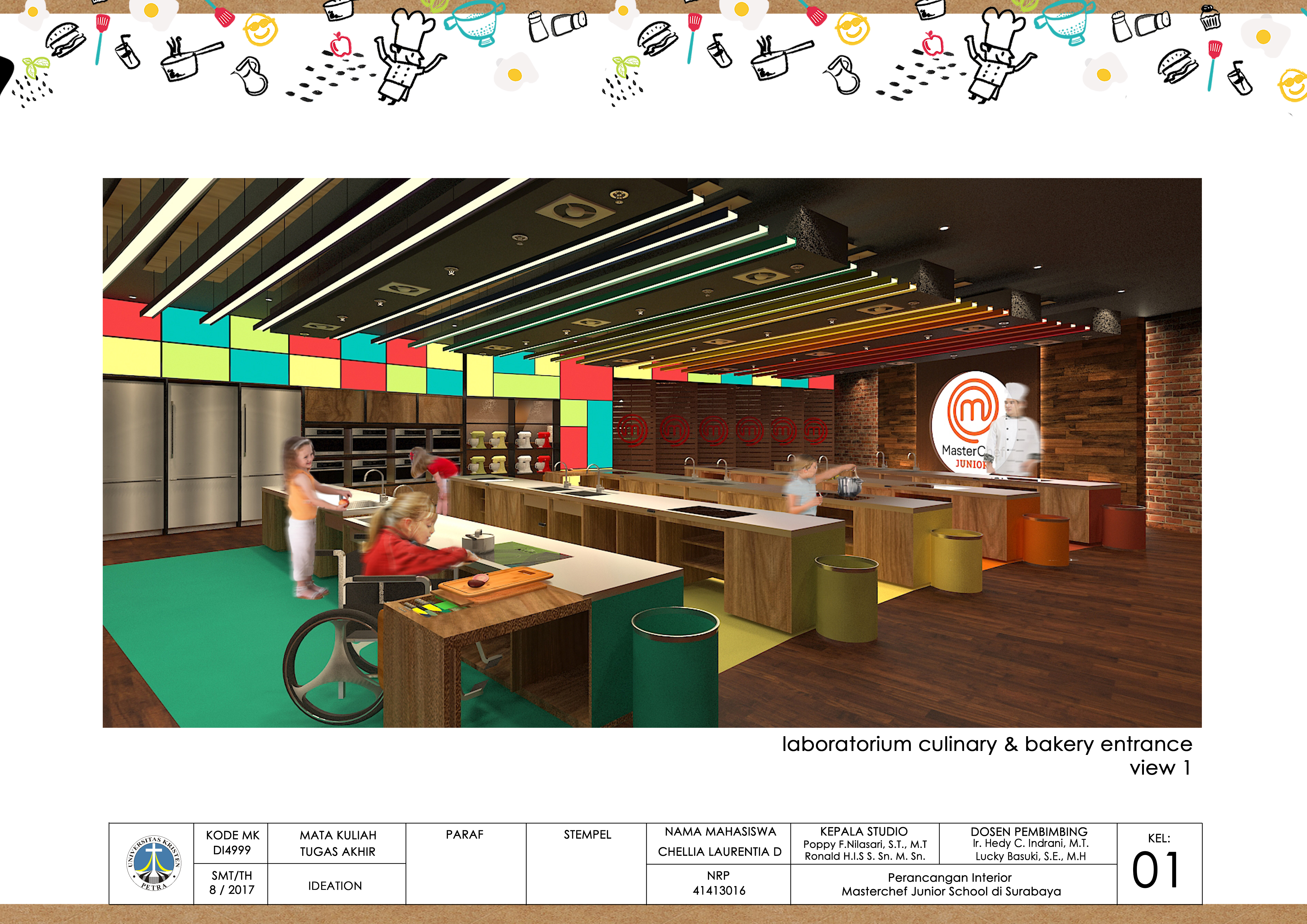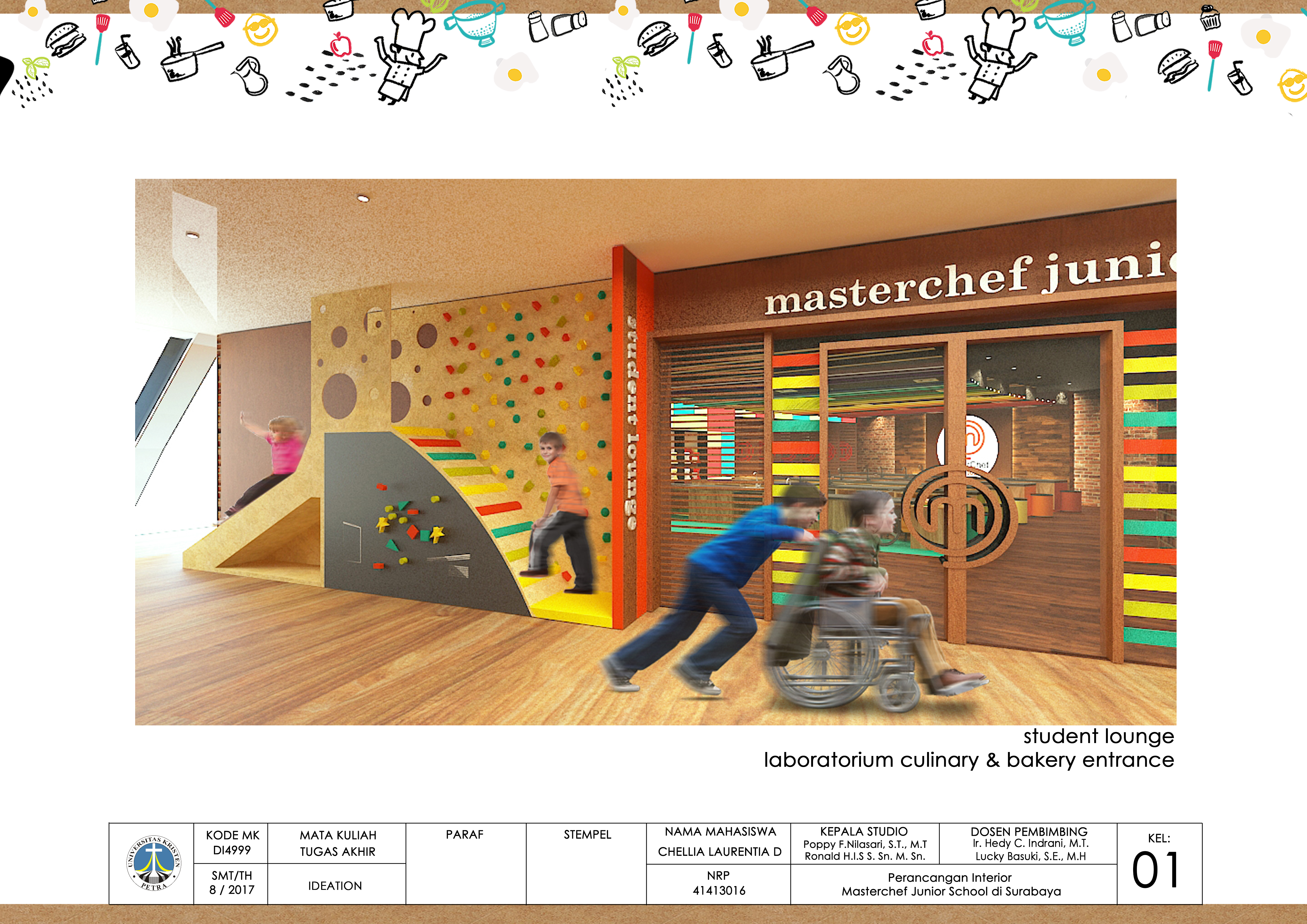Brand dari Masterchef Junior sendiri yang sudah dikenal banyak orang, sangat disayangkan jika hanya menyediakan fasilitas kompetisi saja, untuk itu perancangan kali ini merupakan sebuah usulan baru bagi pihak Masterchef Junior untuk menyediakan fasilitas edukasi memasak bagi anak-anak (normal dan difabel) yang memiliki fasilitas lengkap baik dari ruang teori, ruang demo, laboratorium culinary dan bakery, dan fasilitas-fasilitas pendukung lain seperti mini library, restaurant, urban gardening, mini market bagi publik agar masyarakat pun tertarik untuk masuk ke dalamnya dan dengan konsep Livable in Diversity yang menciptakan fasilitas sekolah memasak yang nyaman didiami walaupun ada perbedaan pengguna (normal dan difabel) dalam 3 aspek yaitu ergonomi, sustainable, dan safety.