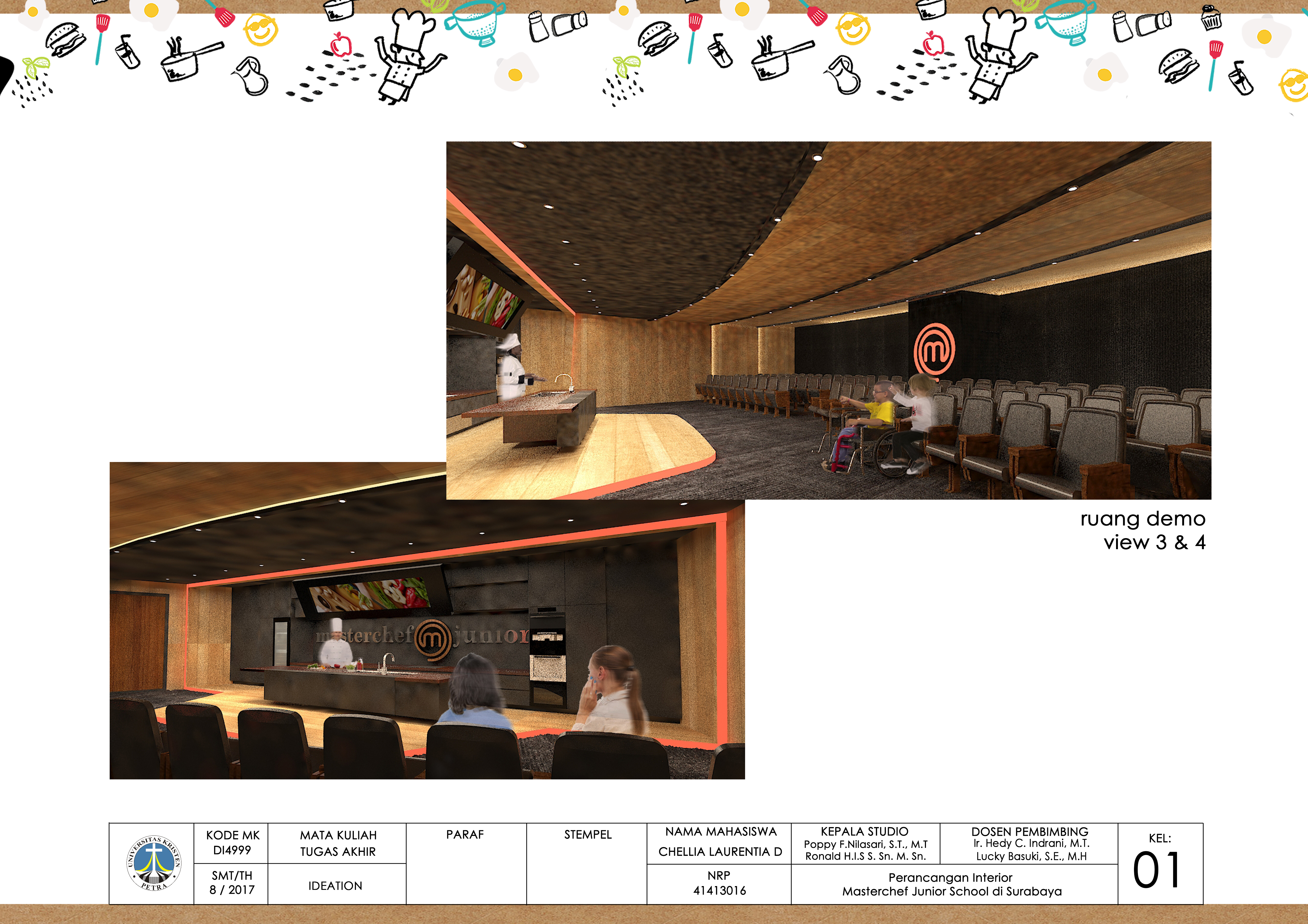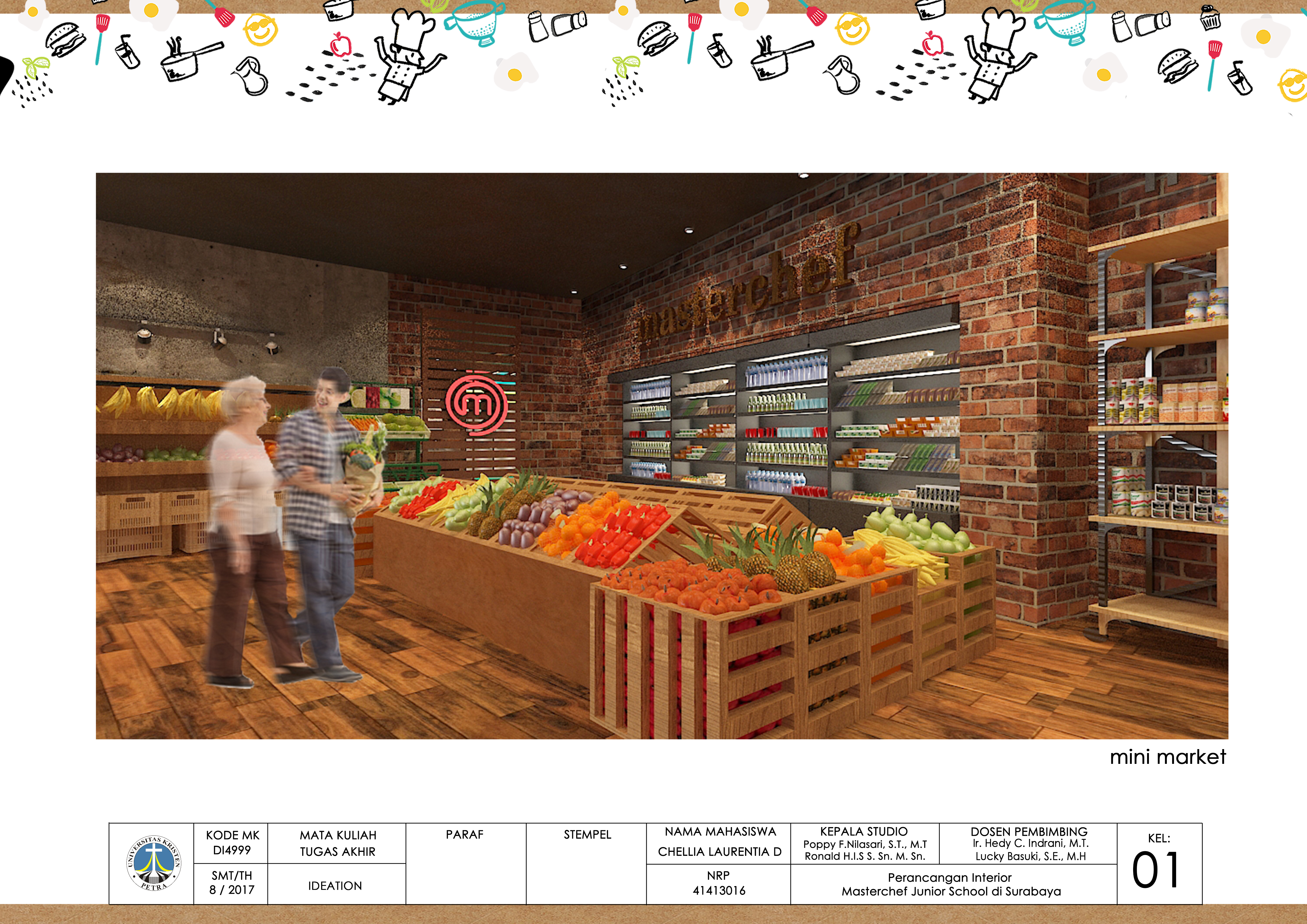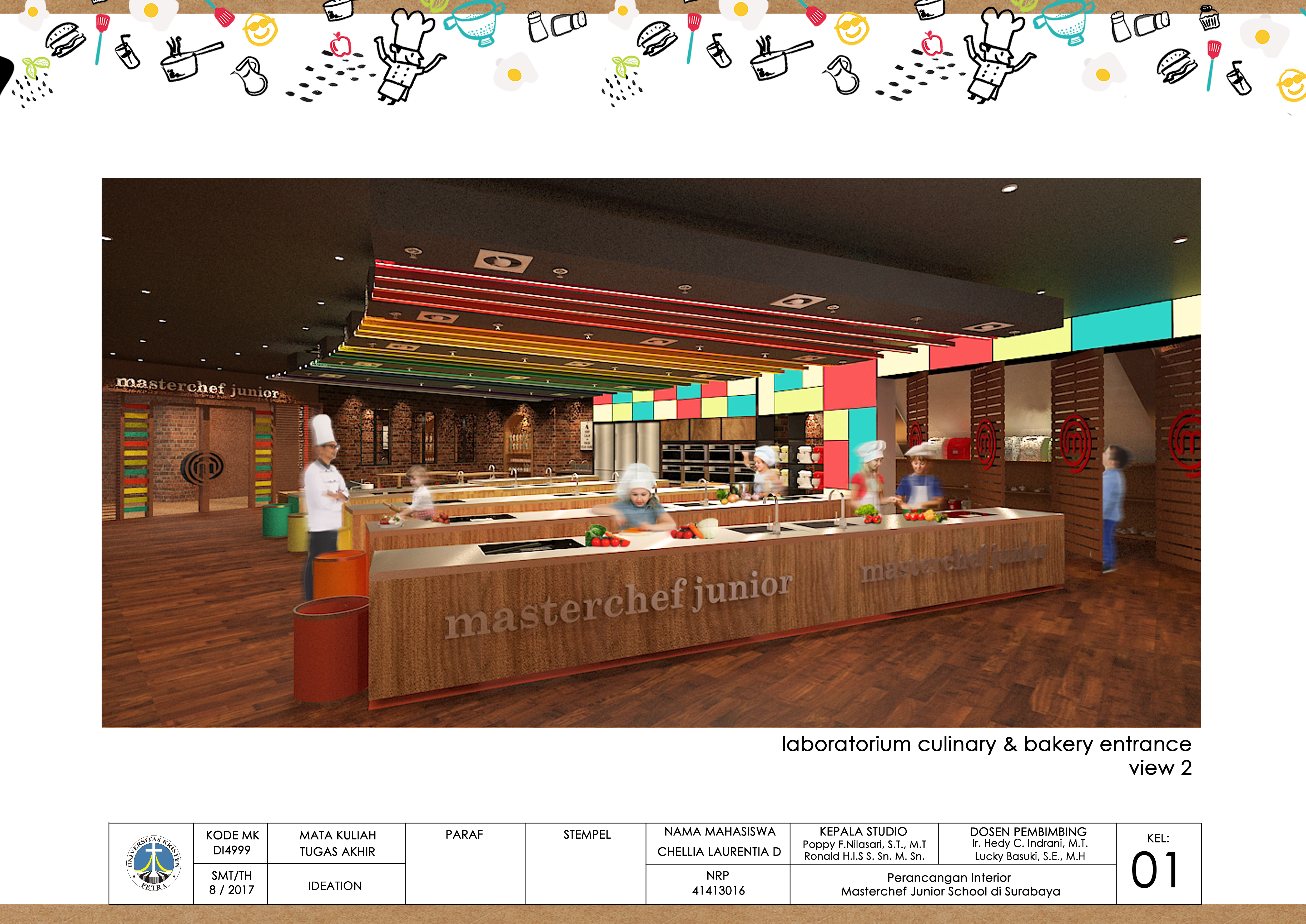 Brand dari Masterchef Junior sendiri yang sudah dikenal banyak orang, sangat disayangkan jika hanya menyediakan fasilitas kompetisi saja, untuk itu perancangan kali ini merupakan sebuah usulan baru bagi pihak Masterchef Junior untuk menyediakan fasilitas edukasi memasak bagi anak-anak (normal dan difabel) yang memiliki fasilitas lengkap baik dari ruang teori, ruang demo, laboratorium culinary dan bakery, dan fasilitas-fasilitas pendukung lain seperti mini library, restaurant, urban gardening, mini market bagi publik agar masyarakat pun tertarik untuk masuk ke dalamnya dan dengan konsep Livable in Diversity yang menciptakan fasilitas sekolah memasak yang nyaman didiami walaupun ada perbedaan pengguna (normal dan difabel) dalam 3 aspek yaitu ergonomi, sustainable, dan safety.