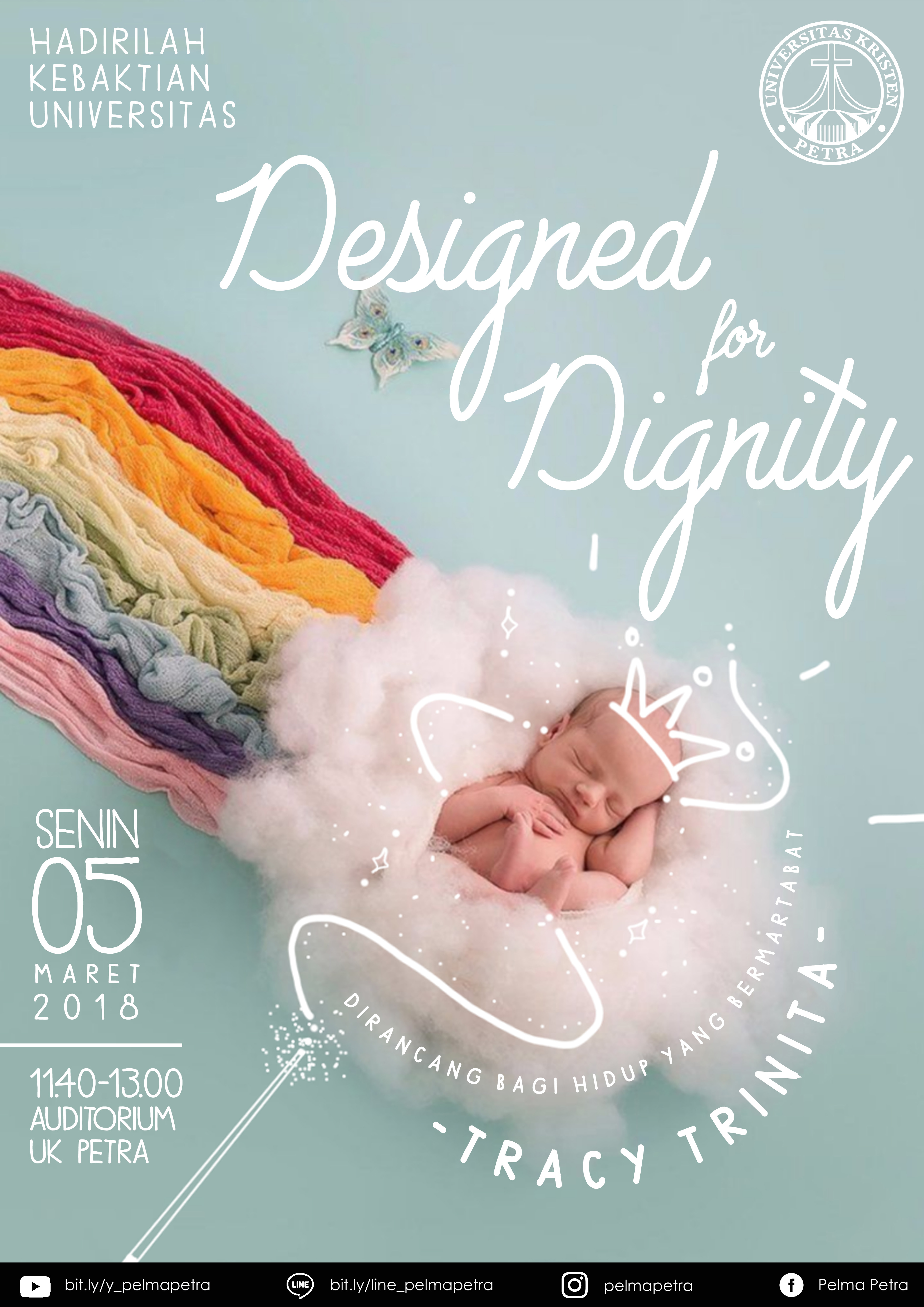 Universitas Kristen Petra melalui Pusat Kerohanian mengundang seluruh civitas akademika, untuk hadir dalam kebaktian universitas yang dilaksanakan pada 05 Maret 2018, di Auditorium UK Petra. Dengan mendatangkan pengkhotbah Tracy Trinita dengan tema Designed for dignity (Dirancang bagi hidup yang bermartabaat).