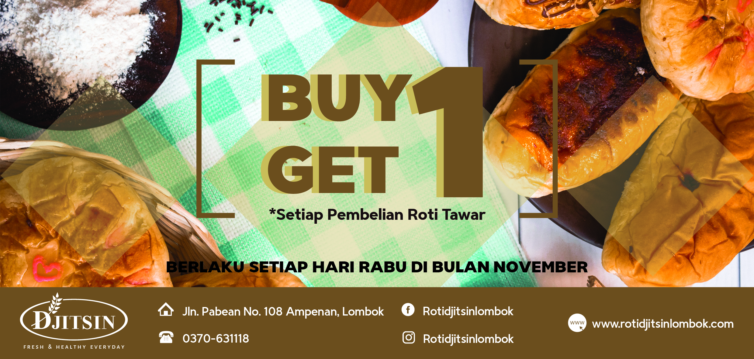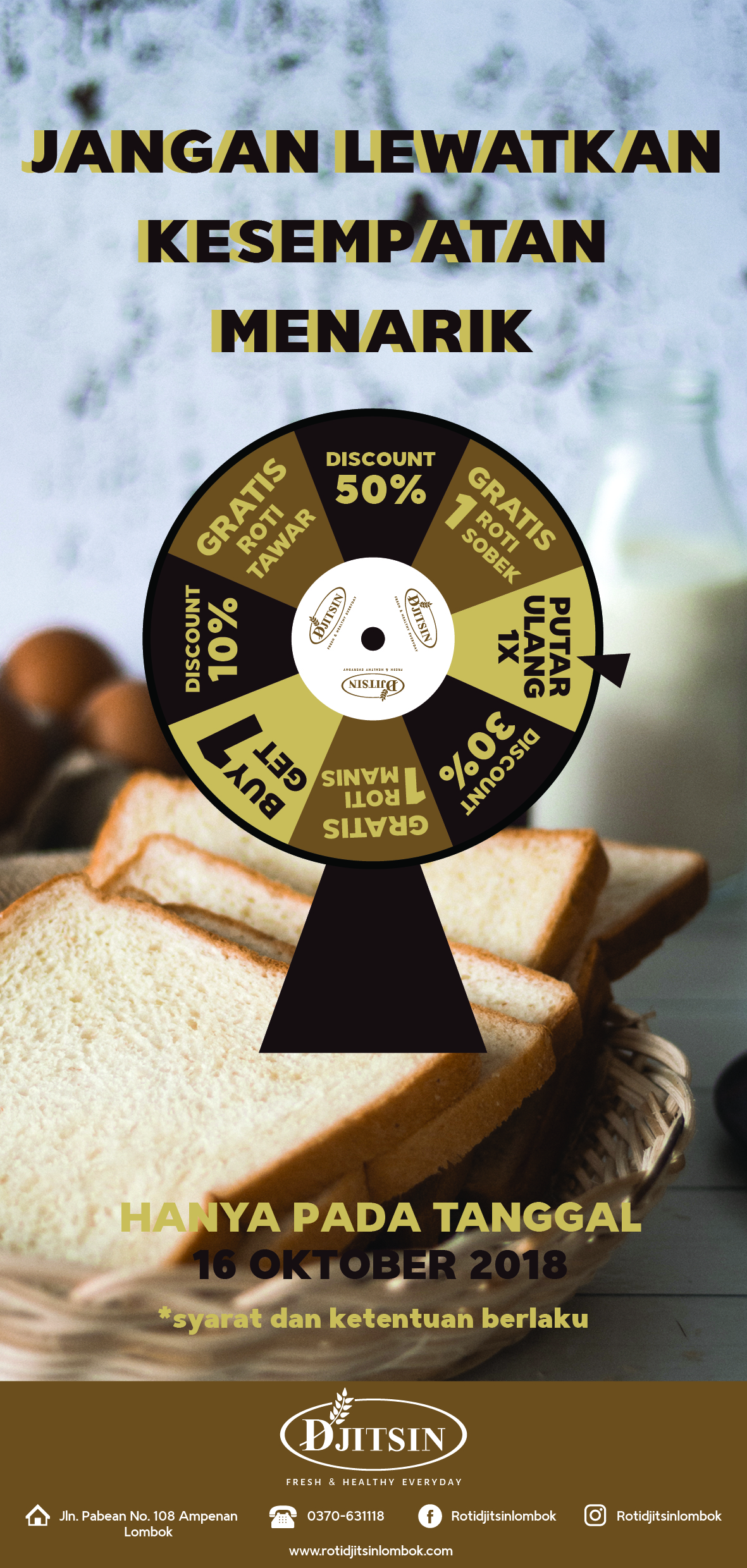 Toko Roti Djitsin Lombok merupakan toko roti kuno yang sudah ada sejak zaman Belanda di Pulau Lombok. Produk yang ditawarkan sebagian besar merupakan olahan roti yang dibuat baru setiap harinya dengan mempertahankan resep kuno yang diwariskan secara turun temurun dan juga tanpa bahan pengawet. Namun, seiring dengan berjalannya waktu, ketenaran toko roti ini terus menurun. Toko Roti Djitsin ini tidak pernah melakukan promosi apapun oleh karena itu toko roti ini sekarang sudah kurang dikenal oleh masyarakat di Pulau Lombok. Untuk memperkenalkan produk Roti Djitsin ini ke konsumen agar lebih dikenal lagi maka diperlukan sebuah perancangan promosi yang efektif dan komunikatif kepada sasaran konsumen. Dengan adanya perancangan promosi ini diharapkan Toko Roti Djitsin dapat kembali dikenal oleh masyarakat Pulau Lombok di tengah persaingan bisnis roti sekarang ini.