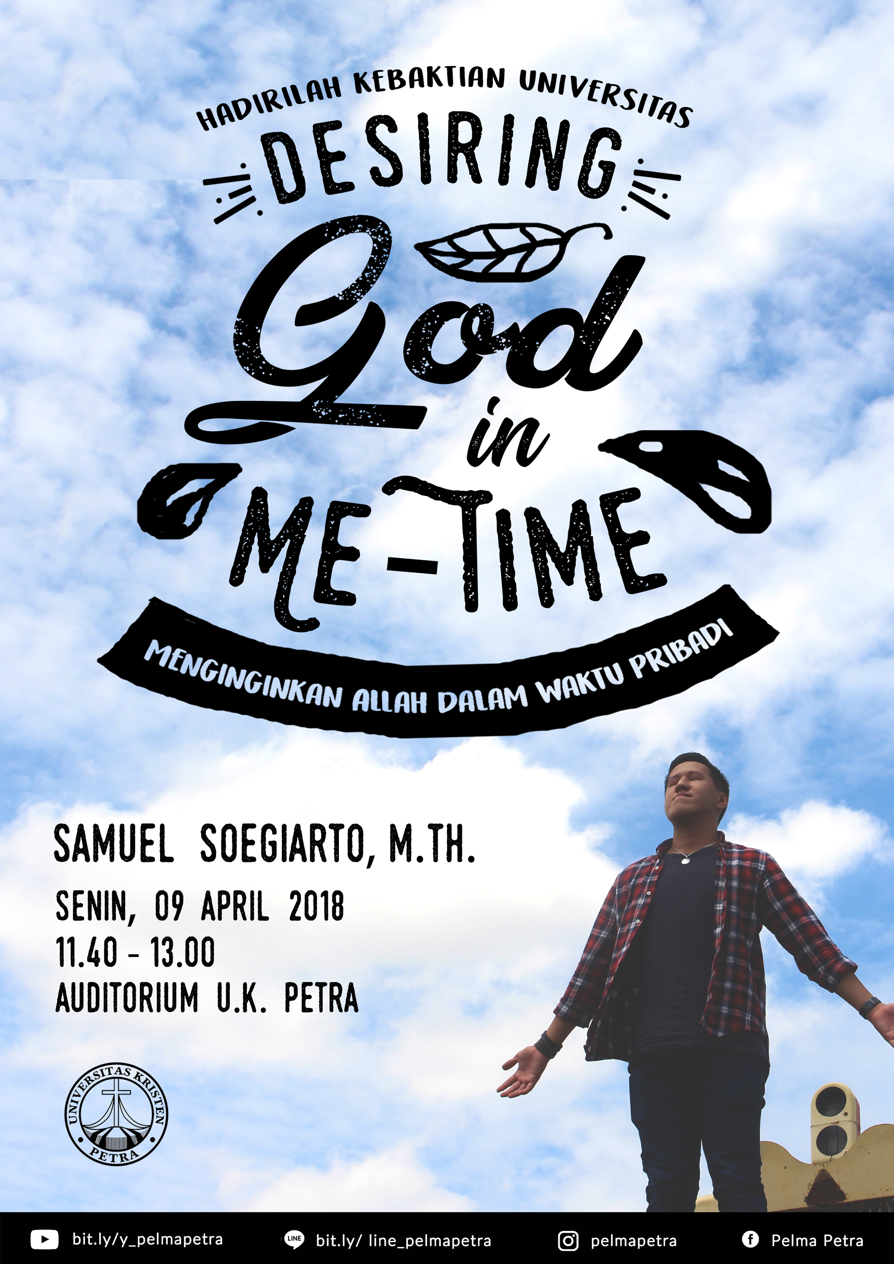 Universitas Kristen Petra mengundang seluruh civitas untuk hadir dalam kebaktian universitas yang diadakan pada tanggal 9 April 2018. Bertempat di Auditorium UK Petra kebaktian ini mengangkat tema "Desiring God in me-time (menginginkan Allah dalam waktu pribadi)". Dengan menghadirkan Samuel Soegiarto, M.Th. sebagai pengkhotbah.