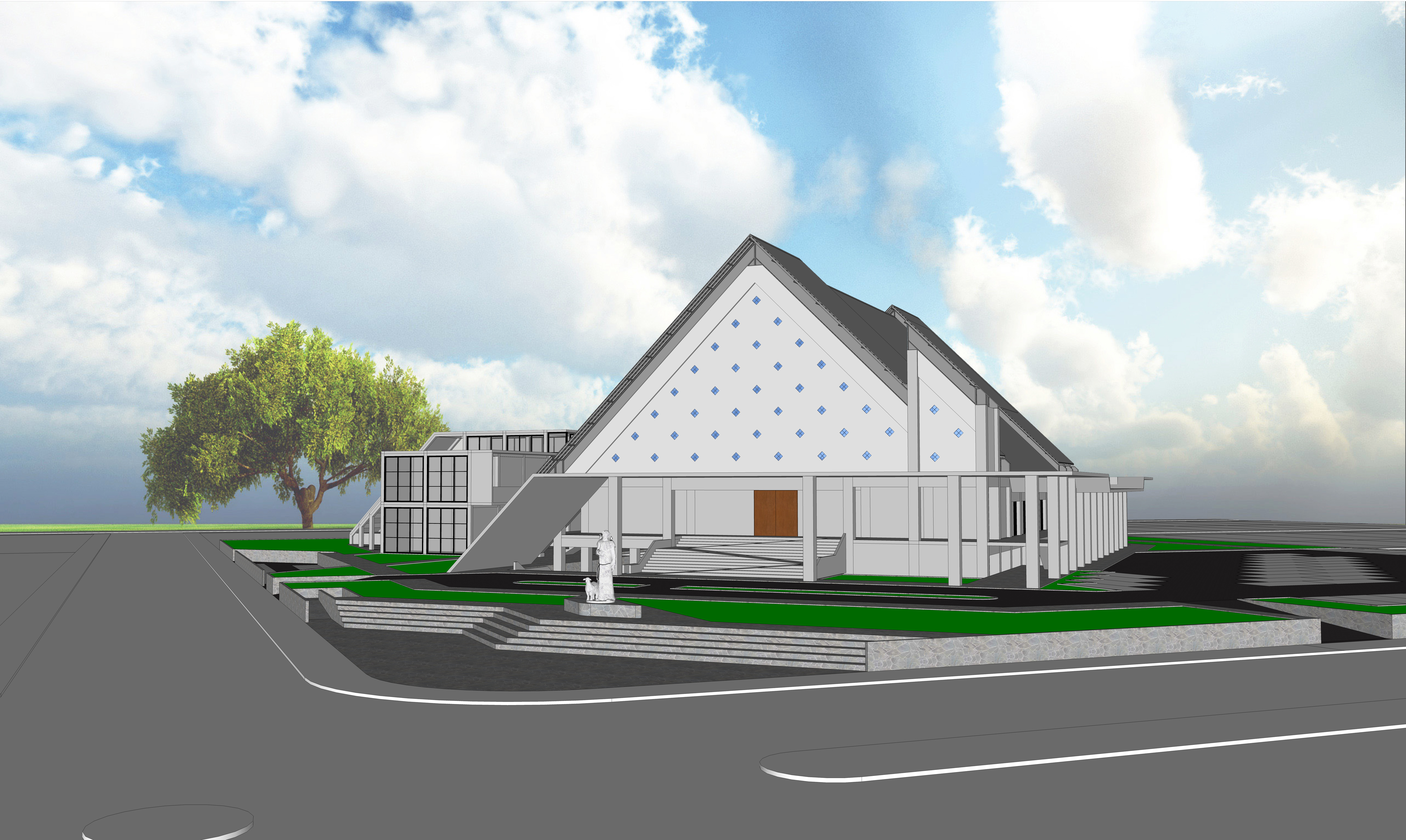Lokasi tapak berada di persimpangan Jalan Araya Boulevard yang memiliki kelebihan sebagai point of interest di dalam perumahan The Araya Malang. Untuk menjadi point of interest, maka Gereja ini menggunakan pendekatan simbolik melalui konsep yang diambil dari Santo Fransiskus dari Asisi. Konsep terbuka pada Gereja yang memanfaatkan alam sekitar menjadi tantangan pada sistem akustik dalam gereja. Tantangan tersebut akan ditangani dengan pendalaman akustik, yaitu insulasi suara pada Gereja.